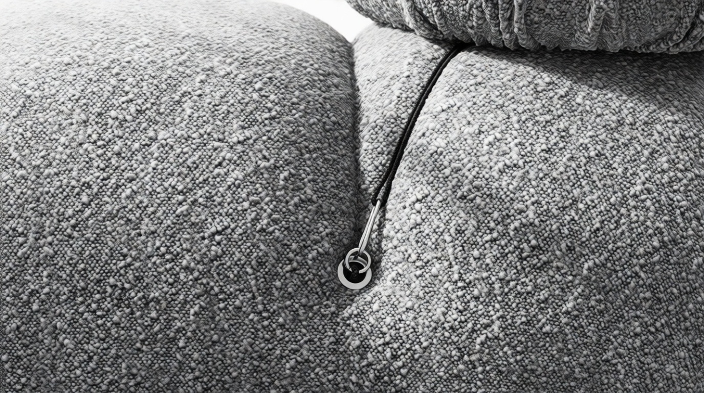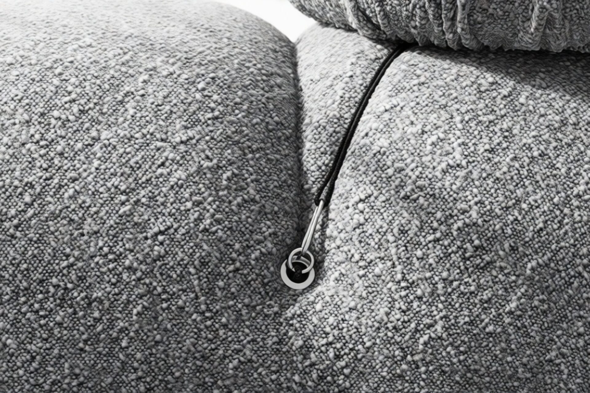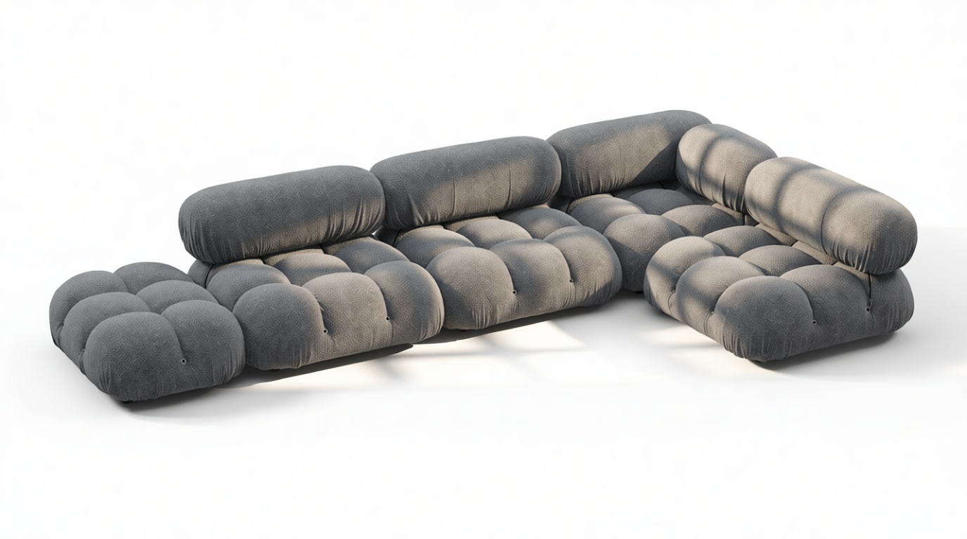 - Modular Instructions: Each section of the Mario Bellini Sofa is modular and is attached with string ties and carabiners. To assemble or rearrange your sofa, simply unclip the carabiners from one ring and attach to a corresponding ring on the module you wish to connect to.