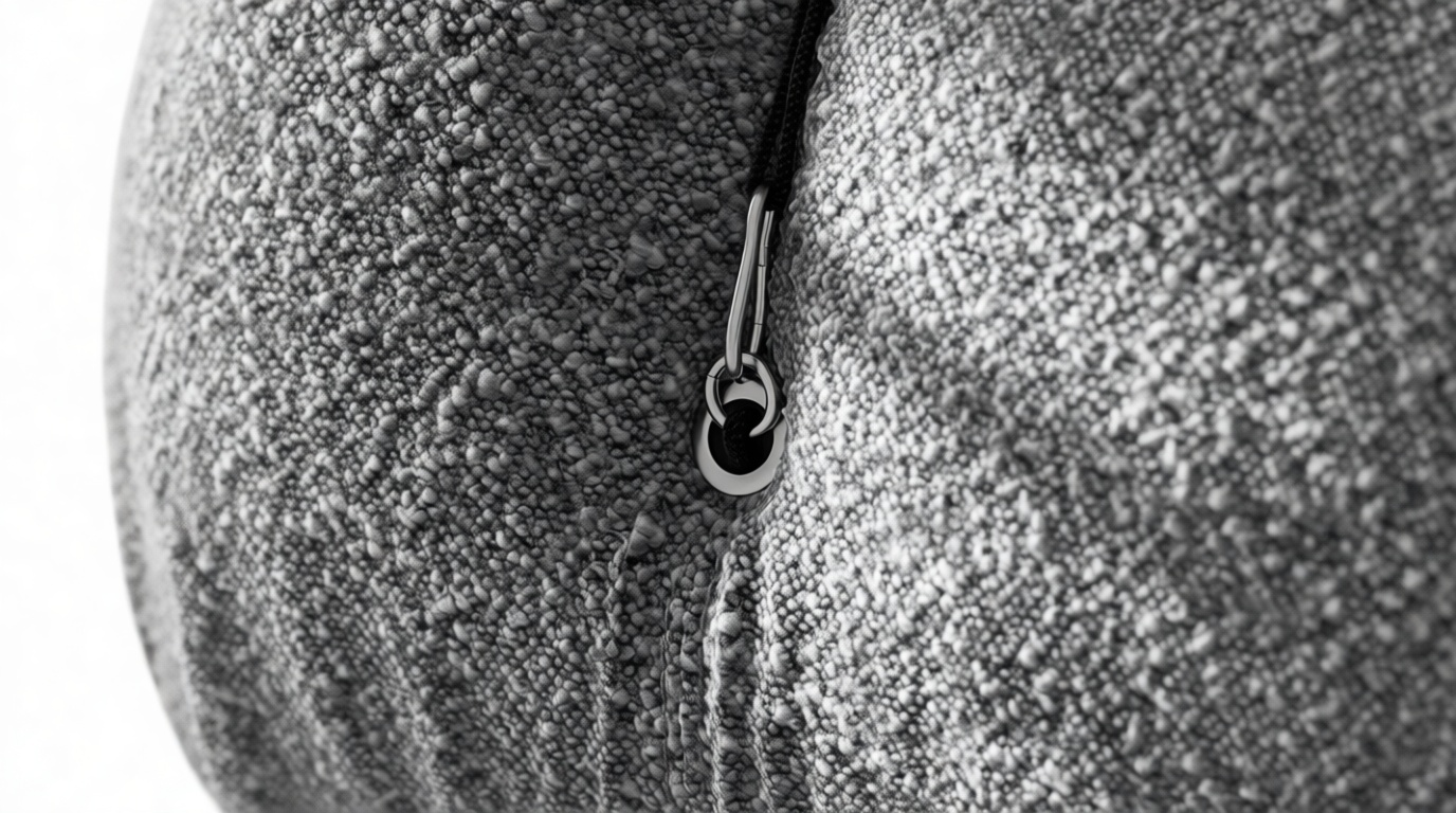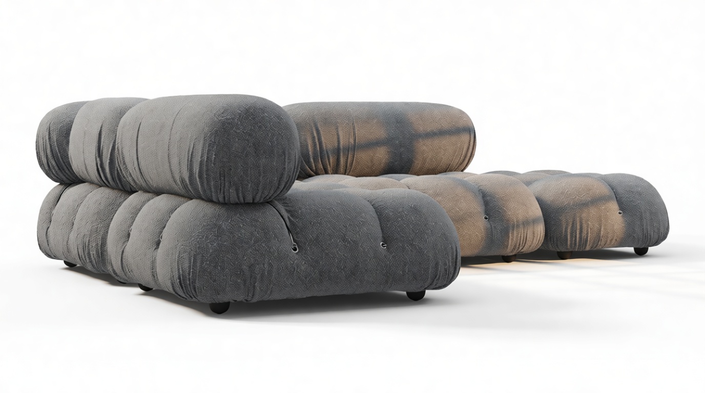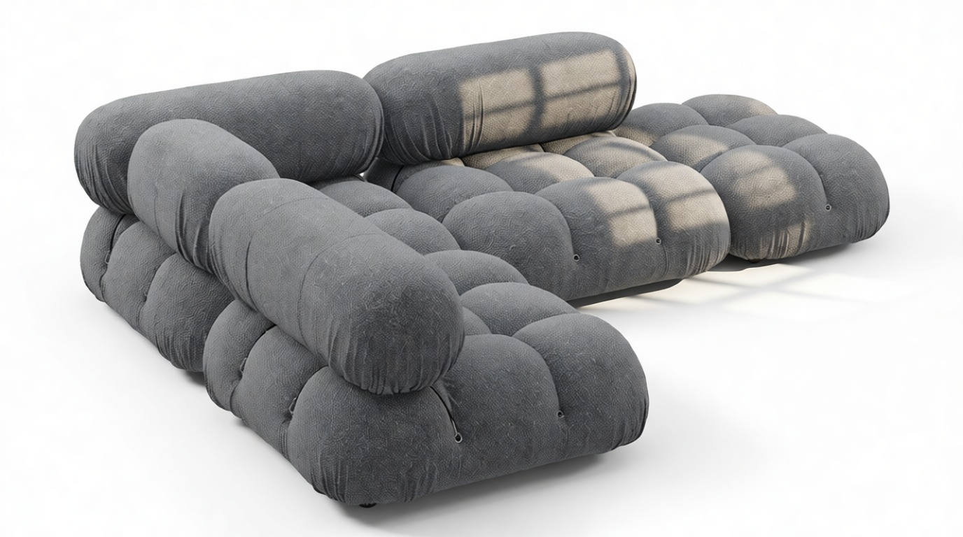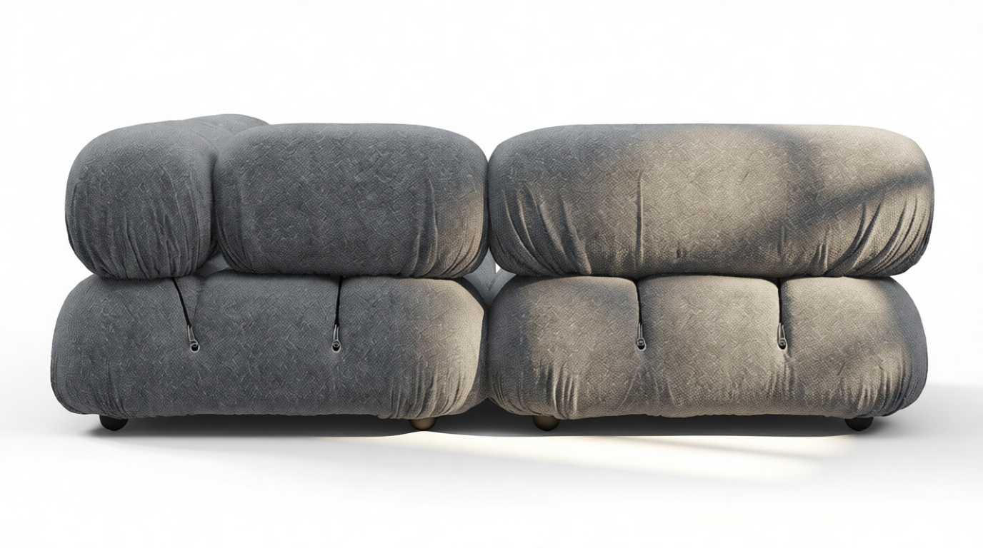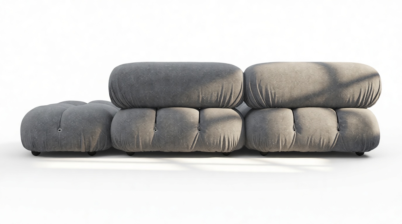 - Modular Instructions: Each section of the Mario Bellini Sofa is modular and is attached with string ties and carabiners. To assemble or rearrange your sofa, simply unclip the carabiners from one ring and attach to a corresponding ring on the module you wish to connect to.