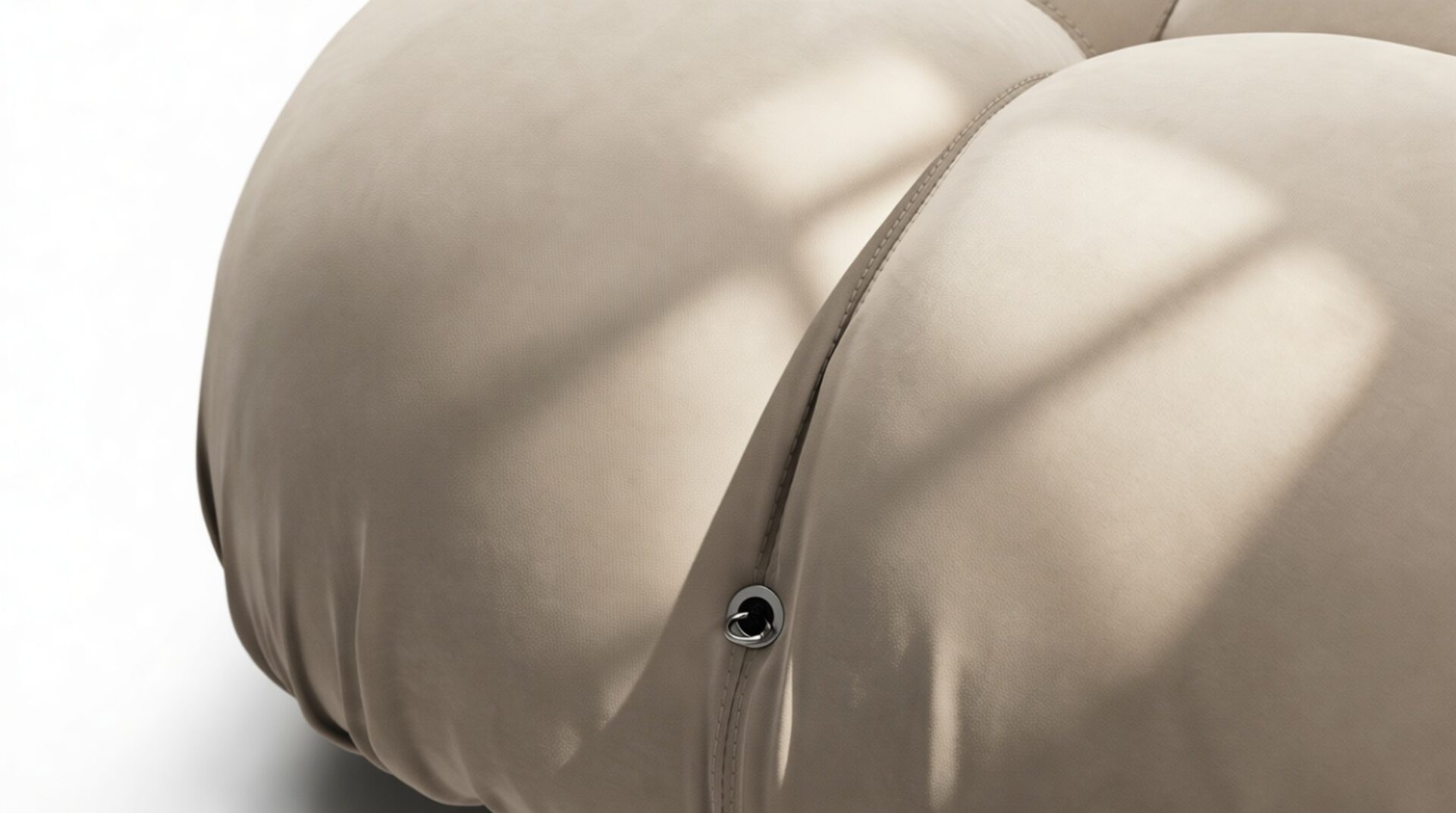 - Modular Instructions: Each section of the Mario Bellini Sofa is modular and is attached with string ties and carabiners. To assemble or rearrange your sofa, simply unclip the carabiners from one ring and attach to a corresponding ring on the module you wish to connect to.