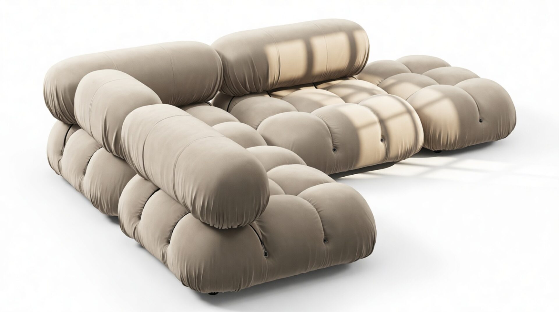 Step back into the iconic style of the 1970s with the Bellini sectional sofa, exuding groovy vibes and carefree living. Its modular design allows for easy customization without a complete overhaul. Crafted with a sturdy wooden frame and plush cold-pressed foam, the Bellini in Greige Velvet offers a luxurious, relaxed feel with endless layout possibilities.