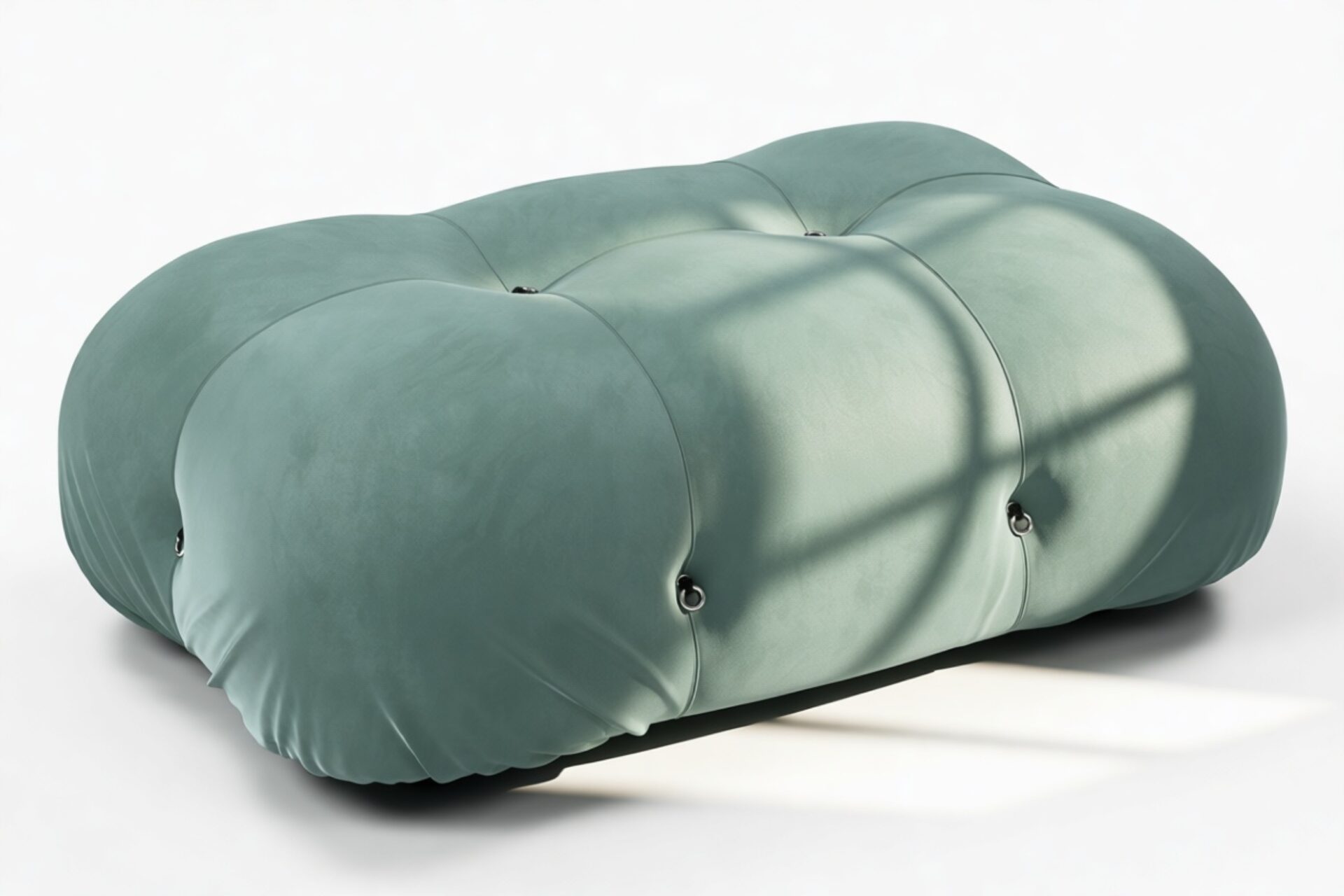 - Modular Instructions: Each section of the Mario Bellini Sofa is modular and is attached with string ties and carabiners. To assemble or rearrange your sofa, simply unclip the carabiners from one ring and attach to a corresponding ring on the module you wish to connect to.