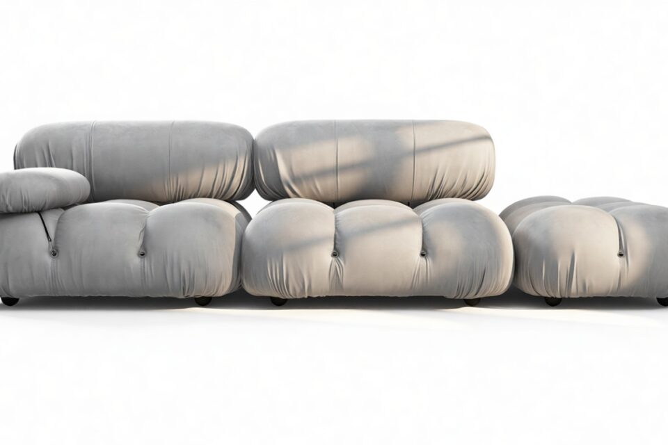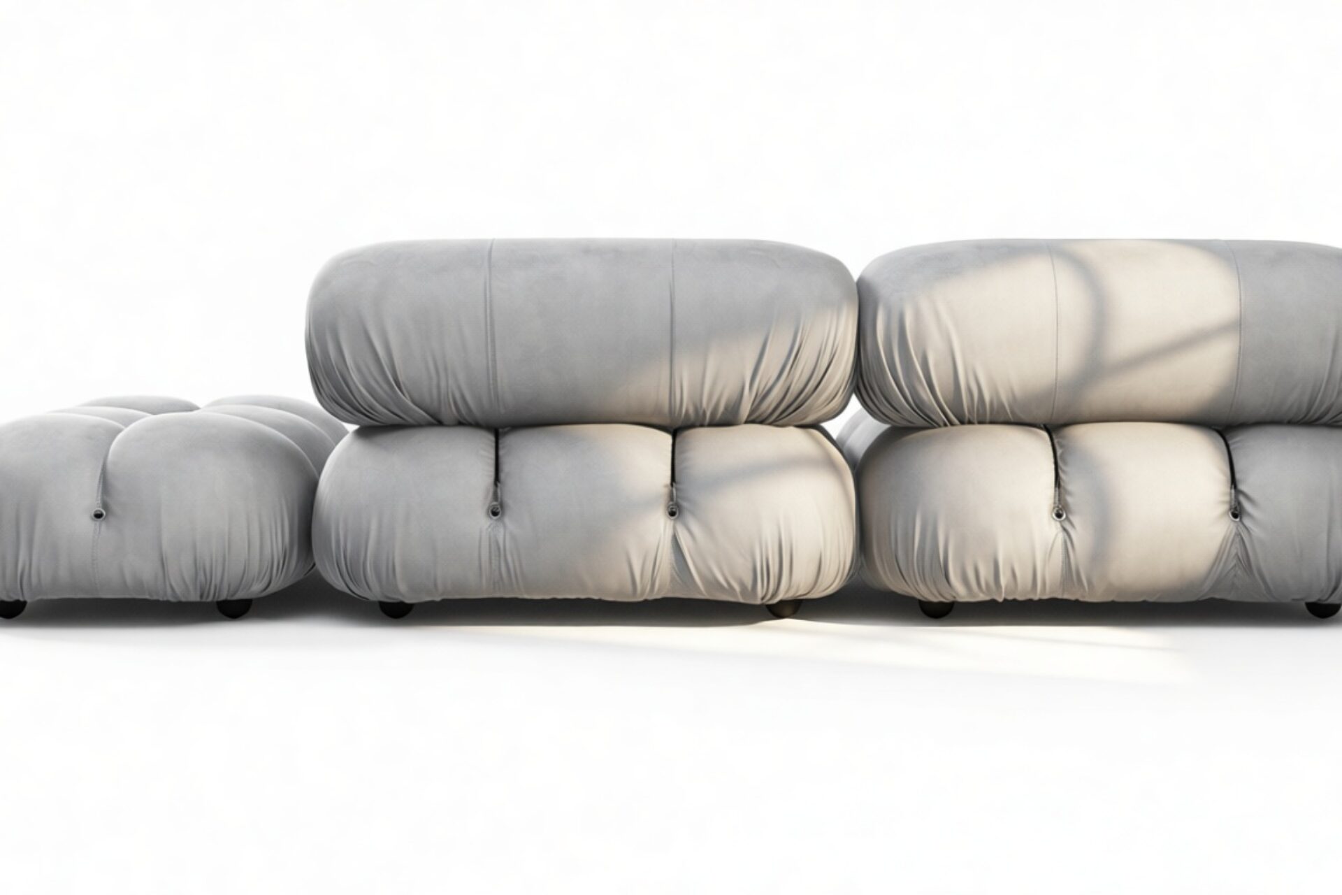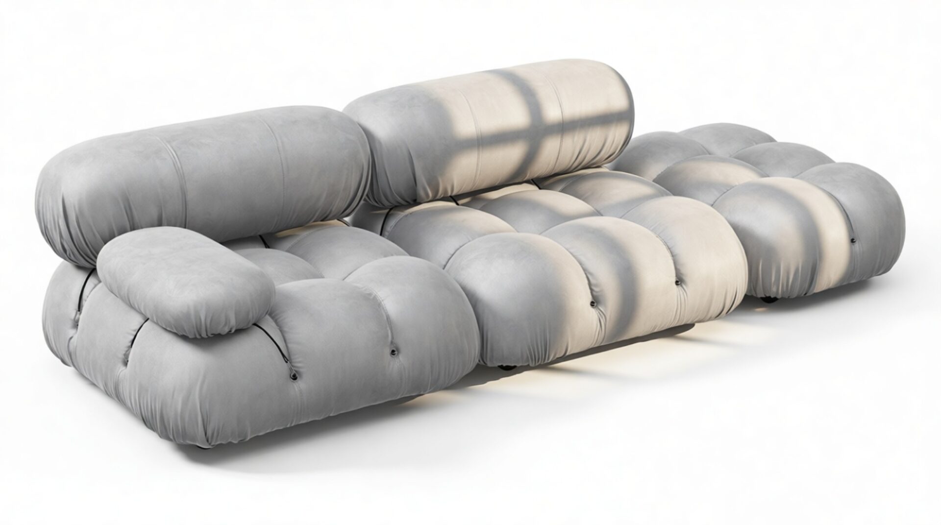 Step back into the 1970s with the Bellini sectional sofa, a tribute to groovy vibes and carefree living. Defying convention, this modular design allows easy customization in light gray velvet to suit your layout and mood. Crafted with a sturdy frame and plush foam, its low-profile silhouette exudes relaxed luxury. Unwind in style with the inviting cushions, embracing comfort and style effortlessly. Elevate your space with the versatile Bellini, creating a personalized sofa that perfectly fits your area. The meticulously made cushions provide lavish and cozy seating, delivering unparalleled style and comfort. Experience the generous proportions and inviting curves of the Bellini, encouraging relaxation. Its limitless configurations cater to different setups, blending relaxation and social interaction seamlessly. Known for its versatility, the iconic Bellini effortlessly adapts to any room or decor, offering liberation in a light gray velvet material for a cozy, intimate feel.