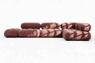 Step back into the funky 70s with the Bellini sectional sofa, exuding retro vibes and free-spirited living. Its modular design offers customizable layouts without a full makeover. Adored by a new wave of furniture lovers, the Bellini features tie rods and rings for easy reconfiguration. Crafted with a sturdy wooden frame, plush cold-pressed foam, and luxurious maroon velvet, this low-profile stunner invites stylish relaxation.