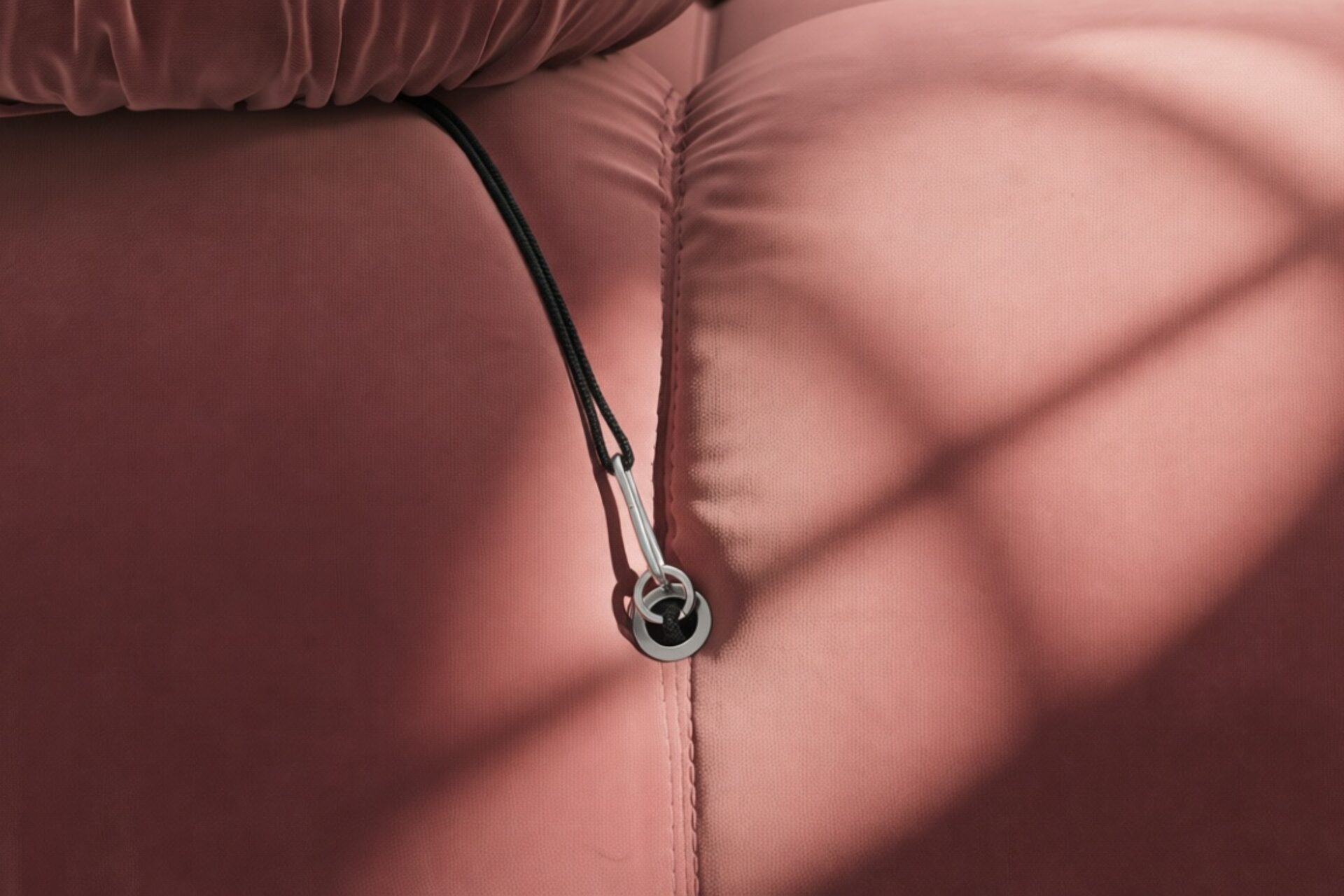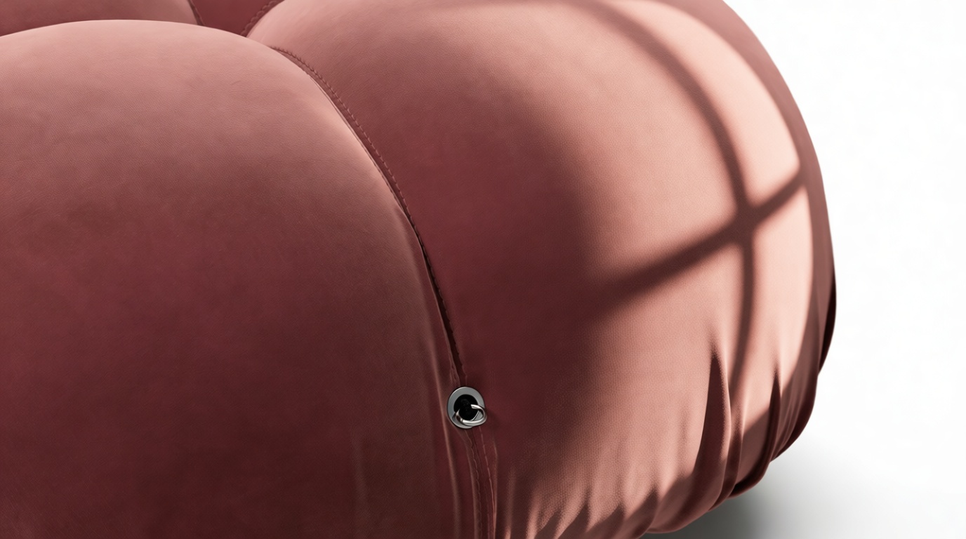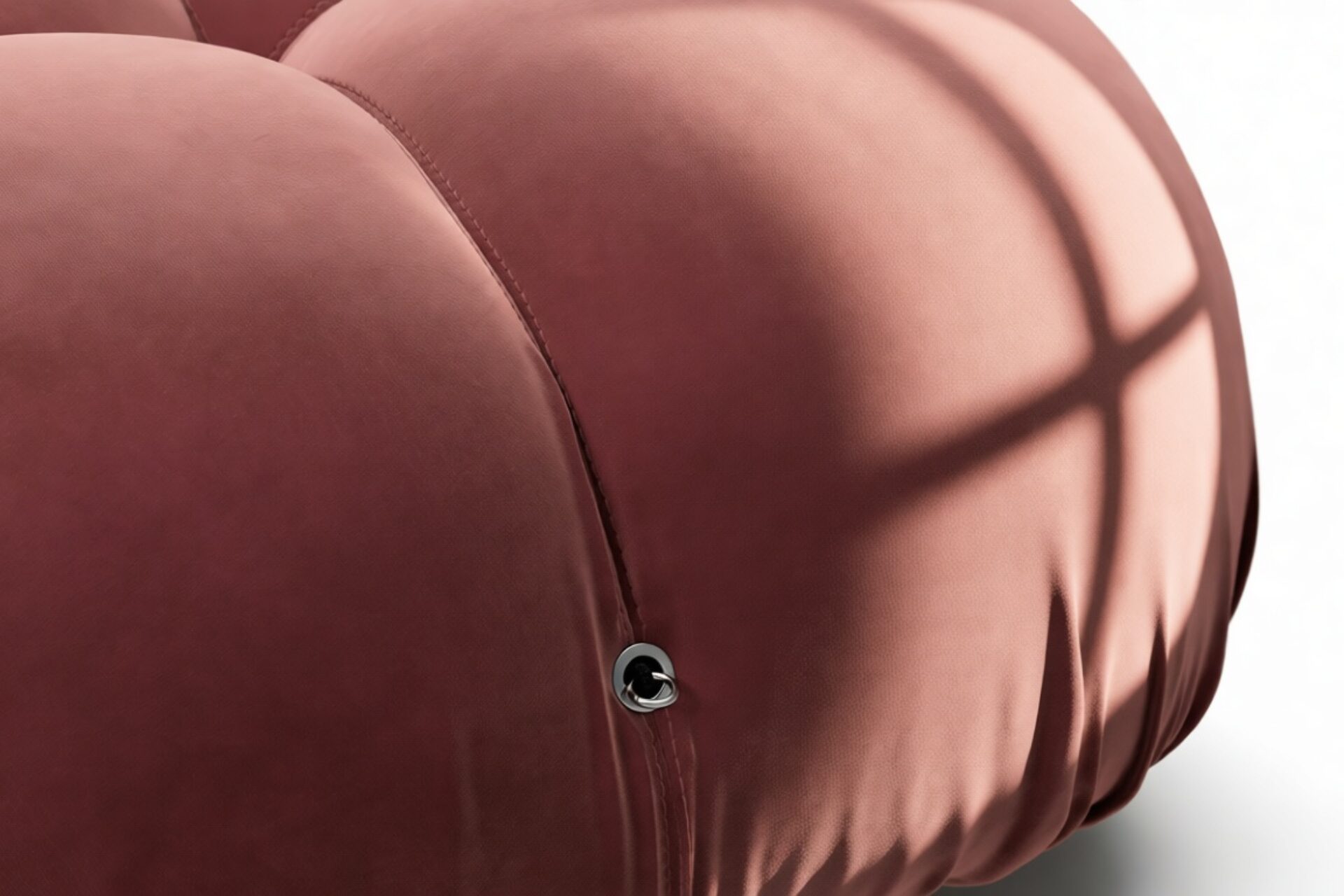 - Modular Instructions: Each section of the Mario Bellini Sofa is modular and is attached with string ties and carabiners. To assemble or rearrange your sofa, simply unclip the carabiners from one ring and attach to a corresponding ring on the module you wish to connect to.