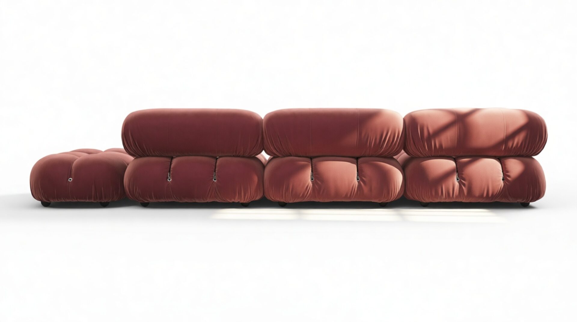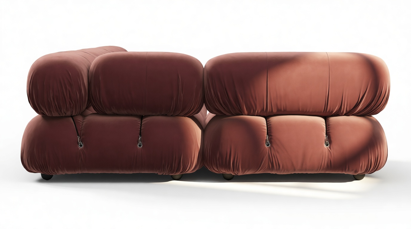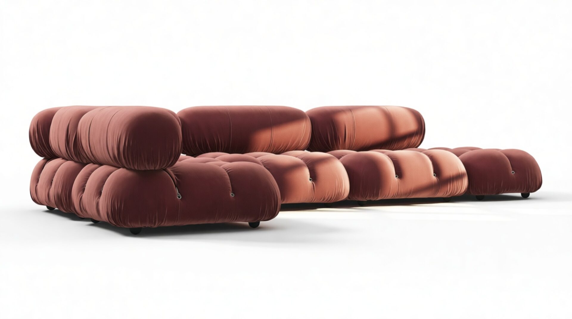 Step back in time to the 1970s with the Bellini sectional sofa, embracing groovy vibes and carefree living. The modular design of the Bellini offers a liberating essence to your space with its versatile arrangement options, ensuring a perfect fit for different room layouts and moods without a full makeover. Crafted with a sturdy wooden frame, plush cold-pressed foam, and enveloped in soft maroon velvet fabric, this low-profile silhouette exudes relaxed luxury. The Bellini's tie rods and rings facilitate effortless separation and rearrangement, allowing you to adapt your sofa to match evolving preferences. Join a new generation of furniture enthusiasts in cherishing the Bellini for its adaptability and inviting design, providing a lavish and cozy seating experience with its meticulously crafted cushions. This timeless favorite seamlessly blends into any setting, offering limitless configurations to cater to diverse requirements and ensuring you relax in unparalleled style and comfort.