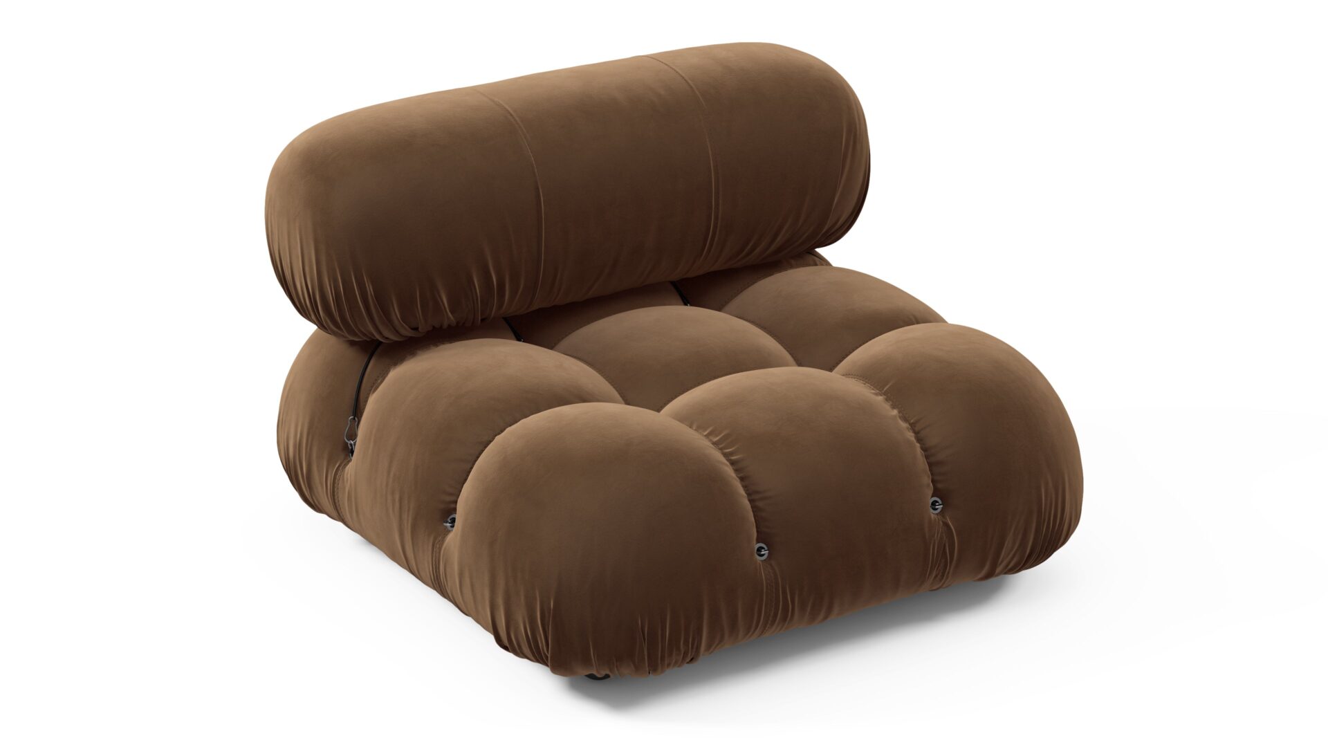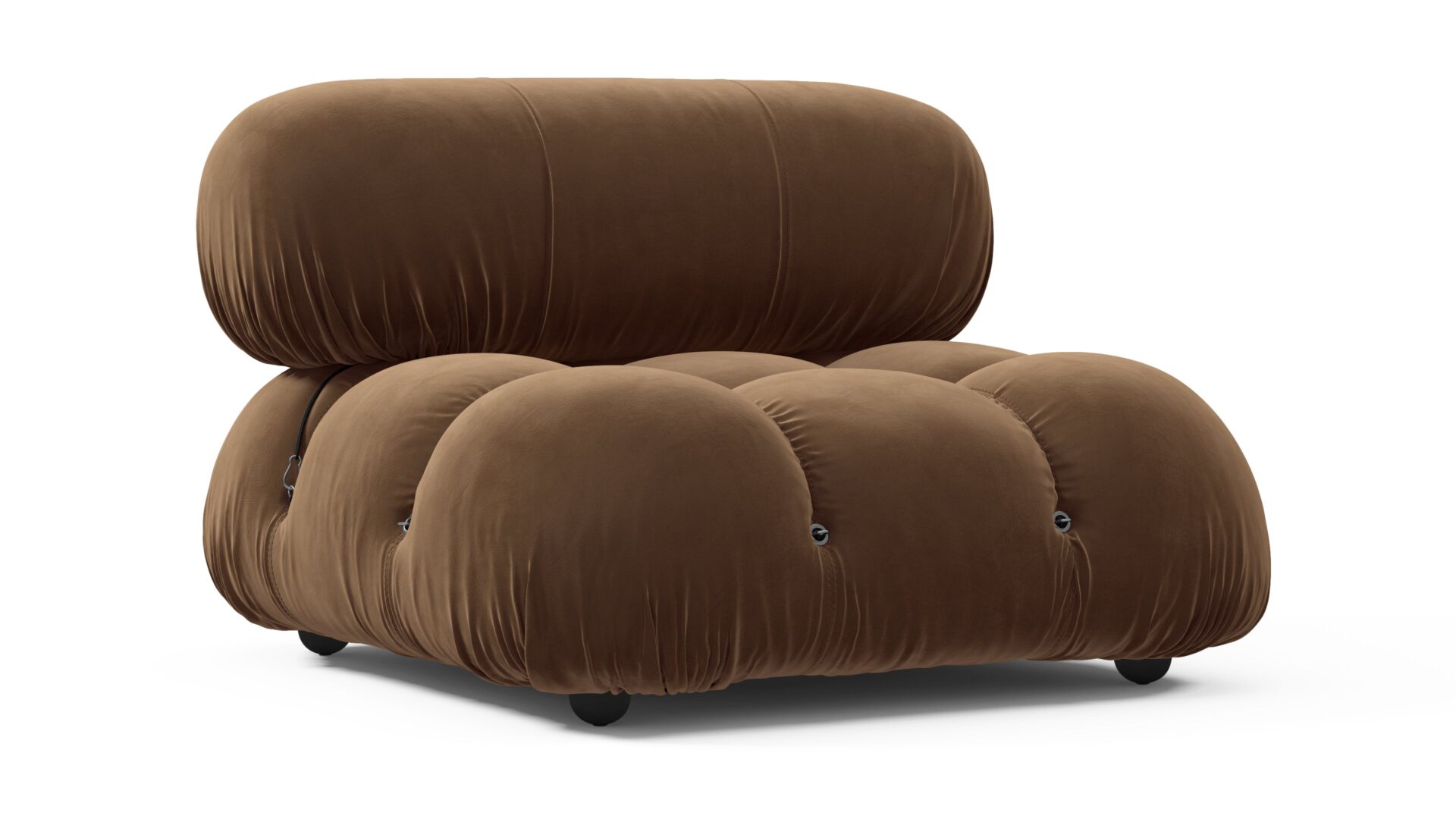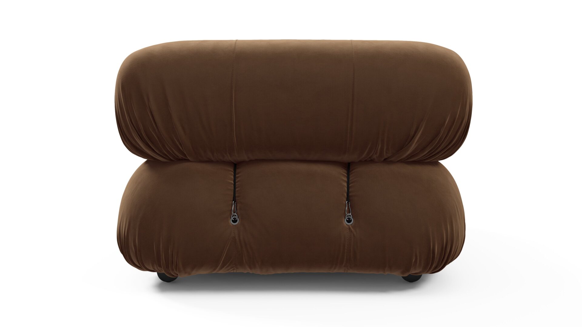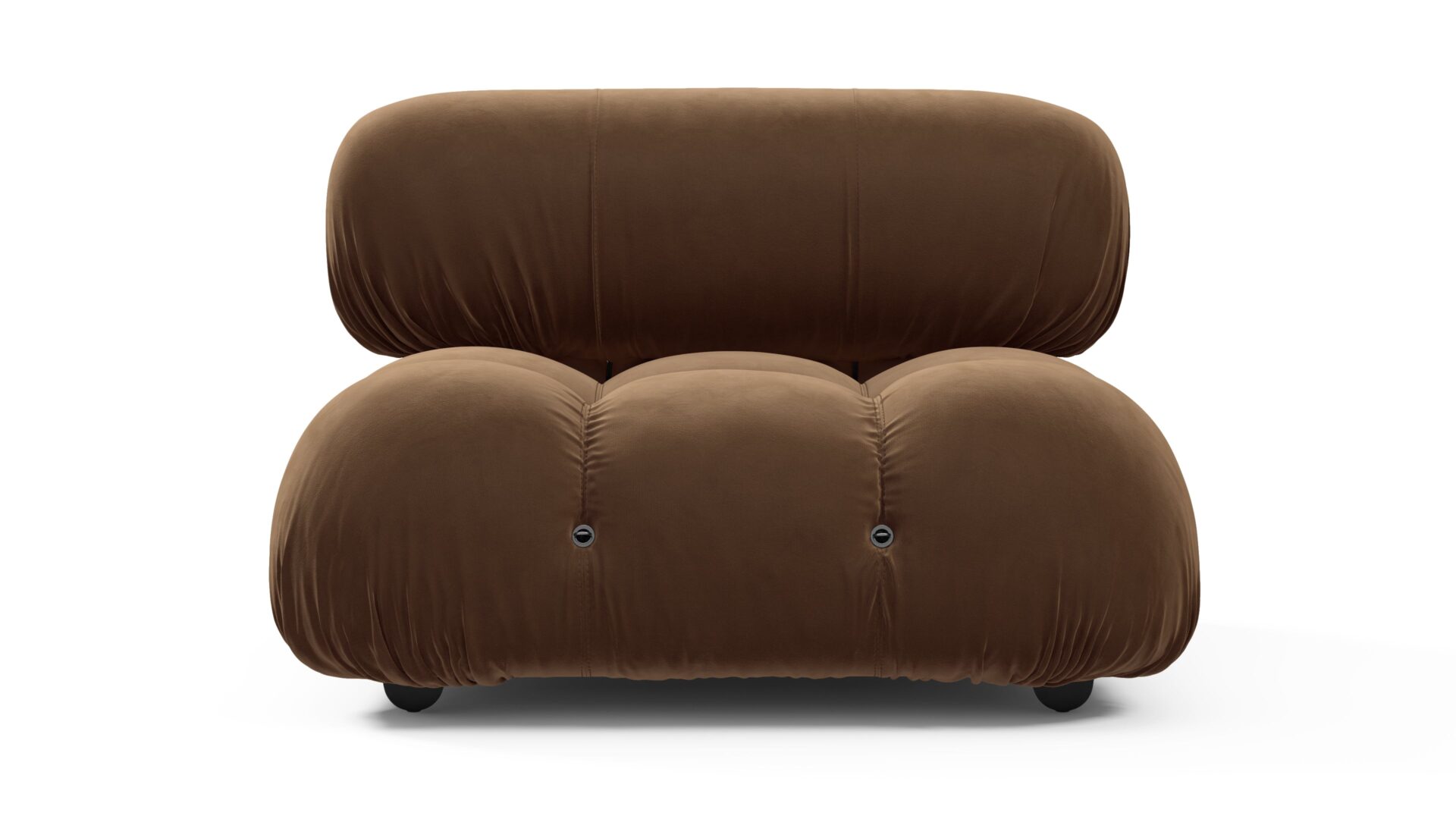 Step into the groovy 1970s vibe with the Bellini sectional sofa, exuding a sense of liberation to your space. Crafted with tie rods and rings, its modular design offers effortless rearrangement. Embraced by a new furniture-loving generation, the Bellini in Mocha Velvet boasts a low-profile luxury silhouette with inviting plush cushions, providing a blend of style and comfort tailored to your evolving preferences.