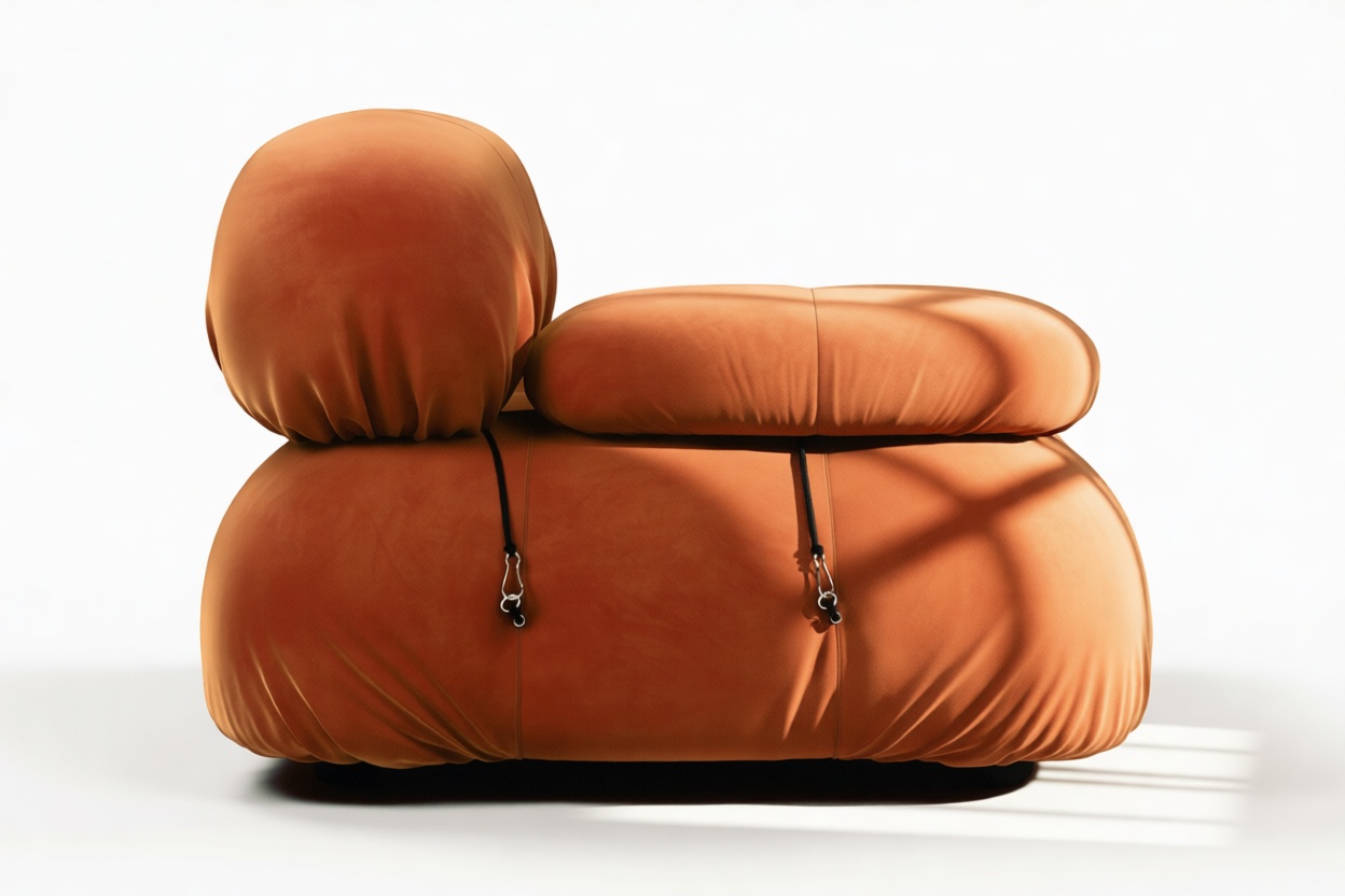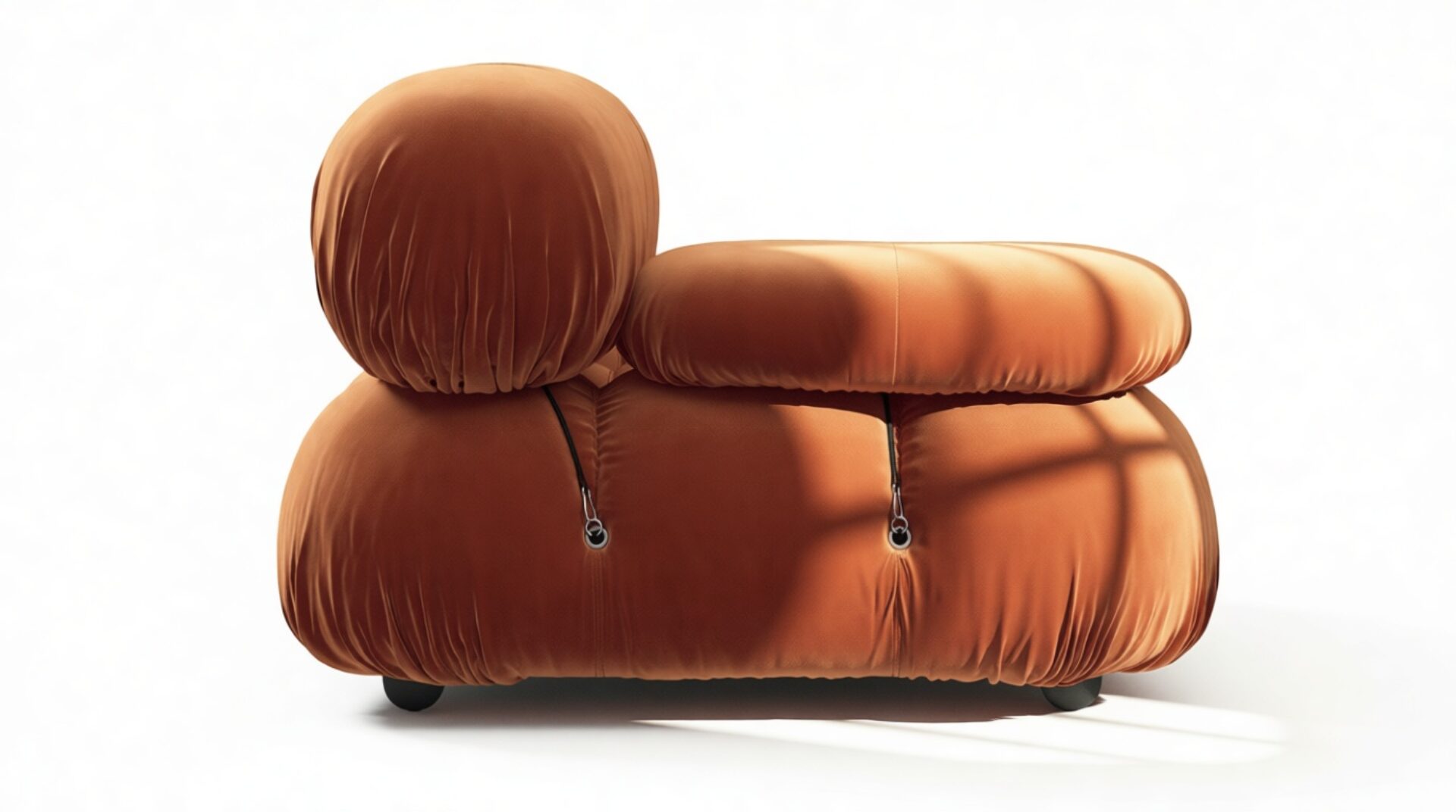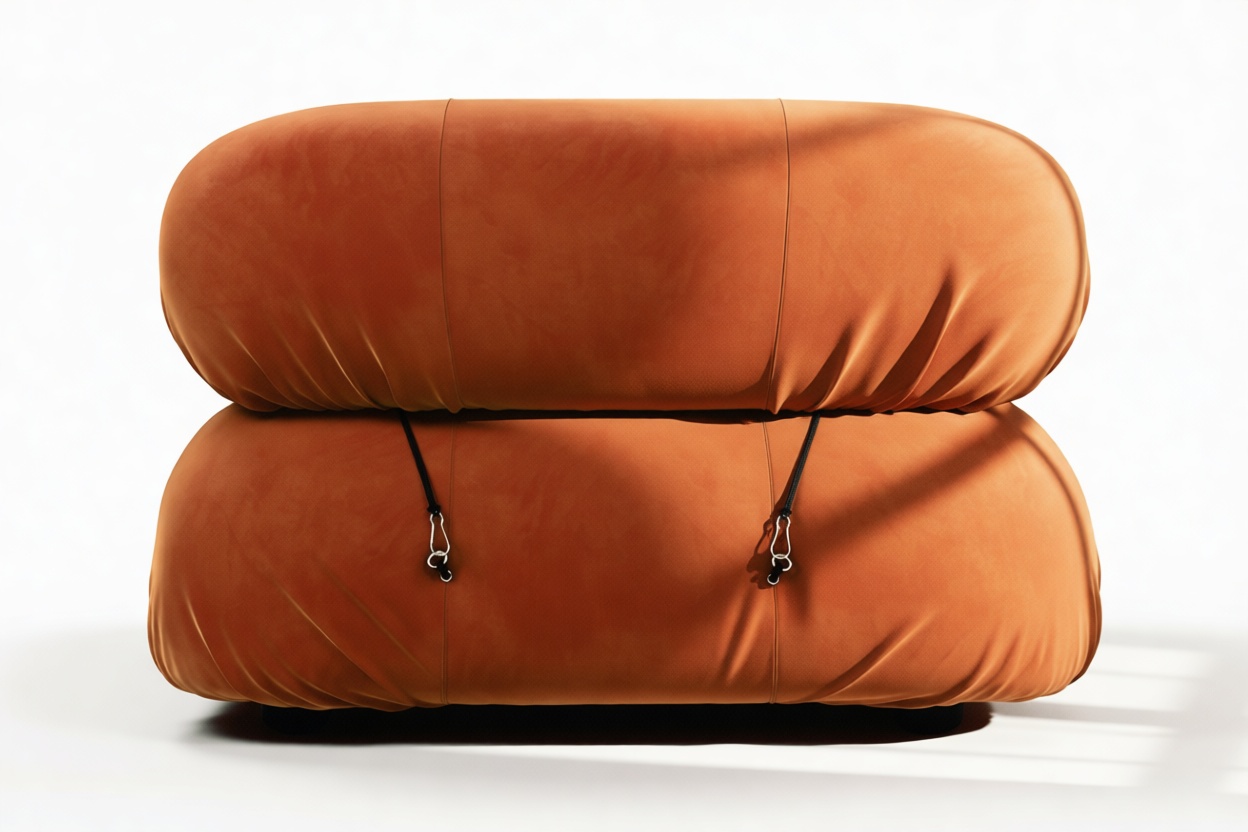 - Modular Instructions: Each section of the Mario Bellini Sofa is modular and is attached with string ties and carabiners. To assemble or rearrange your sofa, simply unclip the carabiners from one ring and attach to a corresponding ring on the module you wish to connect to.