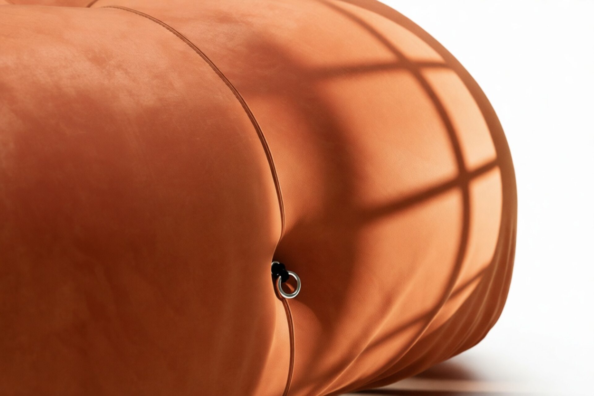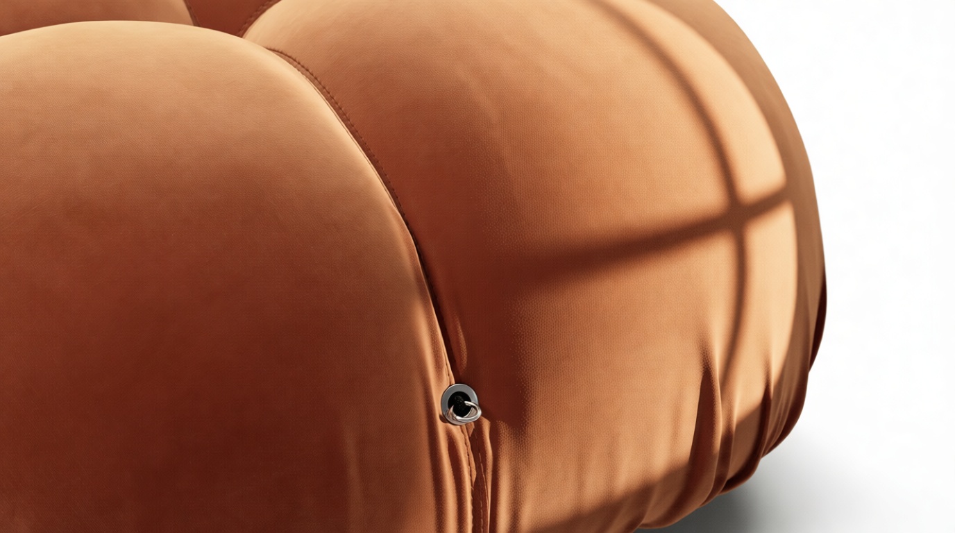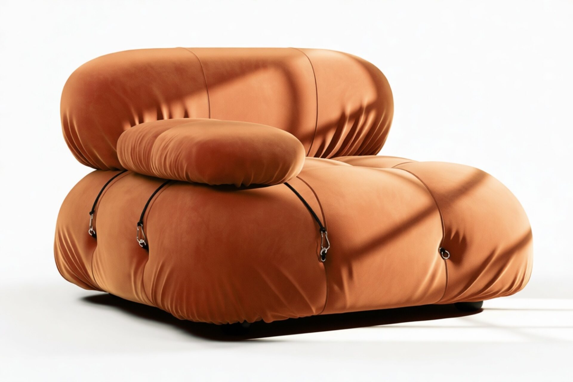 - Modular Instructions: Each section of the Mario Bellini Sofa is modular and is attached with string ties and carabiners. To assemble or rearrange your sofa, simply unclip the carabiners from one ring and attach to a corresponding ring on the module you wish to connect to.