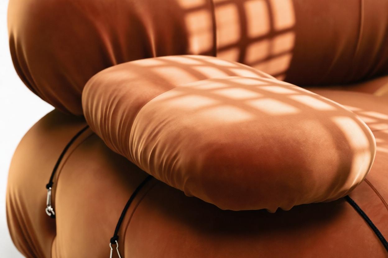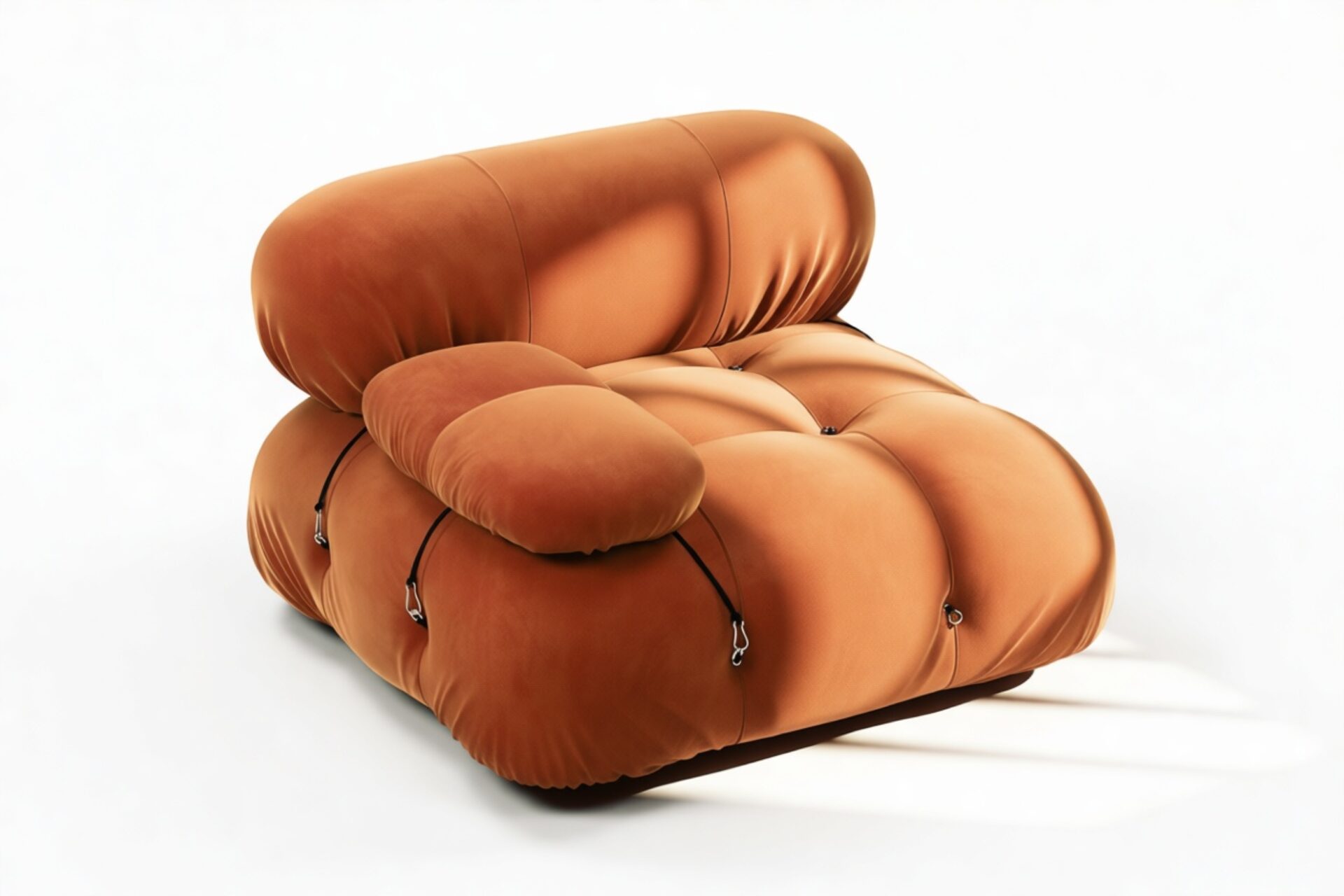 Step back into the 1970s with the Bellini sectional sofa, exuding groovy vibes and carefree living. An ode to liberation, this iconic piece allows customizable configurations to suit your room layout, style, and mood effortlessly. Embraced by a new generation, it features tie rods and rings for easy rearrangement. Upholstered in Spice Velvet, the Bellini's low-profile silhouette and plush cushions offer relaxed luxury, delivering unparalleled style and comfort.