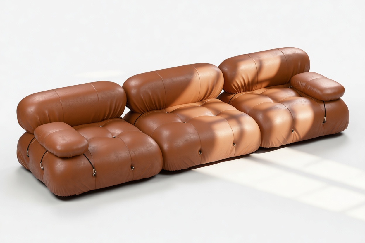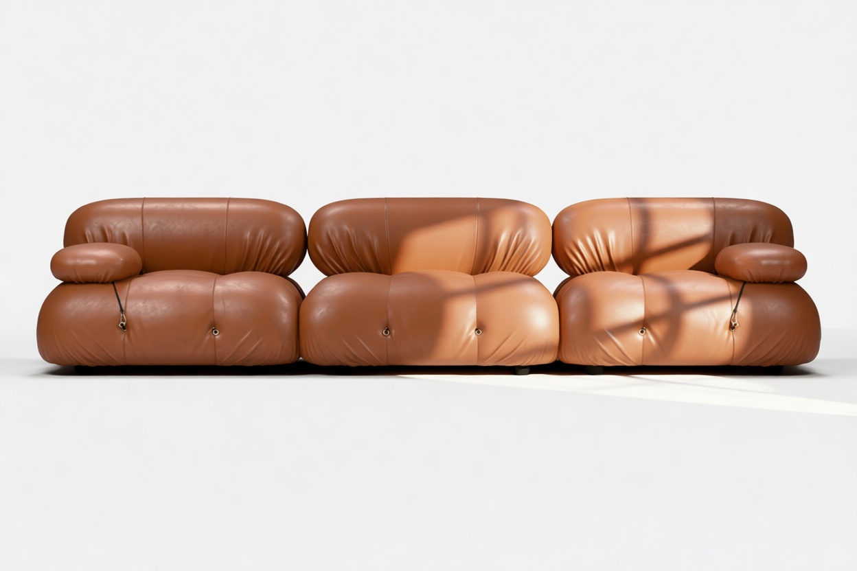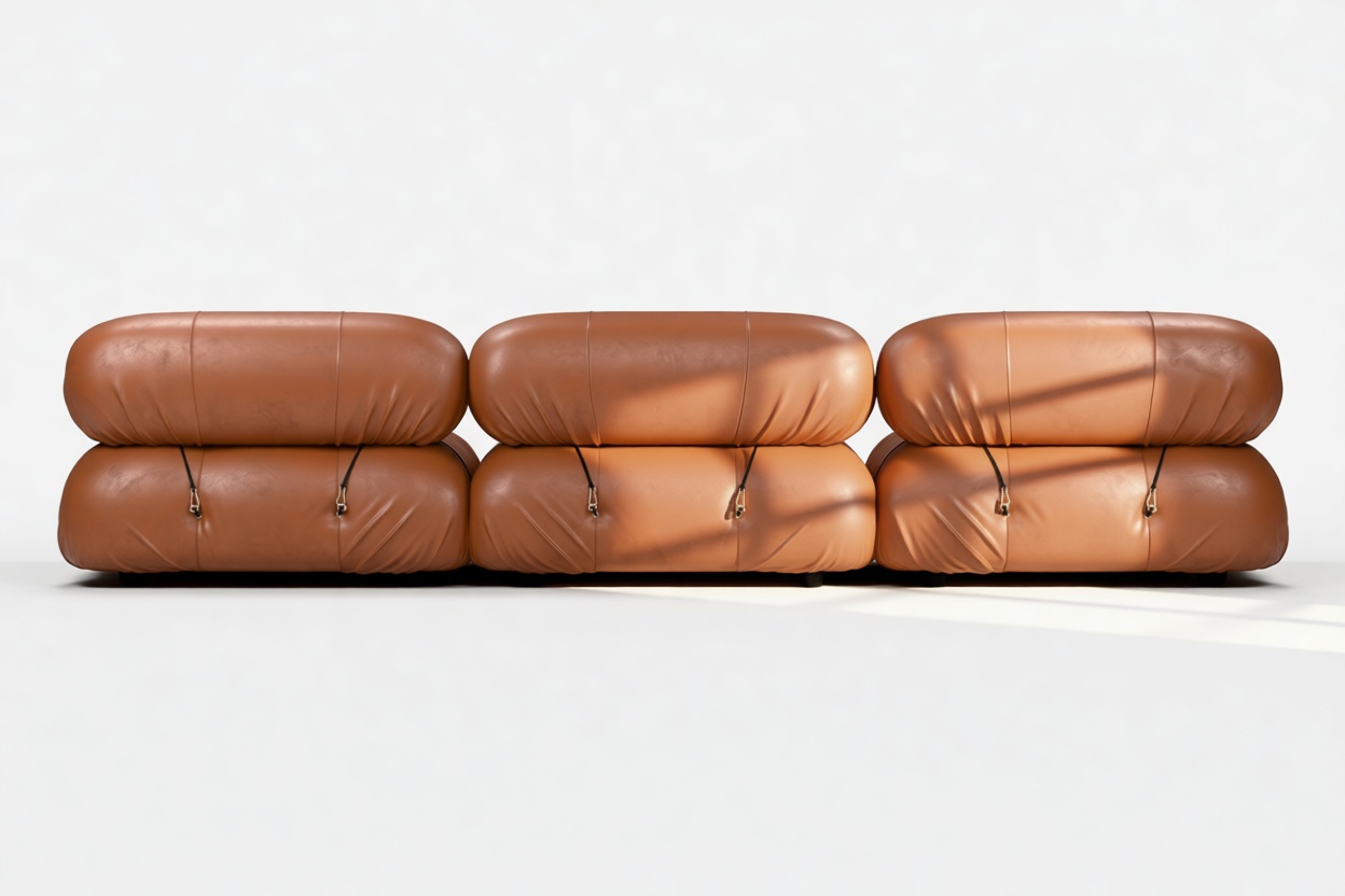 Step into the stylish 1970s era with the Bellini sectional sofa. This chic piece embodies the spirit of freedom and individuality with its innovative modular design, allowing you to effortlessly customize it to suit your space, style, and mood without the hassle of a complete overhaul. Crafted with a sturdy wooden frame and wrapped in soft Tan Premium Leather, the Bellini exudes luxurious relaxation. Its unique tie rods and rings enable easy separation and rearrangement for a personalized touch. Embraced by furniture enthusiasts, the Bellini offers endless configurations, inviting you to indulge in lavish comfort and unwinding in style.