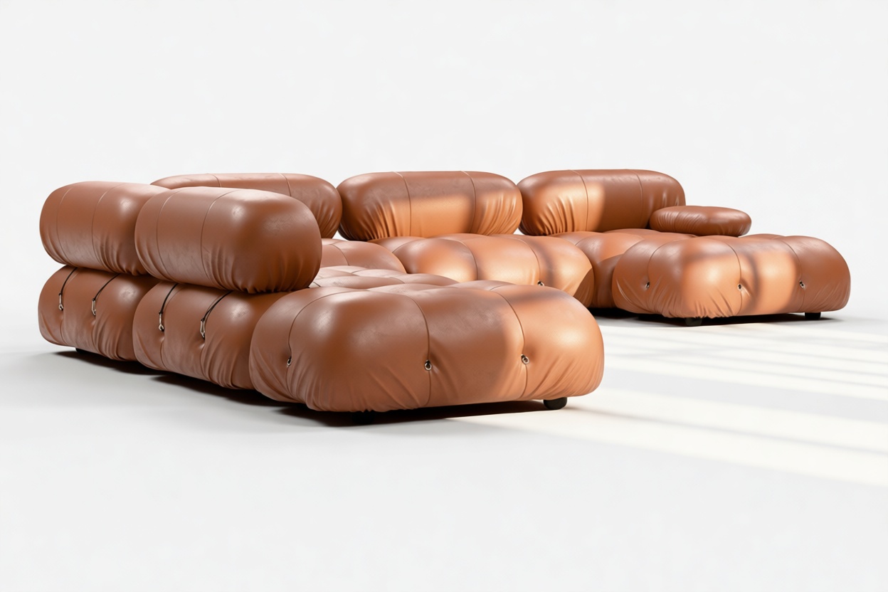 Embodying the essence of the 1970s era, the Bellini Sectional Sofa redefines the concept of open-plan living, offering a refreshing departure from traditional, bulky furniture. This contemporary sectional introduces endless possibilities for customizing your living space to match your style, ambiance, and needs – all without the hassle of full-scale redecoration.