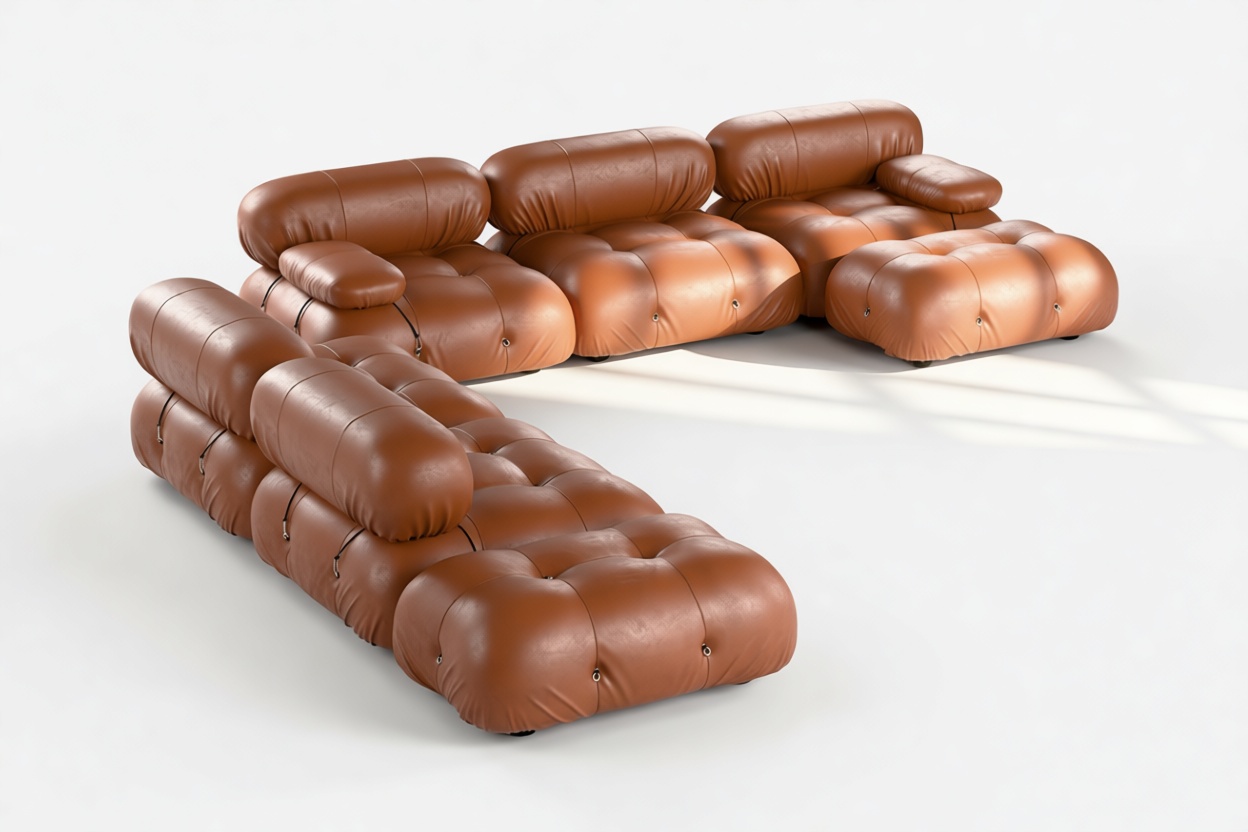 Retro-Chic Bellini Sectional: Tan Leather Opulence