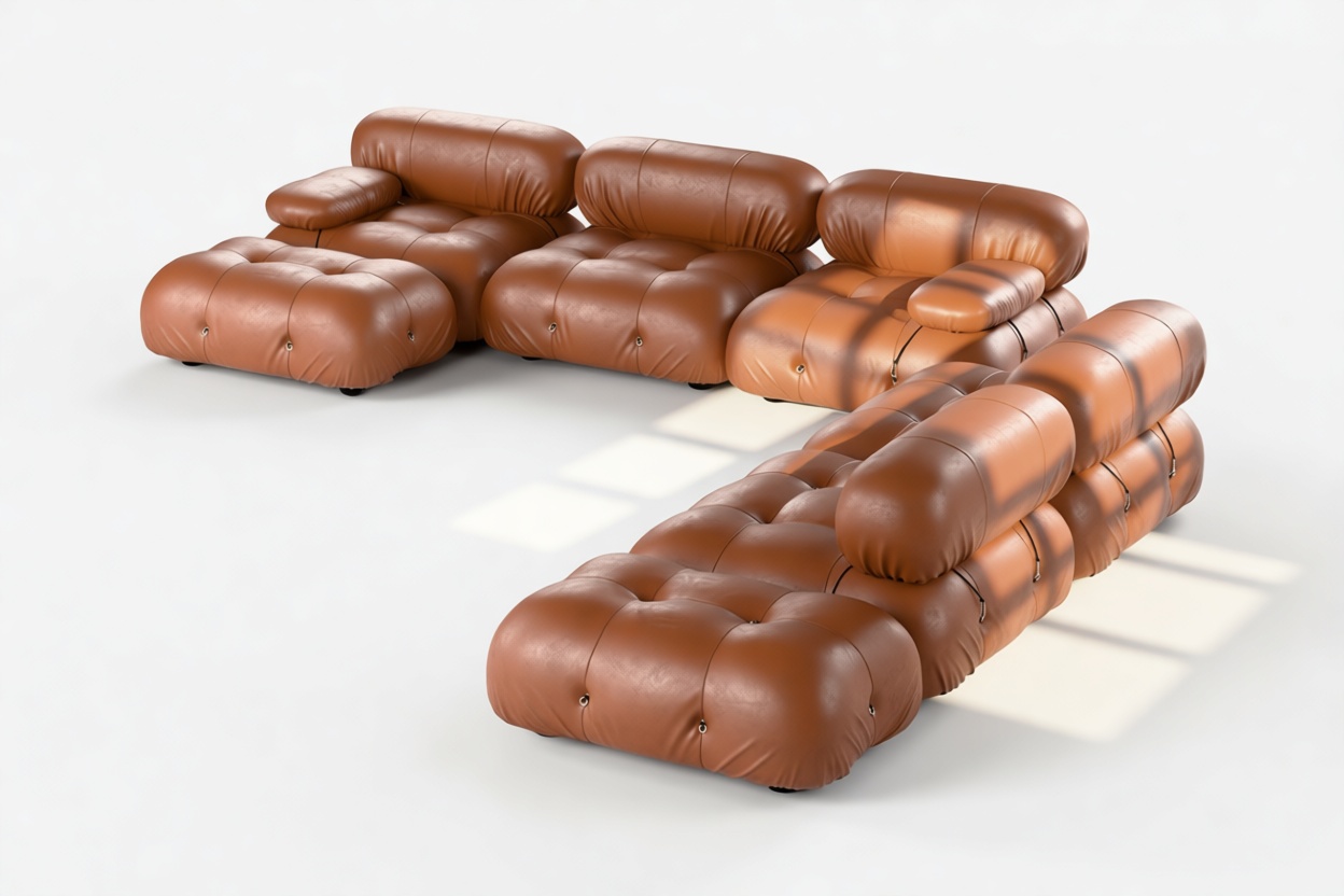 Embodying the essence of the 1970s era, the Bellini Sectional Sofa redefines the concept of open-plan living, offering a refreshing departure from traditional, bulky furniture. This contemporary sectional introduces endless possibilities for customizing your living space to match your style, ambiance, and needs – all without the hassle of full-scale redecoration.