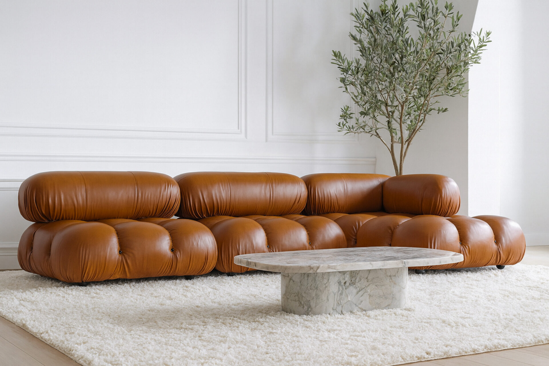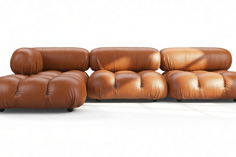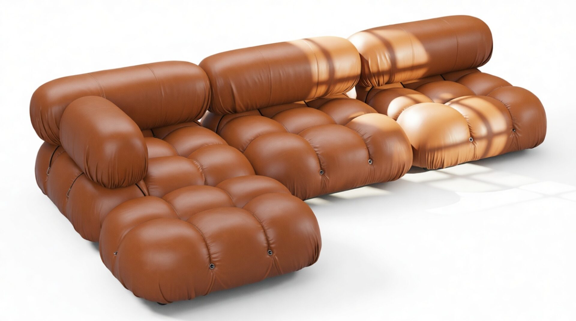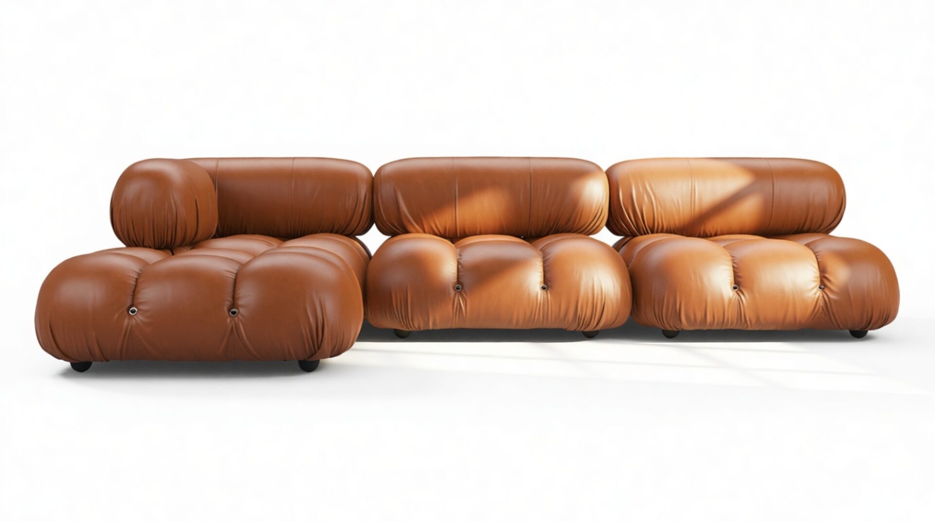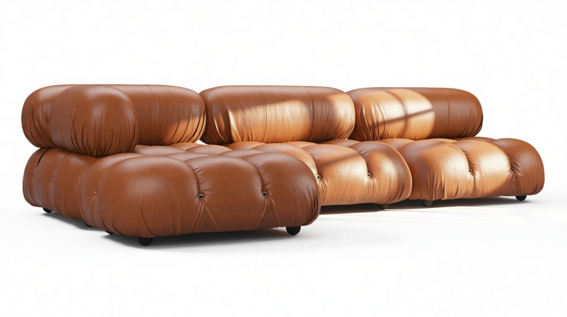 Transport yourself to the groovy era of the 1970s with the Bellini sectional sofa, a chic tribute to carefree living. Defy conventions with its modular design that lets you customize your space effortlessly. Crafted with a sturdy wooden frame and plush cold-pressed foam wrapped in soft Tan Premium Leather, the Bellini exudes relaxed luxury. Its low profile and inviting cushions beckon you to unwind in style.