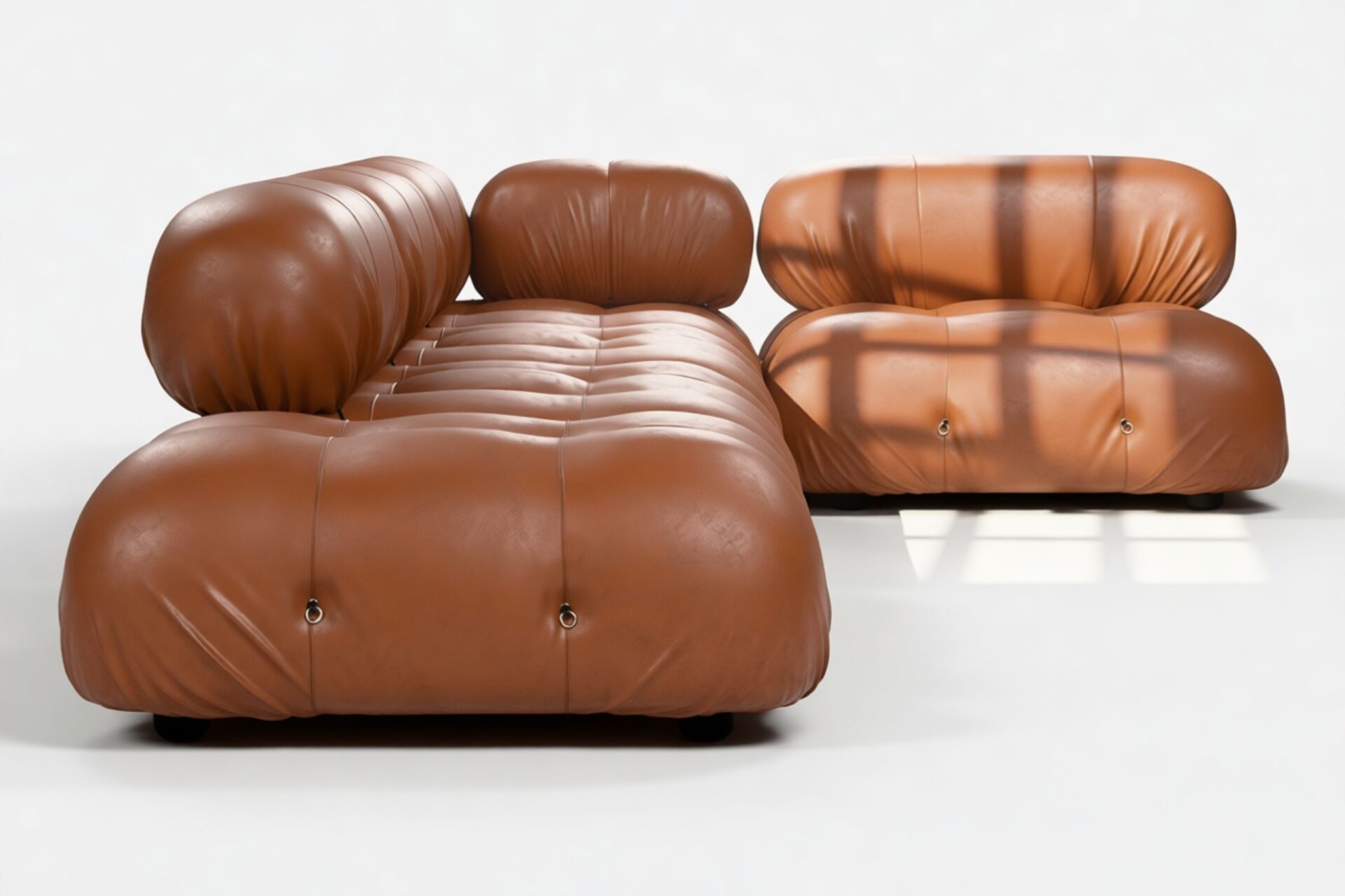 Step into a retro vibe with the Bellini sectional sofa, a nod to 1970s style and free-spirited living. Featuring a modular design, this piece offers liberation for your space, letting you effortlessly customize it. Embraced by modern furniture lovers, the Bellini's tan premium leather option adds a touch of luxury, inviting you to unwind in style and comfort.