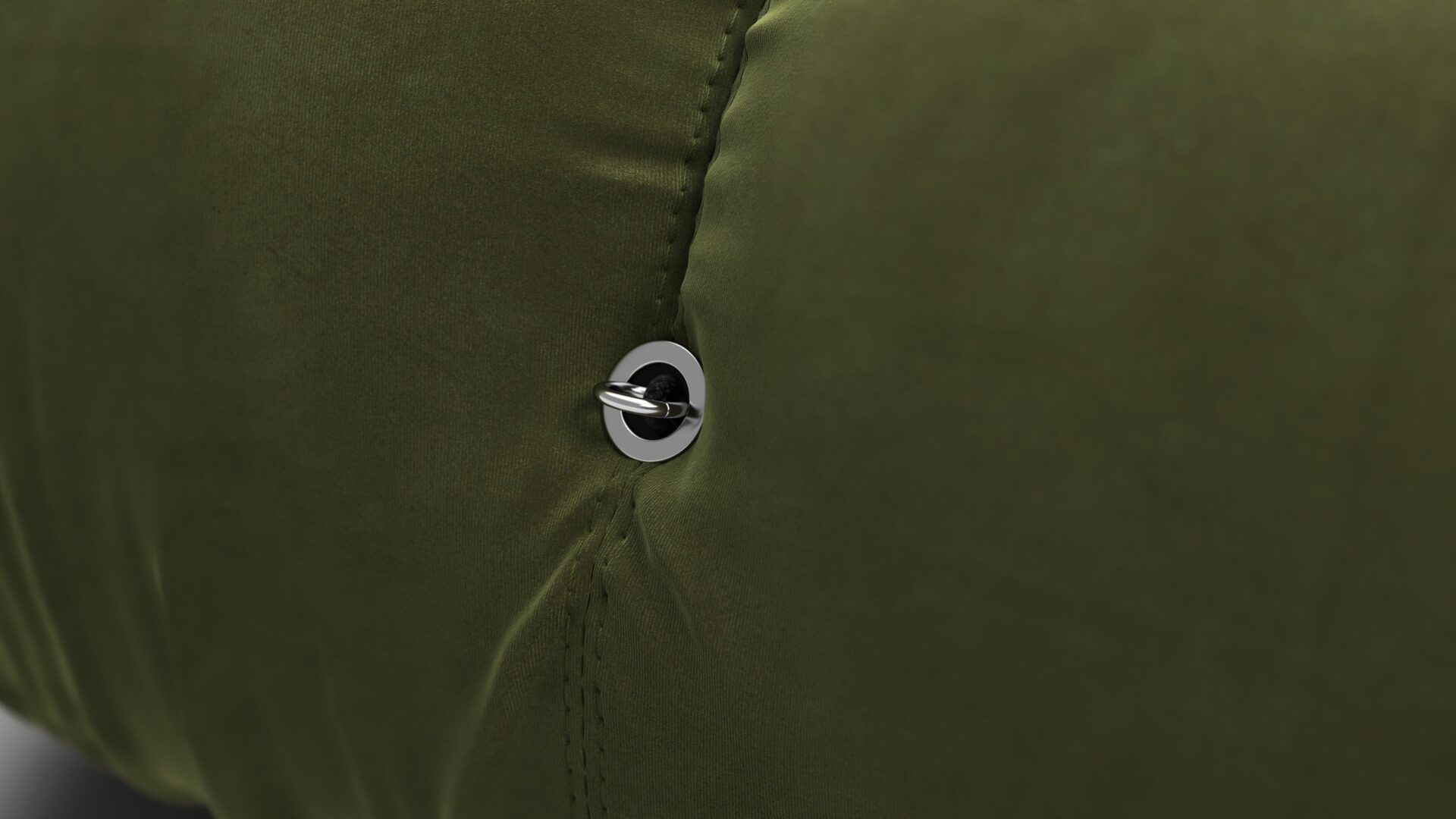 - Modular Instructions: Each section of the Mario Bellini Sofa is modular and is attached with string ties and carabiners. To assemble or rearrange your sofa, simply unclip the carabiners from one ring and attach to a corresponding ring on the module you wish to connect to.
