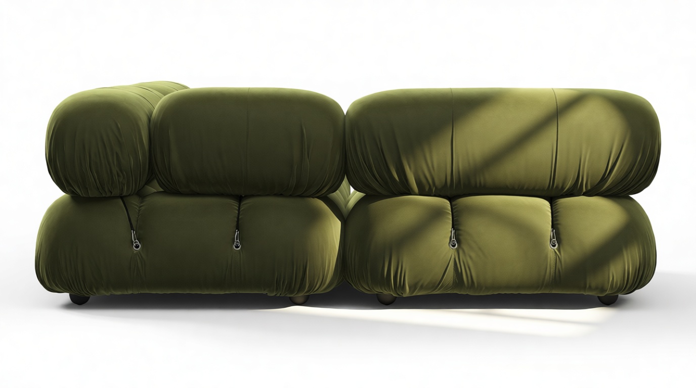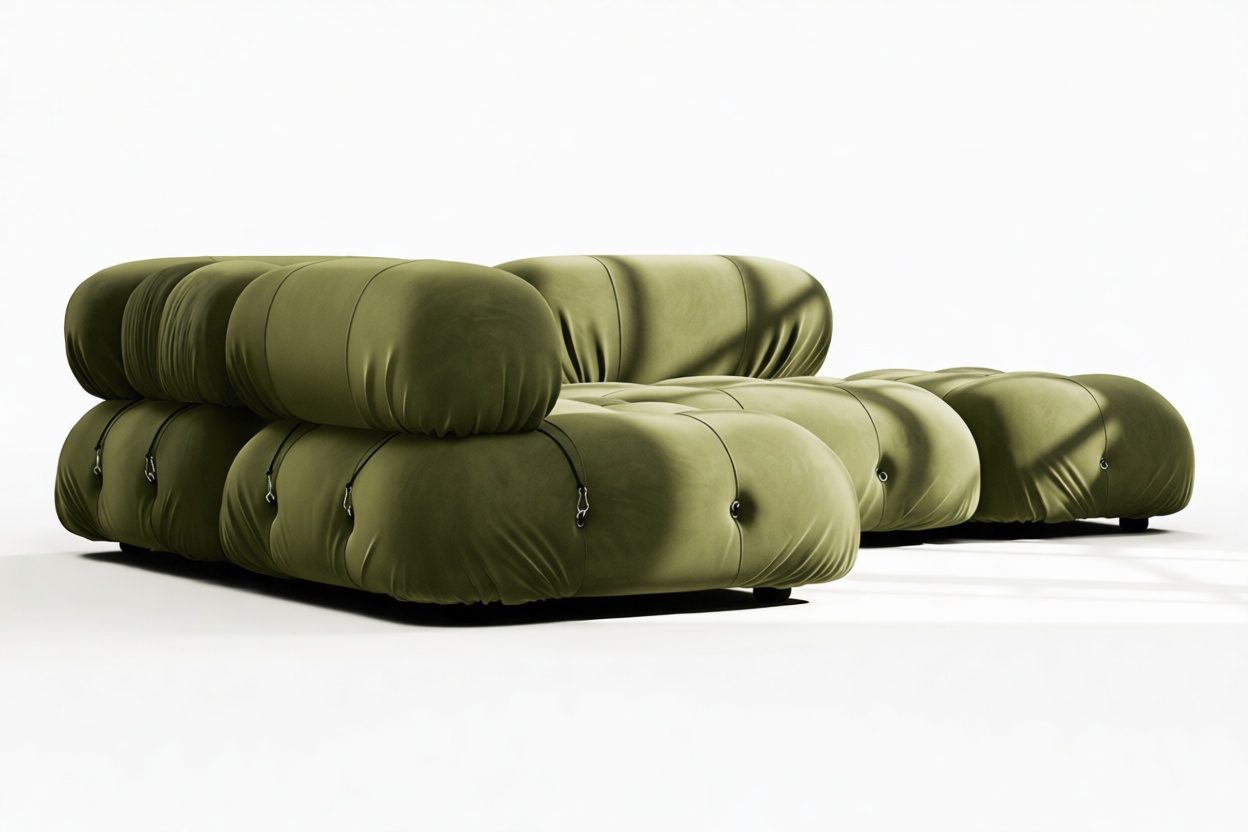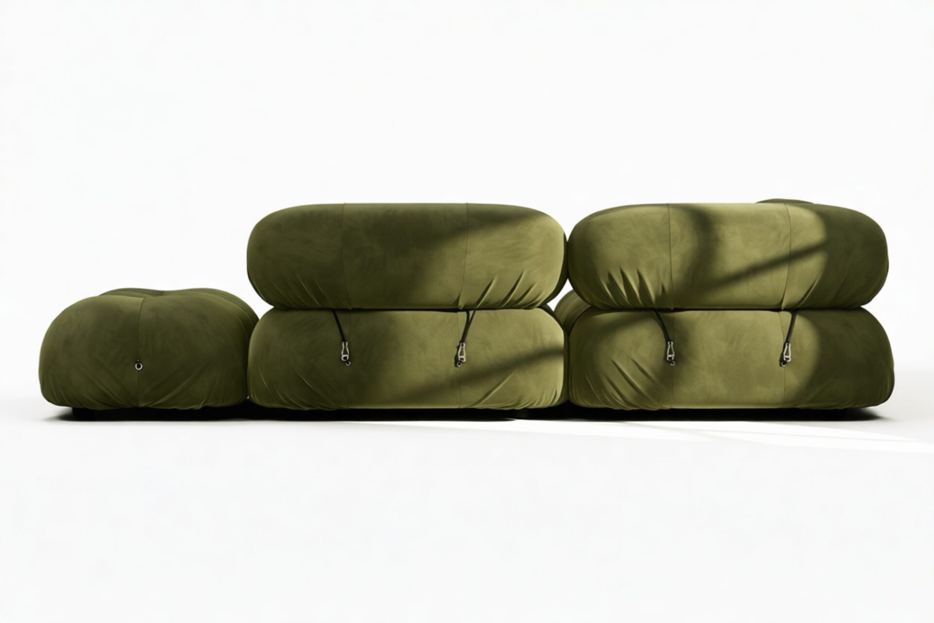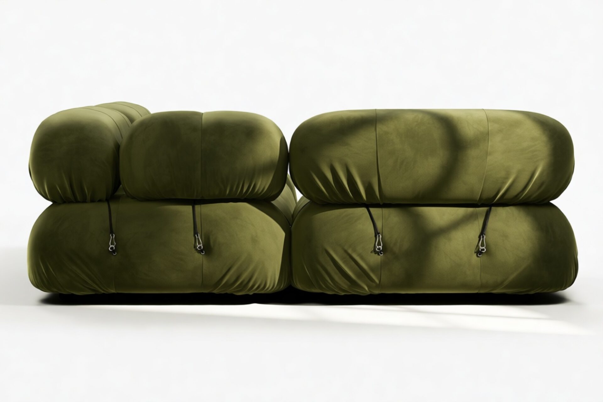 Step back in time to the 1970s with the Bellini sectional sofa, a nod to an era of carefree living. Embracing a modular design, the Bellini allows effortless customization to suit your space, style, and mood without a full makeover. Crafted with a sturdy wooden frame and plush cold-pressed foam enveloped in Thyme Luxe Velvet, this low-profile sofa exudes relaxed luxury. This versatile piece is cherished for its adaptability, featuring tie rods and rings for easy separation and rearrangement, catering to your evolving preferences. Upgrade your space with the Bellini's sectional layout, creating a personalized sofa that fits your area perfectly. Each cushion offers exquisite contours for a lavish and cozy seating experience, delivering unparalleled style and comfort. Explore endless configurations with the Bellini, enticing you to relax and unwind. This iconic favorite effortlessly adjusts to any room or decor, offering liberation and versatility in Thyme Luxe Velvet.