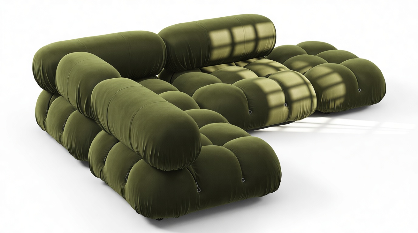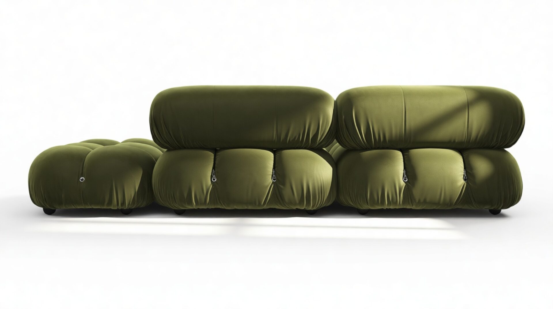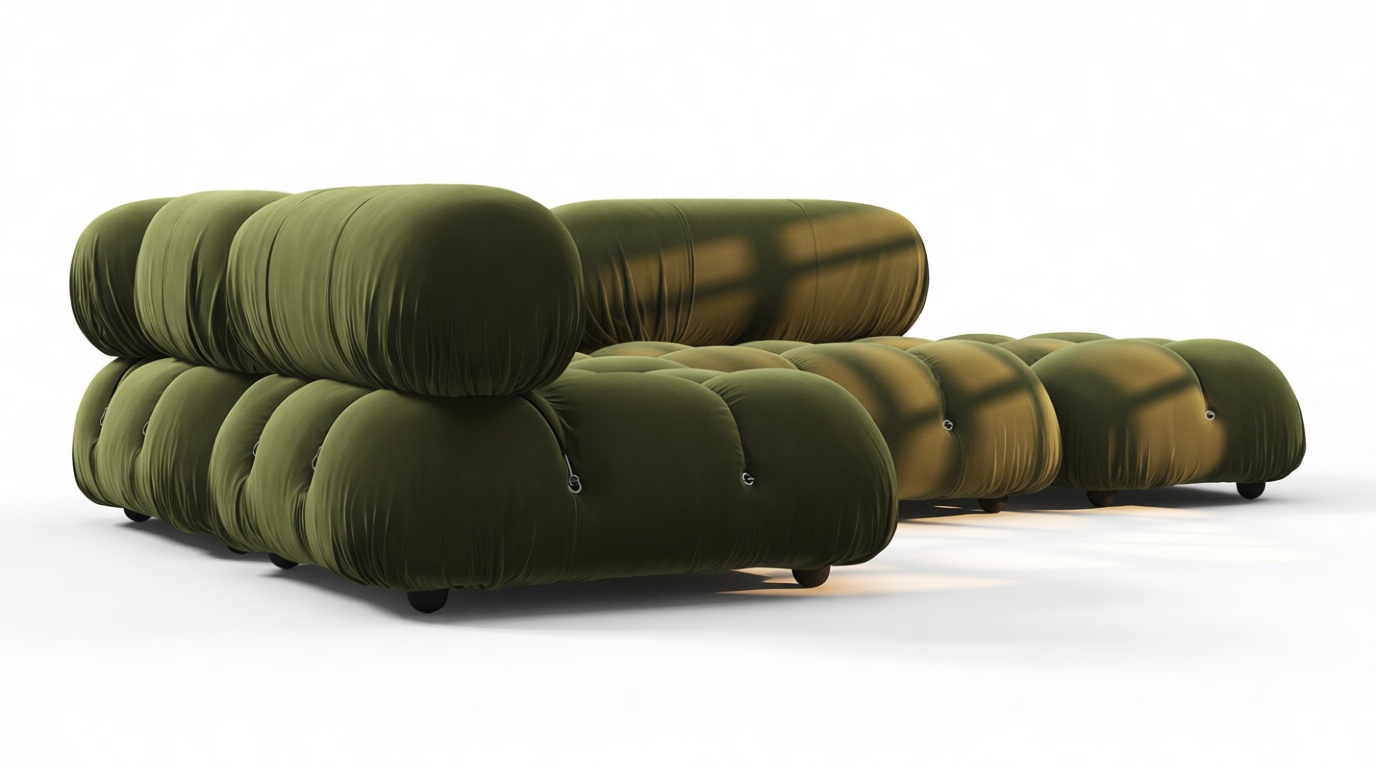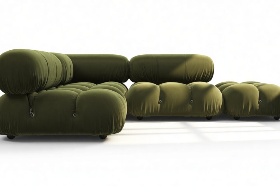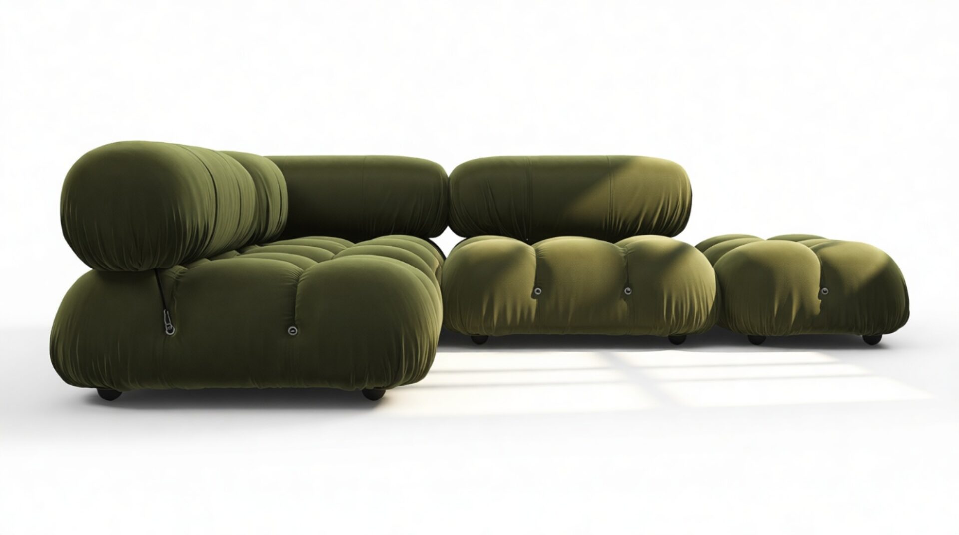 Step back in time to the 1970s with the Bellini sectional sofa, a nod to an era of carefree living. Embracing a modular design, the Bellini allows effortless customization to suit your space, style, and mood without a full makeover. Crafted with a sturdy wooden frame and plush cold-pressed foam enveloped in Thyme Luxe Velvet, this low-profile sofa exudes relaxed luxury. This versatile piece is cherished for its adaptability, featuring tie rods and rings for easy separation and rearrangement, catering to your evolving preferences. Upgrade your space with the Bellini's sectional layout, creating a personalized sofa that fits your area perfectly. Each cushion offers exquisite contours for a lavish and cozy seating experience, delivering unparalleled style and comfort. Explore endless configurations with the Bellini, enticing you to relax and unwind. This iconic favorite effortlessly adjusts to any room or decor, offering liberation and versatility in Thyme Luxe Velvet.