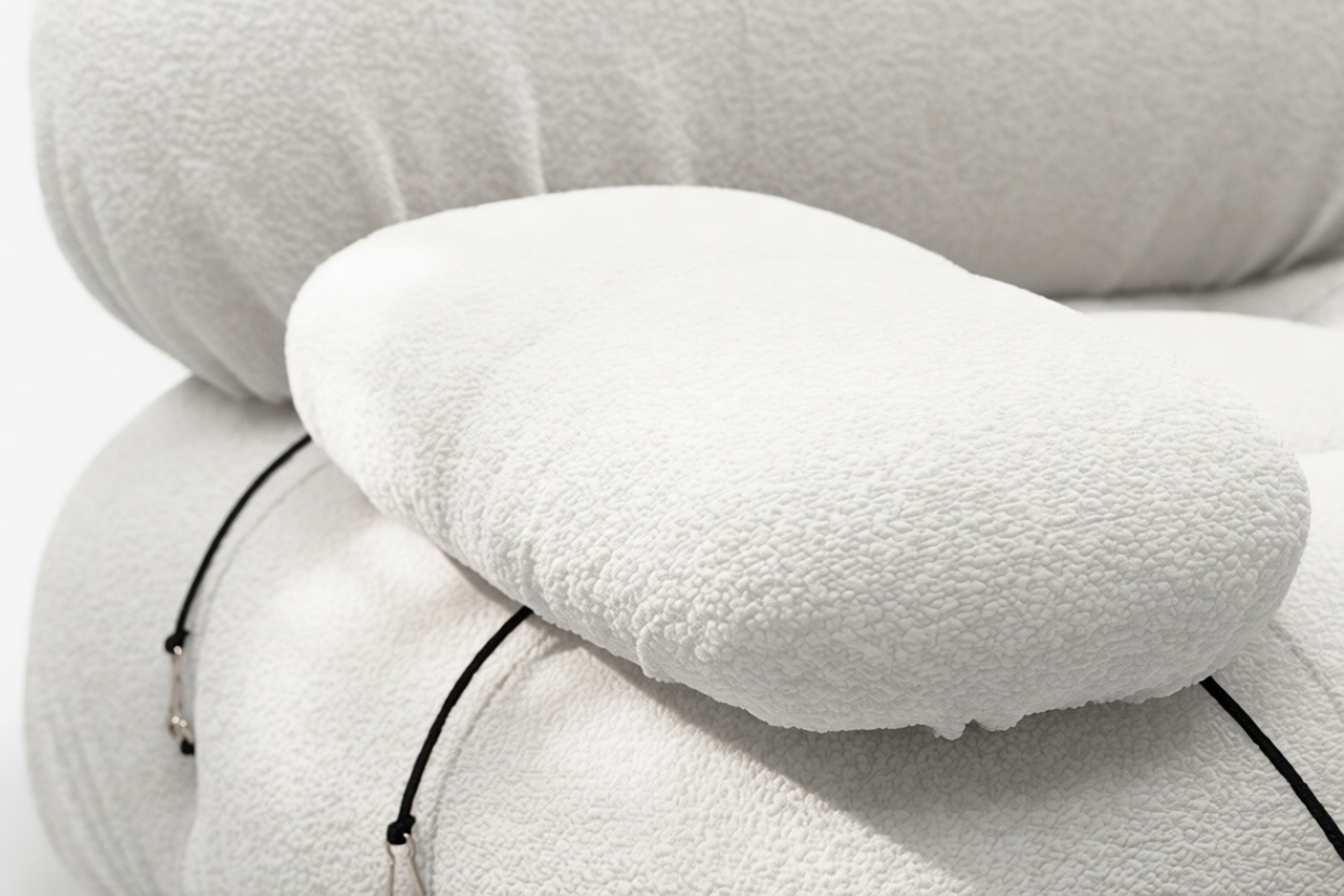 Step back into the 1970s with the Bellini sectional sofa, a nod to that era's funky charm. Breaking away from conventional styles, the Bellini brings a sense of freedom to your space with its modular design that allows for effortless customization to suit your layout, style, and mood. Embraced by a new wave of furniture enthusiasts, the Bellini's versatility shines through, offering tie rods and rings for easy separation and rearrangement. Crafted with a sturdy wooden frame and plush cold-pressed foam wrapped in soft fabric, the Bellini's low-profile elegance exudes a laid-back luxury. Discover the inviting comfort of the Bellini's White Boucle finish, perfect for unwinding in style, while its endless configuration options cater to your evolving preferences.