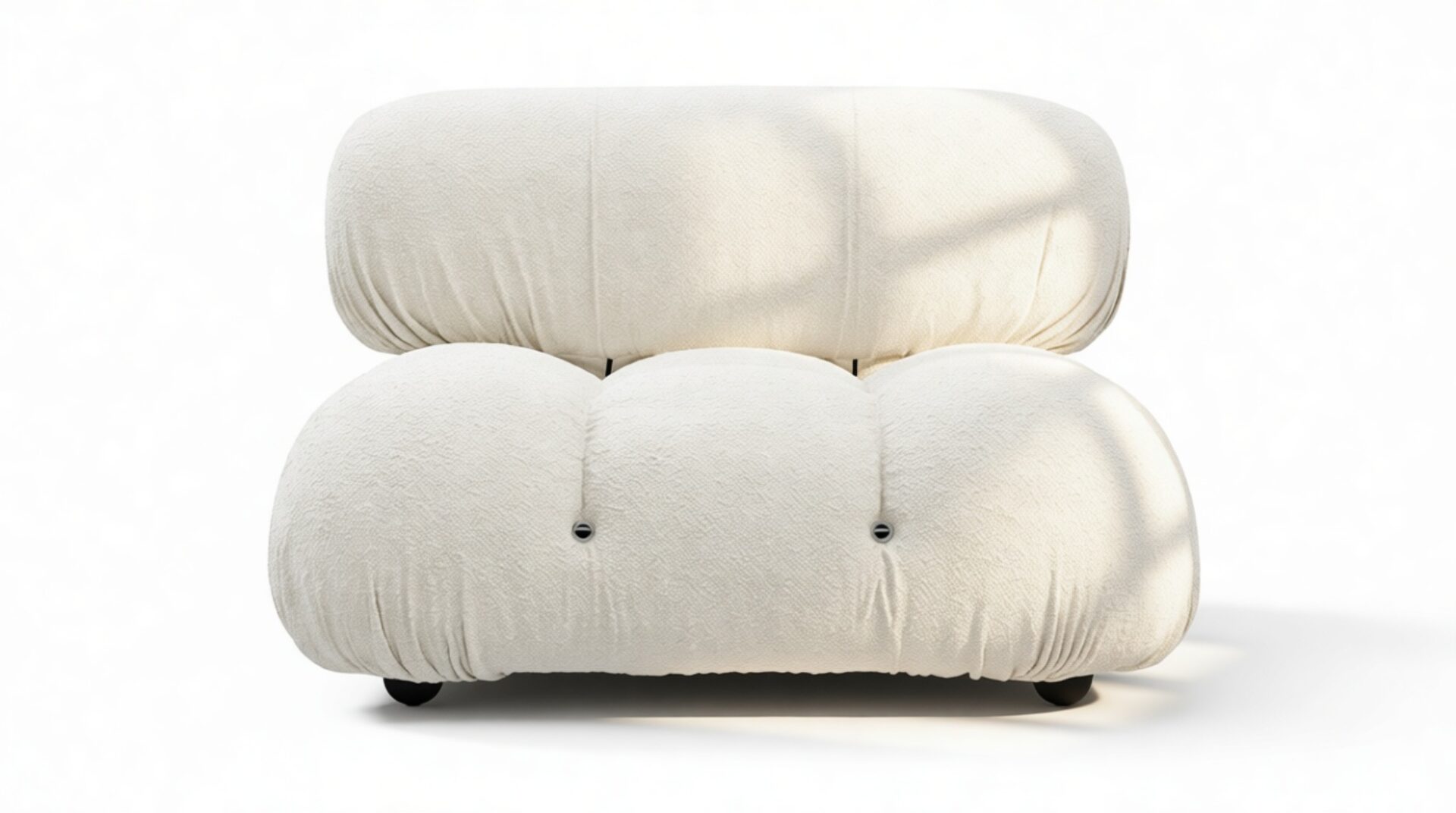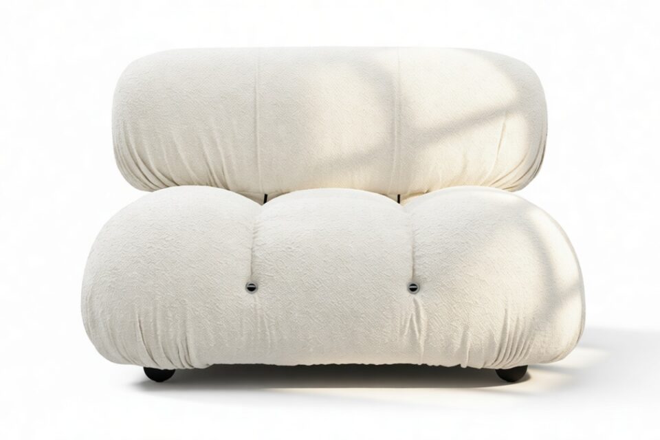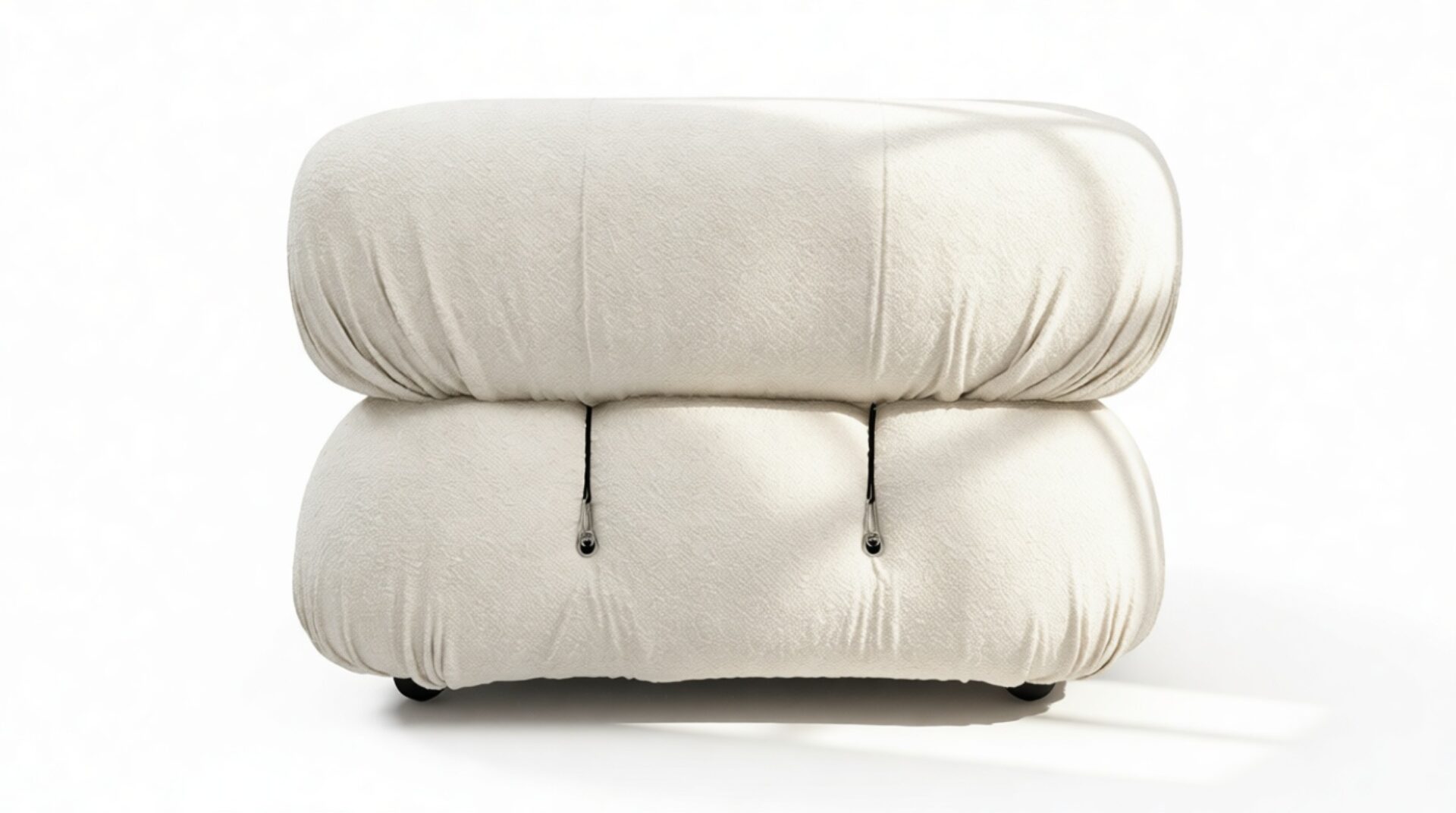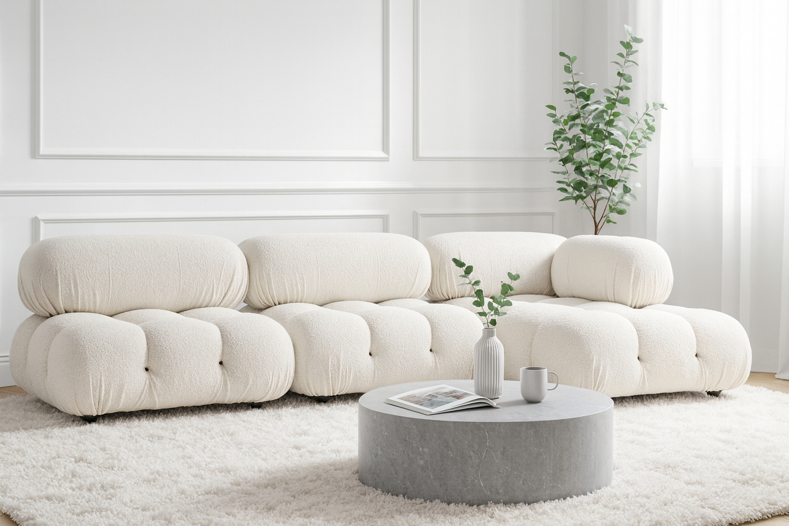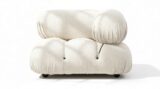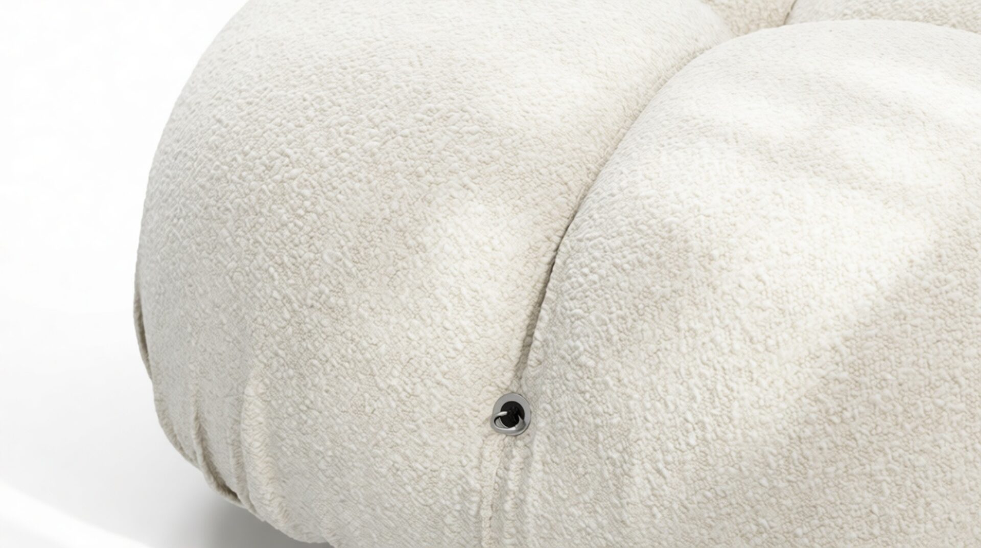 Step into the retro charm of the 1970s with the Bellini sectional sofa, embodying a spirit of freedom and individuality. Its modular design allows for effortless customization to suit your space, style, and mood. Crafted with a sturdy wooden frame and plush cold-pressed foam wrapped in soft White Boucle fabric, the Bellini exudes relaxed luxury, inviting you to unwind in style with its low-profile silhouette. Discover endless configurations with tie rods and rings that enable easy separation and rearrangement, giving you the flexibility to adapt your sofa to your evolving preferences. Cherished by a new generation for its liberating essence, the Bellini offers the perfect blend of style and comfort for any setting, making it a must-have addition for furniture enthusiasts seeking versatile and chic seating options.