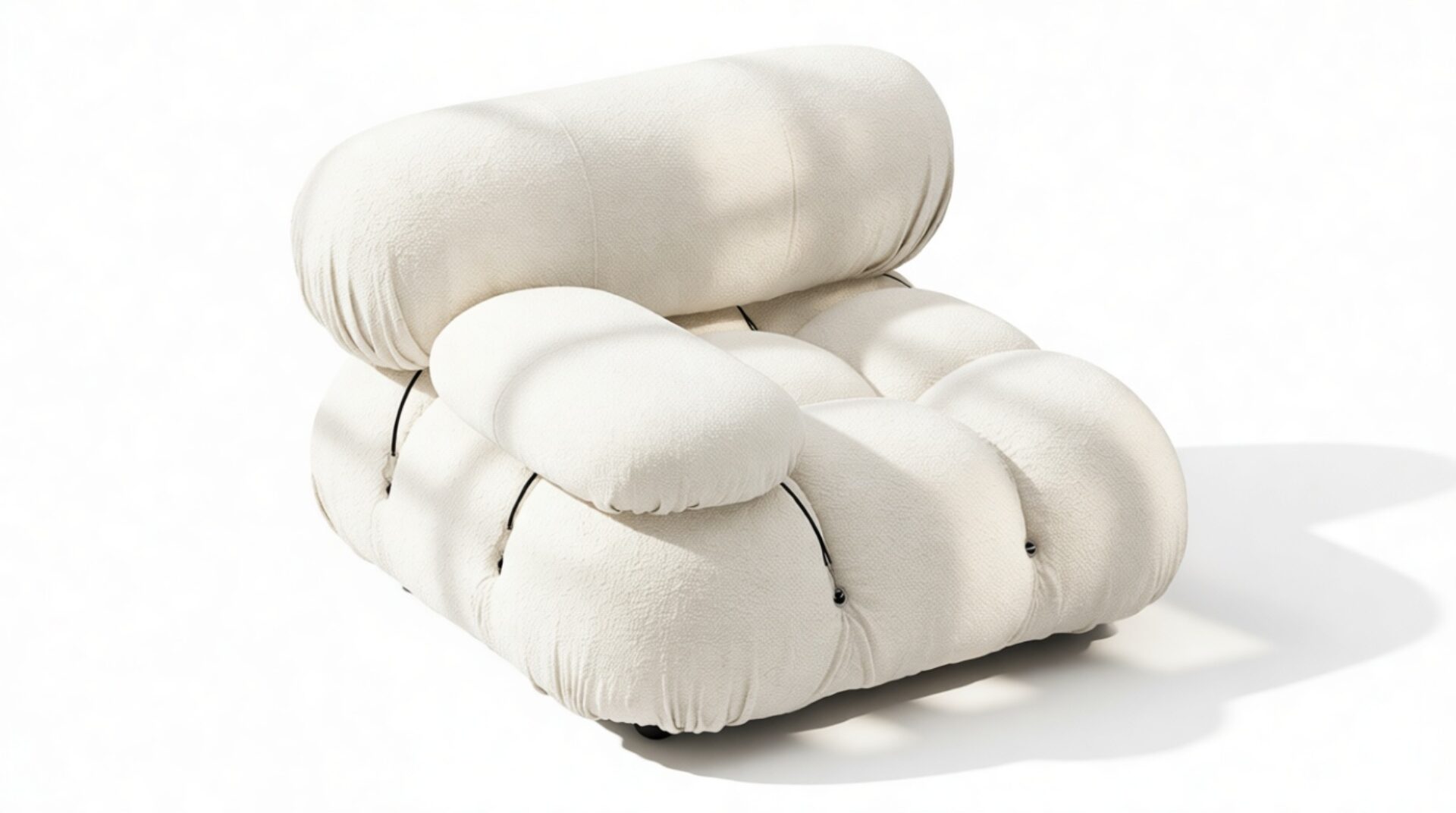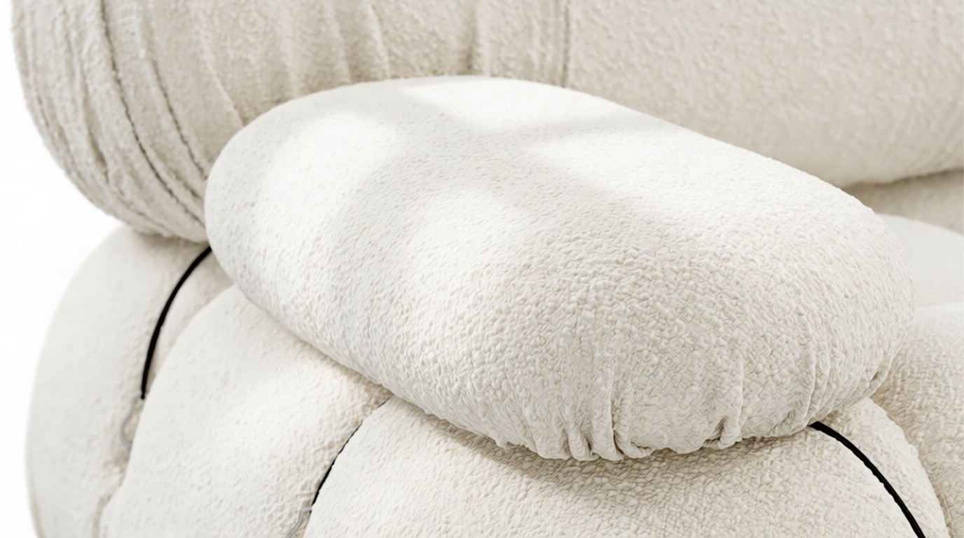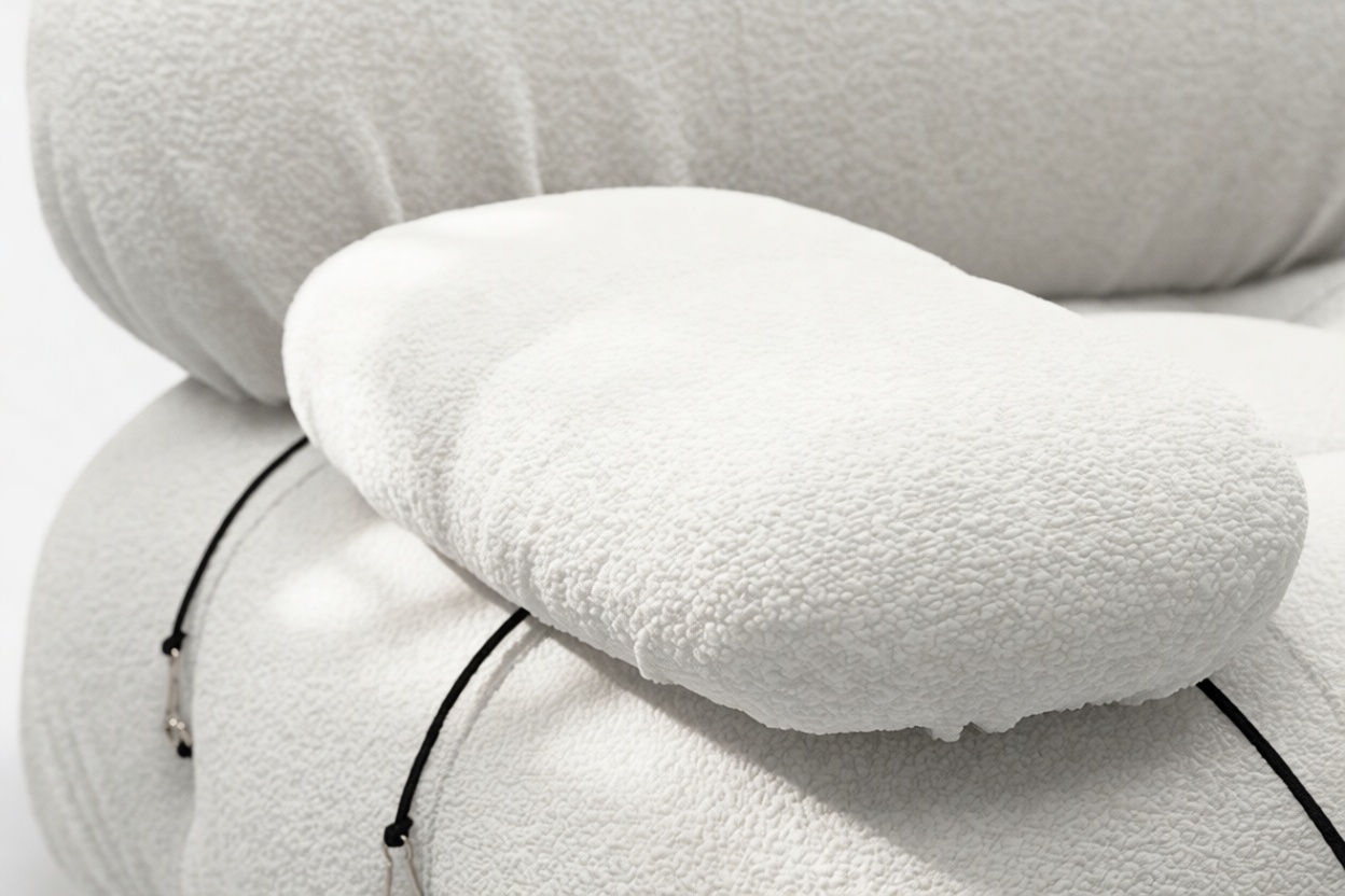 Step into the retro charm of the 1970s with the Bellini sectional sofa, a symbol of carefree living and groovy vibes. Its modular construction allows effortless customization to suit your room's layout and mood. Embraced by a new generation, the Bellini features tie rods and rings, offering freedom in rearranging. Crafted with a sturdy wooden frame and plush cold-pressed foam enveloped in soft White Boucle fabric, the Bellini exudes relaxed luxury with its low-profile silhouette. This trendy modular sofa elevates your space with its versatile sectional design, providing a personalized seating experience. Explore endless layout options, allowing you to create various configurations that blend relaxation and social interaction seamlessly. Versatile and adaptable, the Bellini effortlessly complements any room or decor, embodying liberation and style for every setting.