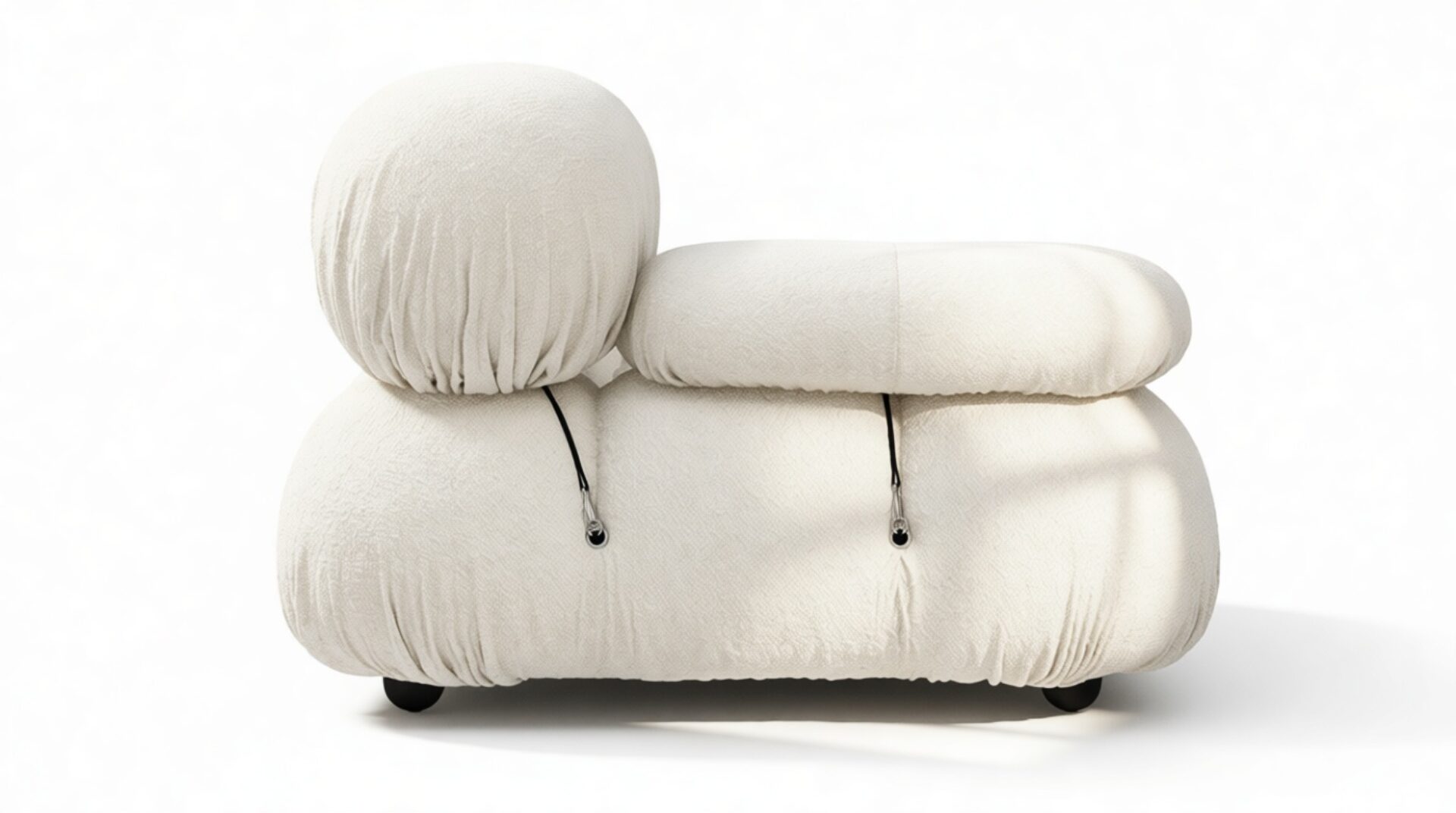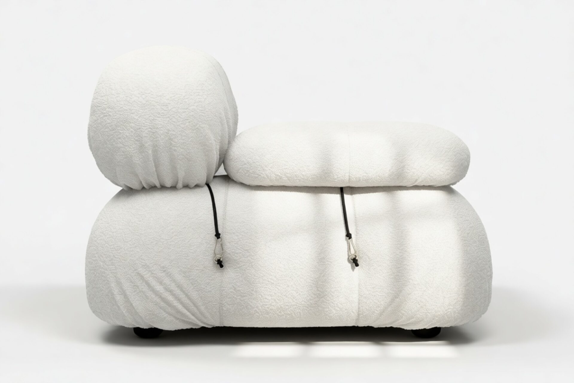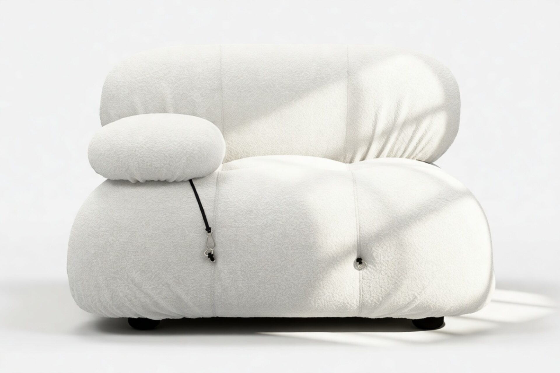 - Modular Instructions: Each section of the Mario Bellini Sofa is modular and is attached with string ties and carabiners. To assemble or rearrange your sofa, simply unclip the carabiners from one ring and attach to a corresponding ring on the module you wish to connect to.