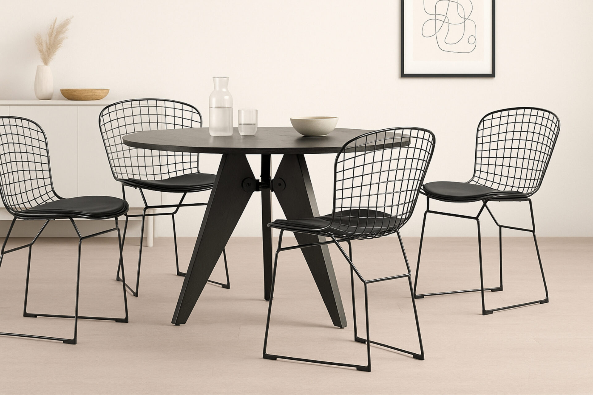 Crafted from precision-welded steel wire with a timeless leather seat pad, the Bertie seamlessly combines expert engineering and daily relaxation.