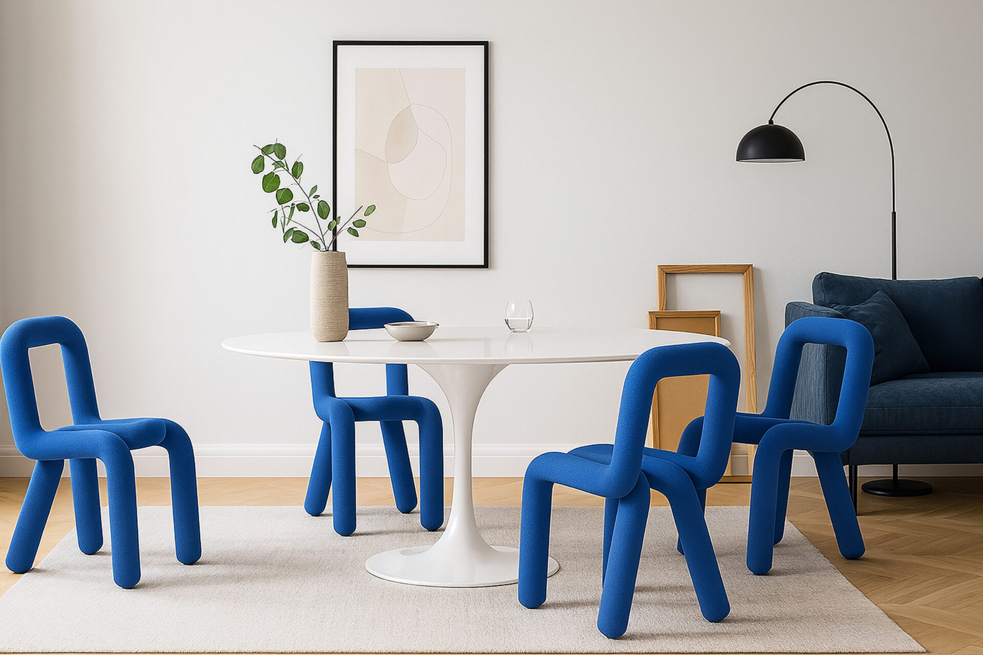 Elevate any space with The Bold Chair, a fearless piece blending art and functionality. This eye-catching chair disrupts norms with its innovative design, merging bold visual appeal with supreme comfort. Crafted with ultramarine wool upholstery, it embodies class and creativity, offering a dash of artistic charm and a genuine expression of modern design.