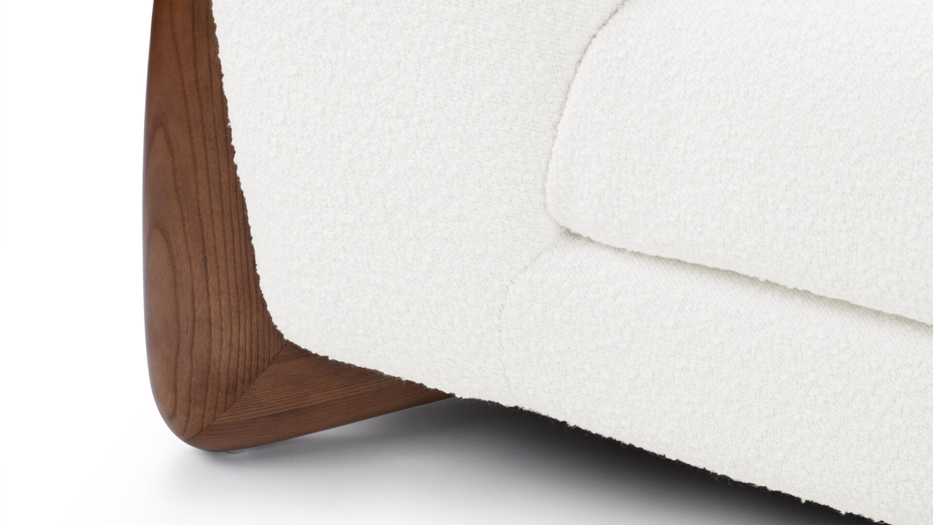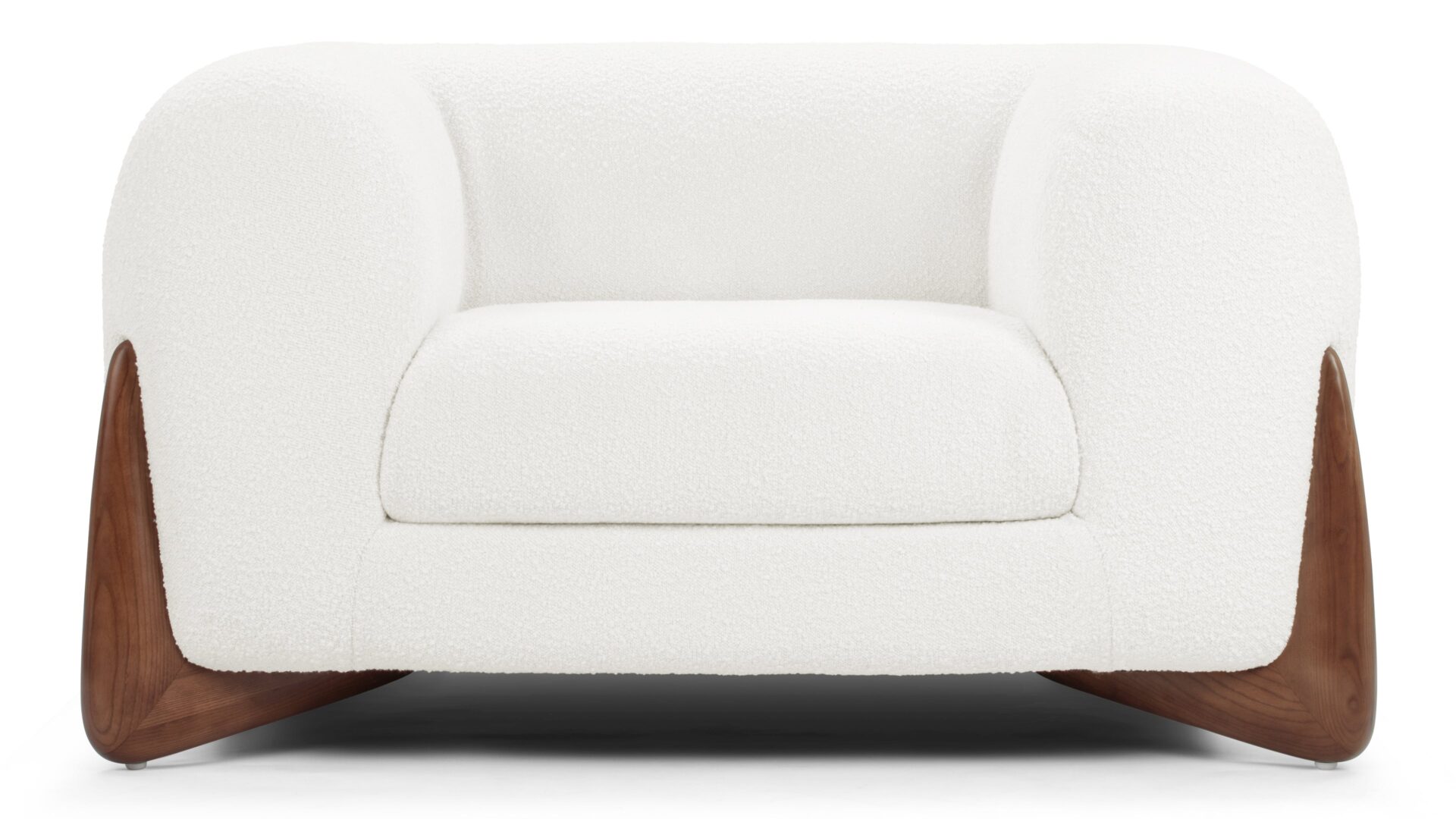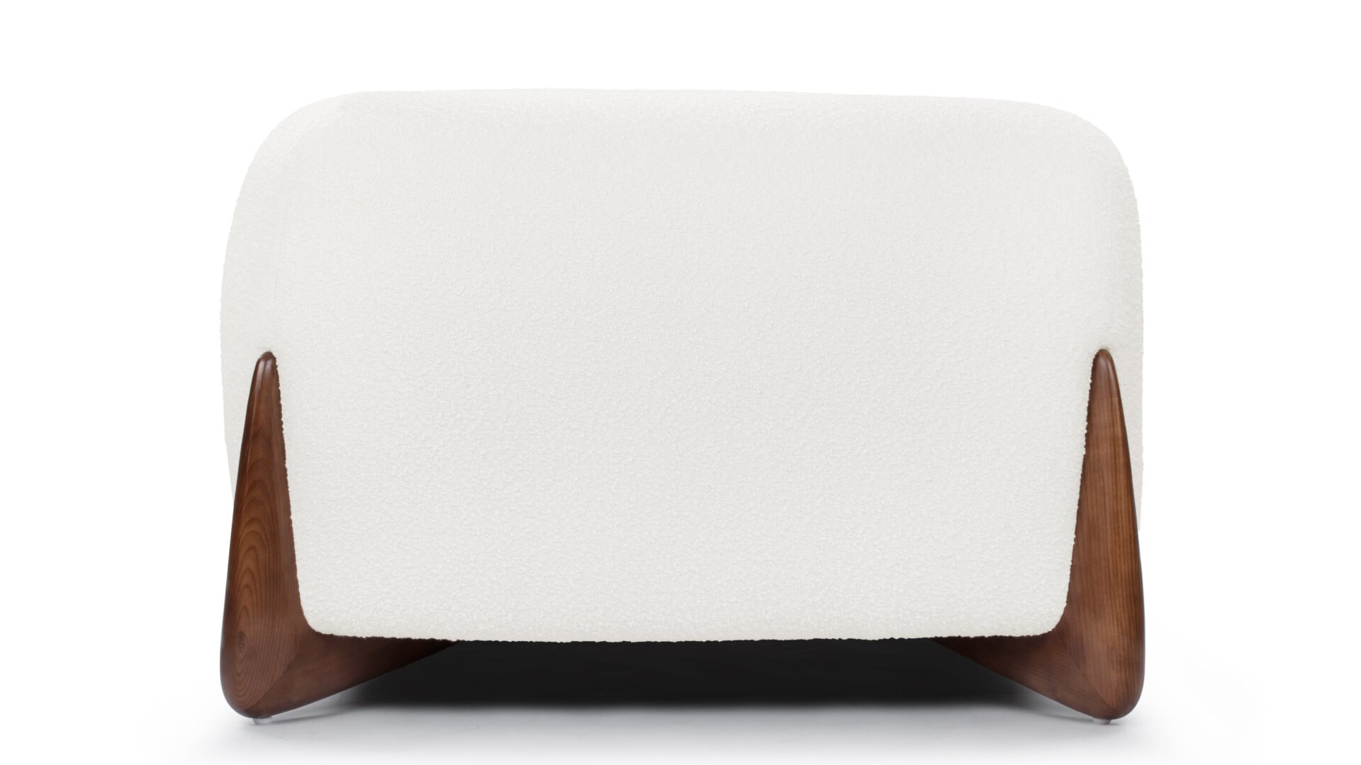 Elevate your space with the luxurious combination of the dark, rich walnut tones and the pure white bouclé in our chair. This pairing adds a hint of opulence while anchoring the chair in a seamless fusion of natural beauty and contemporary design.