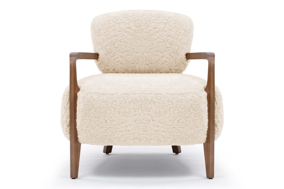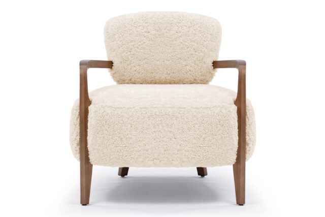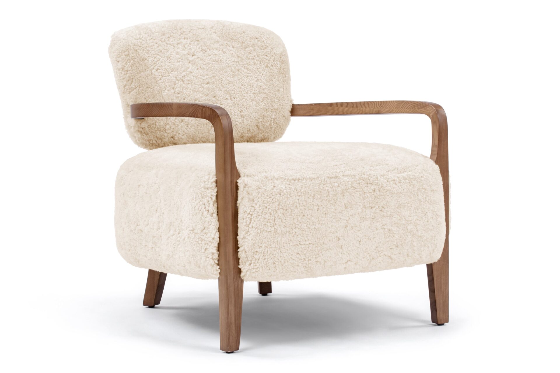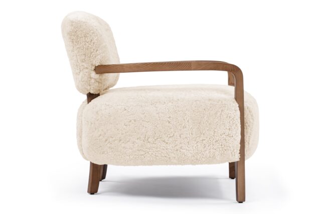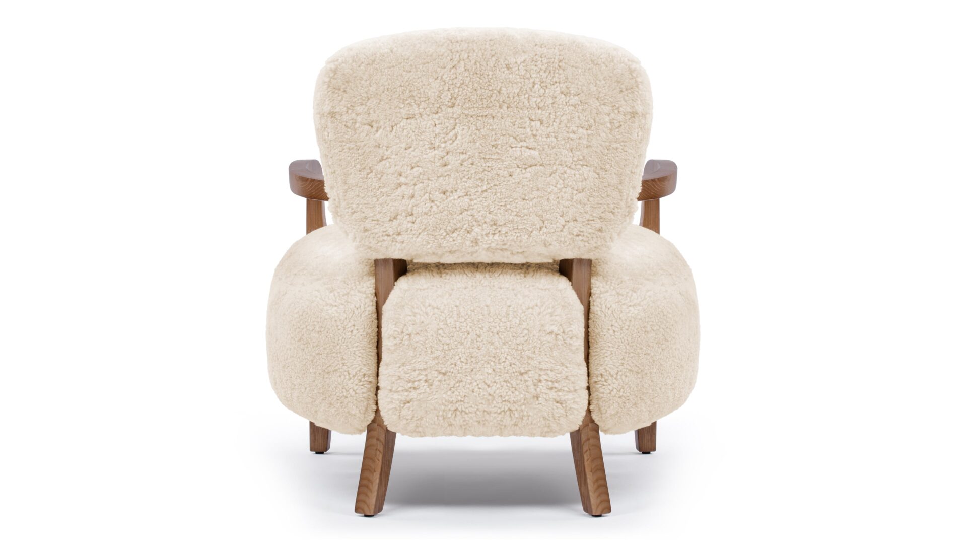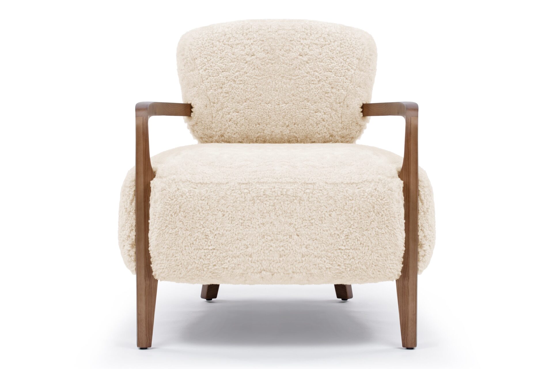 Elevate your space with the Cabana Chair, a luxurious seating choice designed with plush vegan sheepskin. Its sophisticated profile effortlessly complements any interior style, from living rooms to cozy reading corners. The Natural Luxe Sheepskin upholstery of the chair offers indulgent comfort, enhanced by generous cushioning and a sturdy walnut frame. Add elegance and warmth to your home with this Nordic-influenced statement piece.