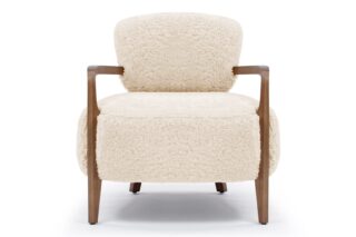 Elevate your space with the Cabana Chair, a luxurious seating choice designed with plush vegan sheepskin. Its sophisticated profile effortlessly complements any interior style, from living rooms to cozy reading corners. The Natural Luxe Sheepskin upholstery of the chair offers indulgent comfort, enhanced by generous cushioning and a sturdy walnut frame. Add elegance and warmth to your home with this Nordic-influenced statement piece.