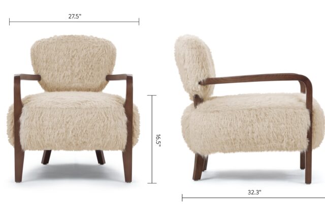 Drift into luxury with our Vegan Sheepskin Armchair. Enveloped in sumptuous vegan sheepskin upholstery, this armchair offers an indulgent seating experience. The natural texture and softness of the sheepskin create a sense of warmth and luxury, making it the perfect spot to curl up and relax. Sink into the generous cushioning and supportive foam padding for optimal comfort, while the sturdy wooden frame ensures durability and stability.