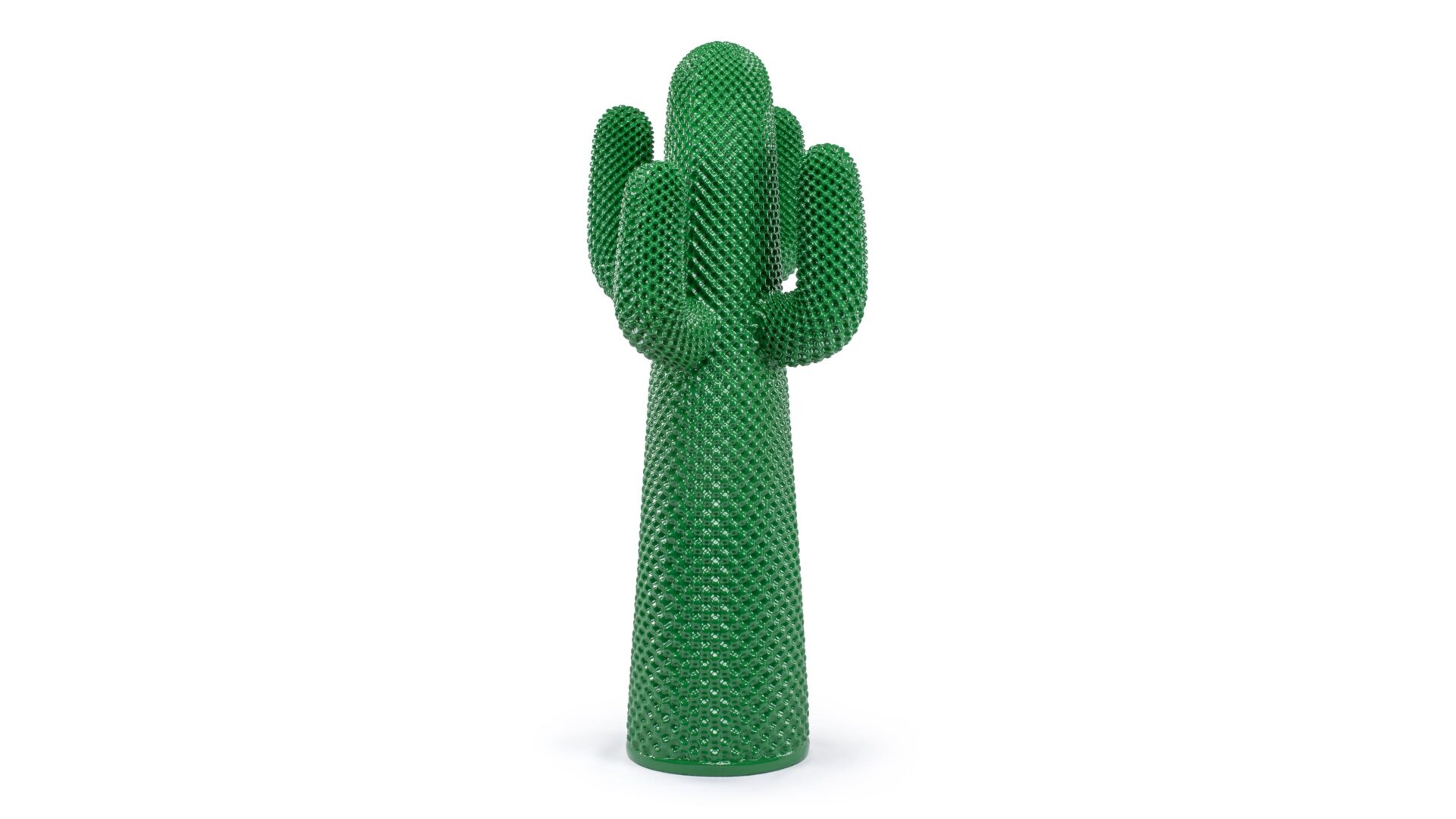 Elevate your space with the iconic Cactus Coat Stand inspired by 1970s Italian design. Its vibrant green hue and playful cactus shape blend artistry and durability, offering stability and adaptability with arm branches doubling as practical hooks. Ideal for modern settings and creative spaces, this standout furniture sparks conversations while serving as a functional furnishing.