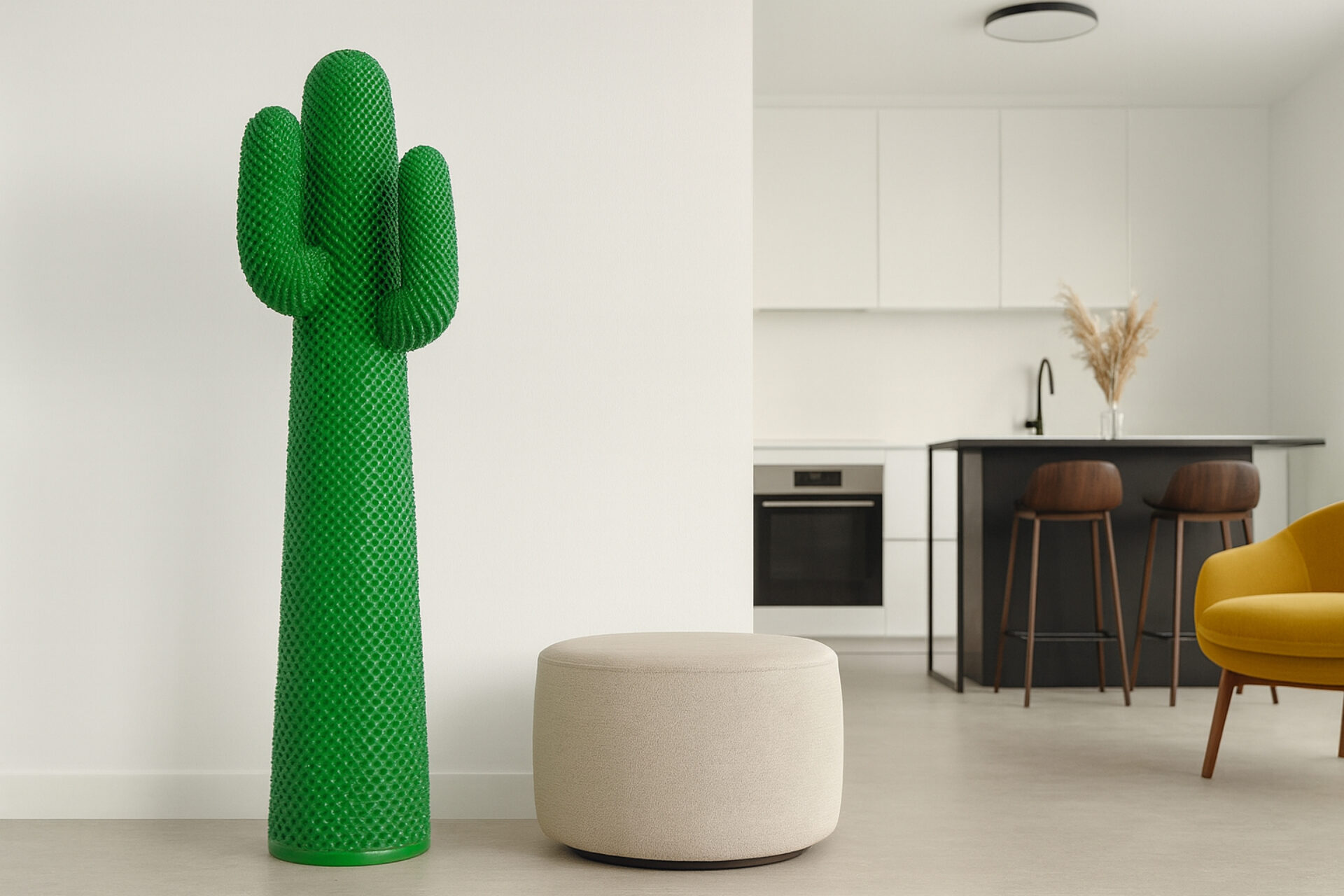 Elevate your modern interior with the distinctive Cactus Coat Stand. Drawing inspiration from the iconic 1970s Italian design, this playful and bold furniture piece is a striking addition to any space. The unmistakable cactus shape effortlessly blends artistry with functionality. Its vibrant green hue and textured surface add a whimsical touch, while the high-quality plastic or resin construction ensures durability and usability.