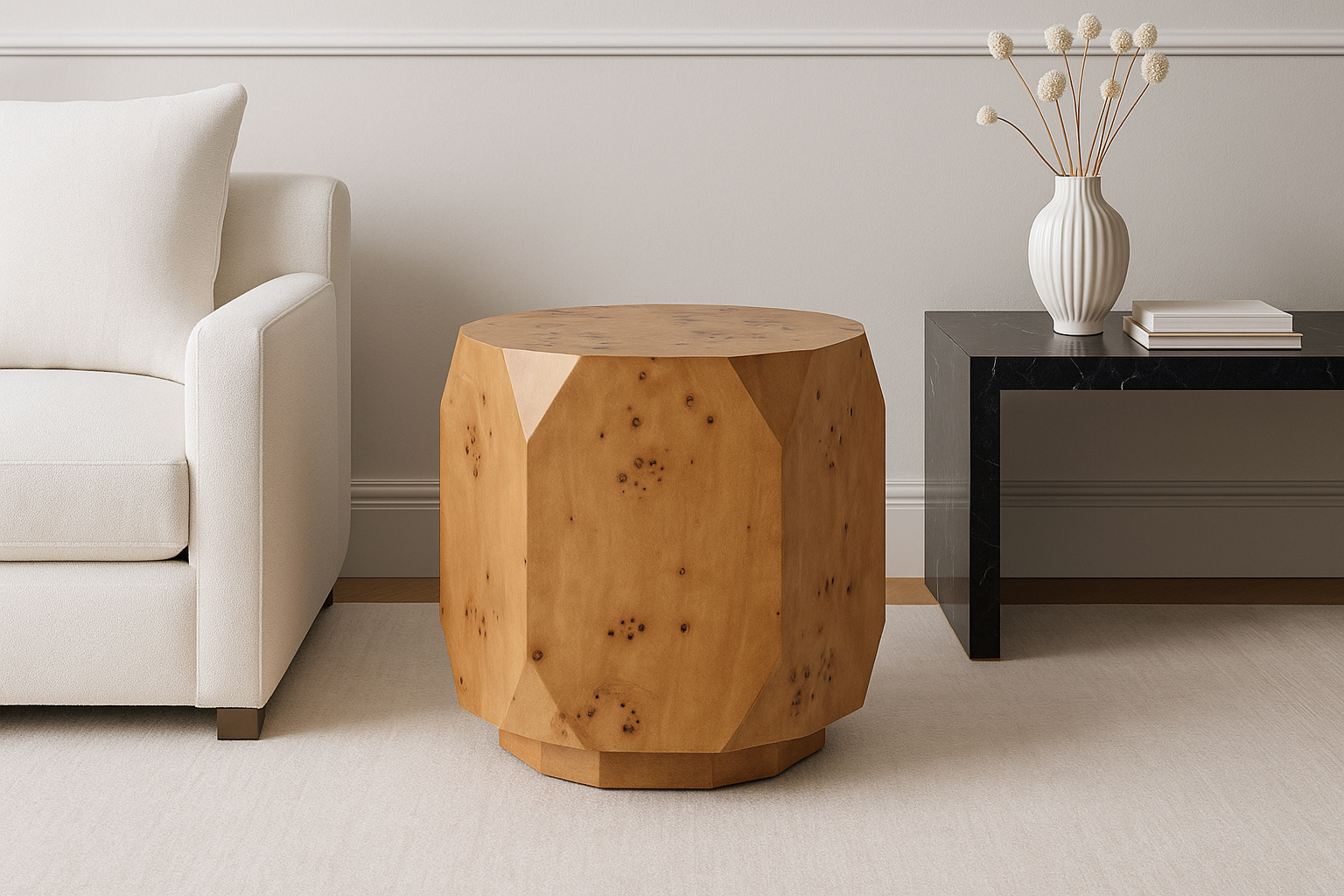 Discover the remarkable Calista Side Table, a testament to the fusion of modern design and natural allure. Meticulously crafted, this fine piece of furniture is intended to enhance any living area with its unique charm and subtle sophistication.