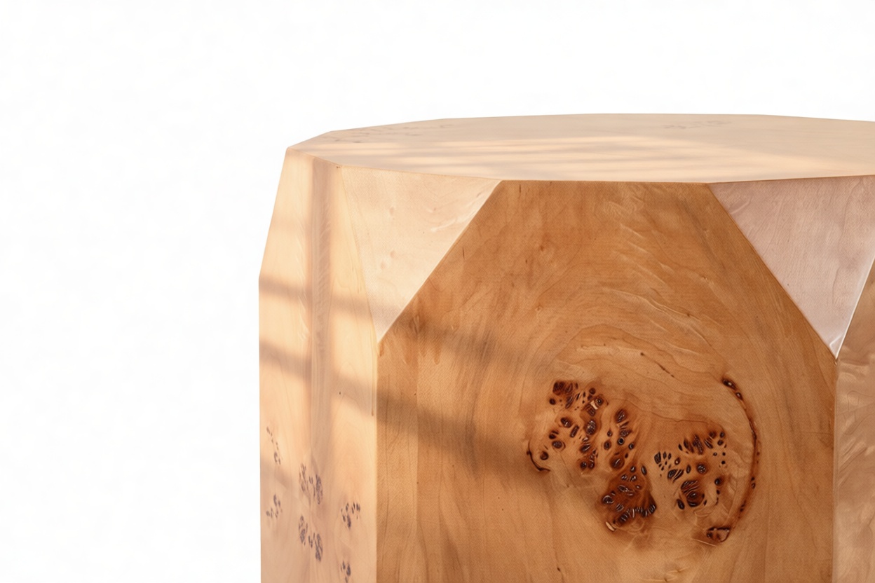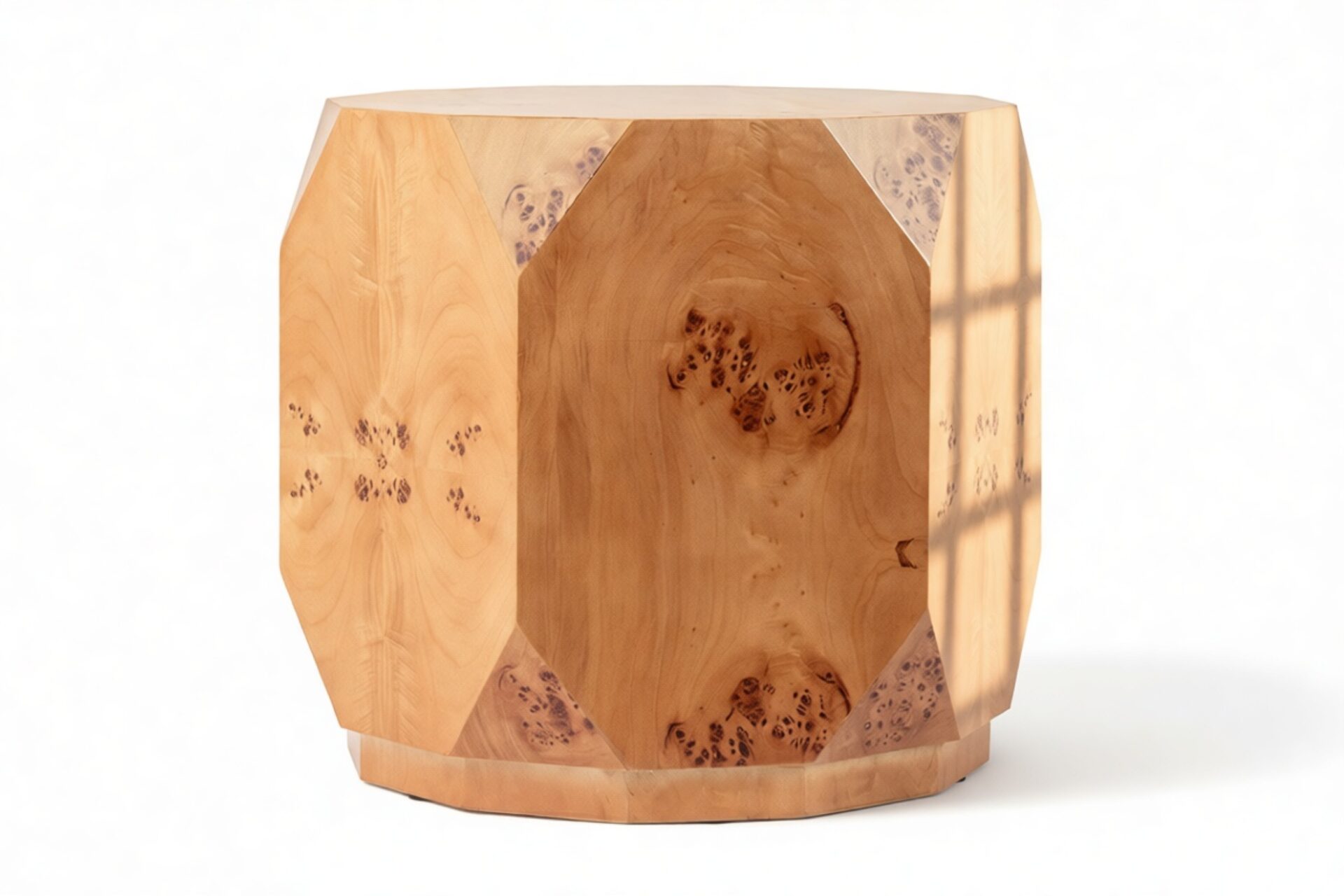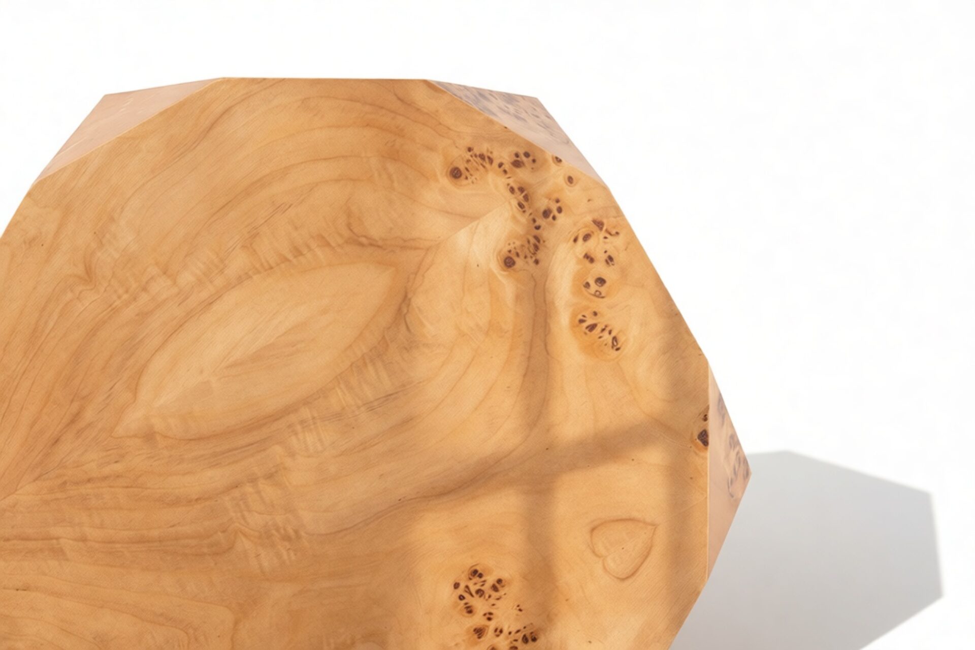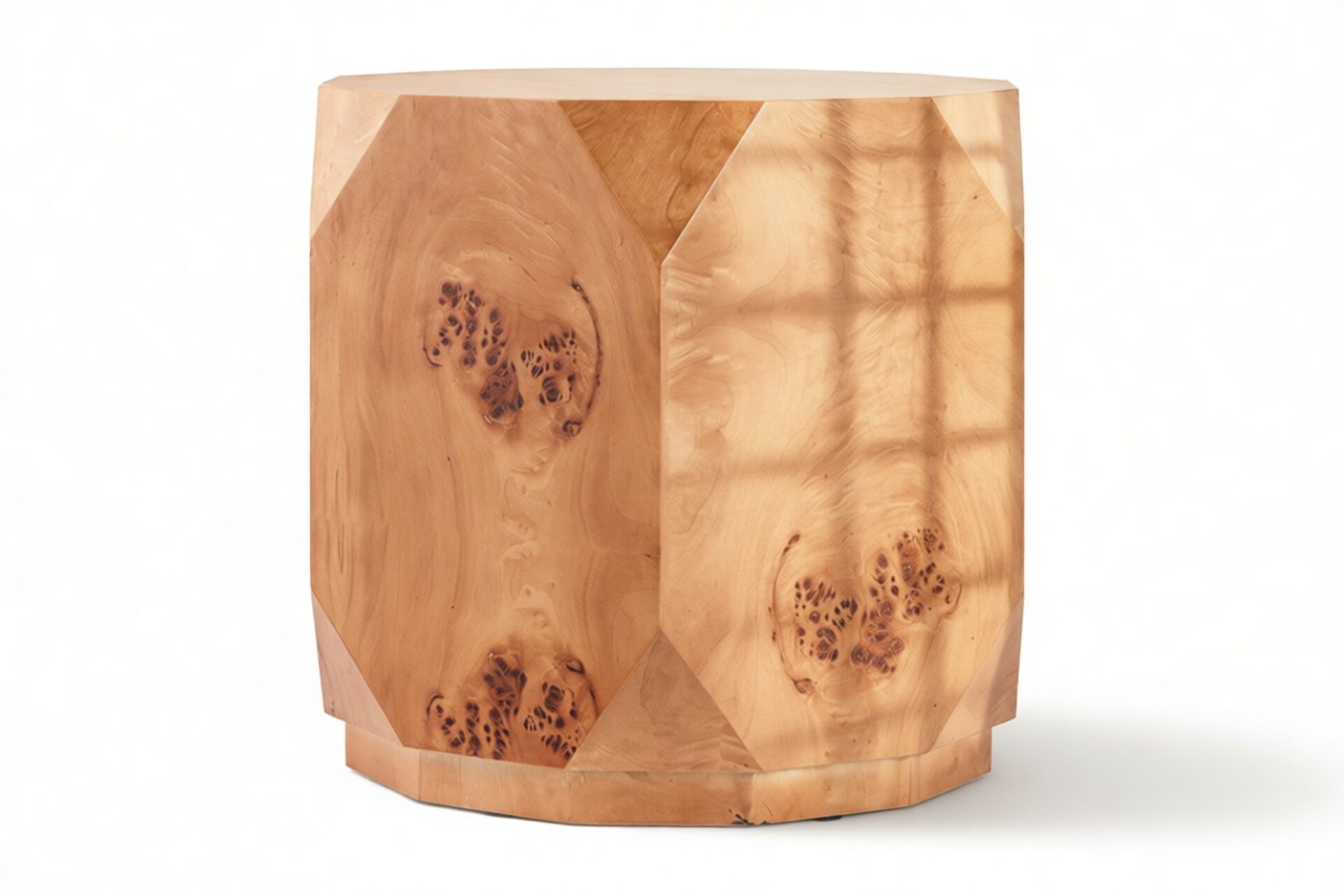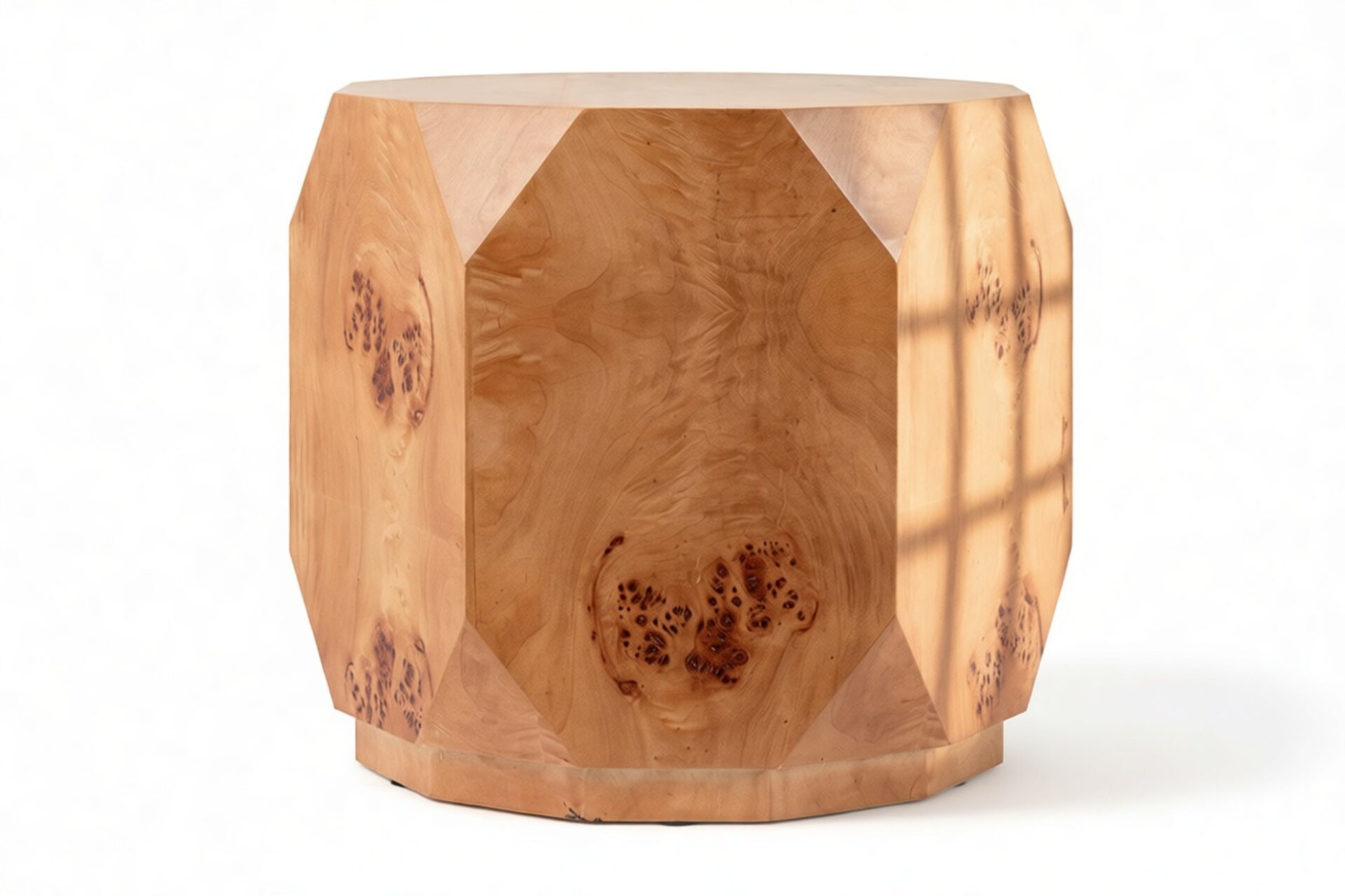 Introducing the exceptional Calista Side Table, a captivating blend of modern design and natural allure, meticulously crafted to elevate any living space with charm and sophistication. Featuring a mesmerizing faceted geometric form in rich Walnut, this exquisite table commands attention with its sleek lines and sharp edges, infusing contemporary elegance into any interior.