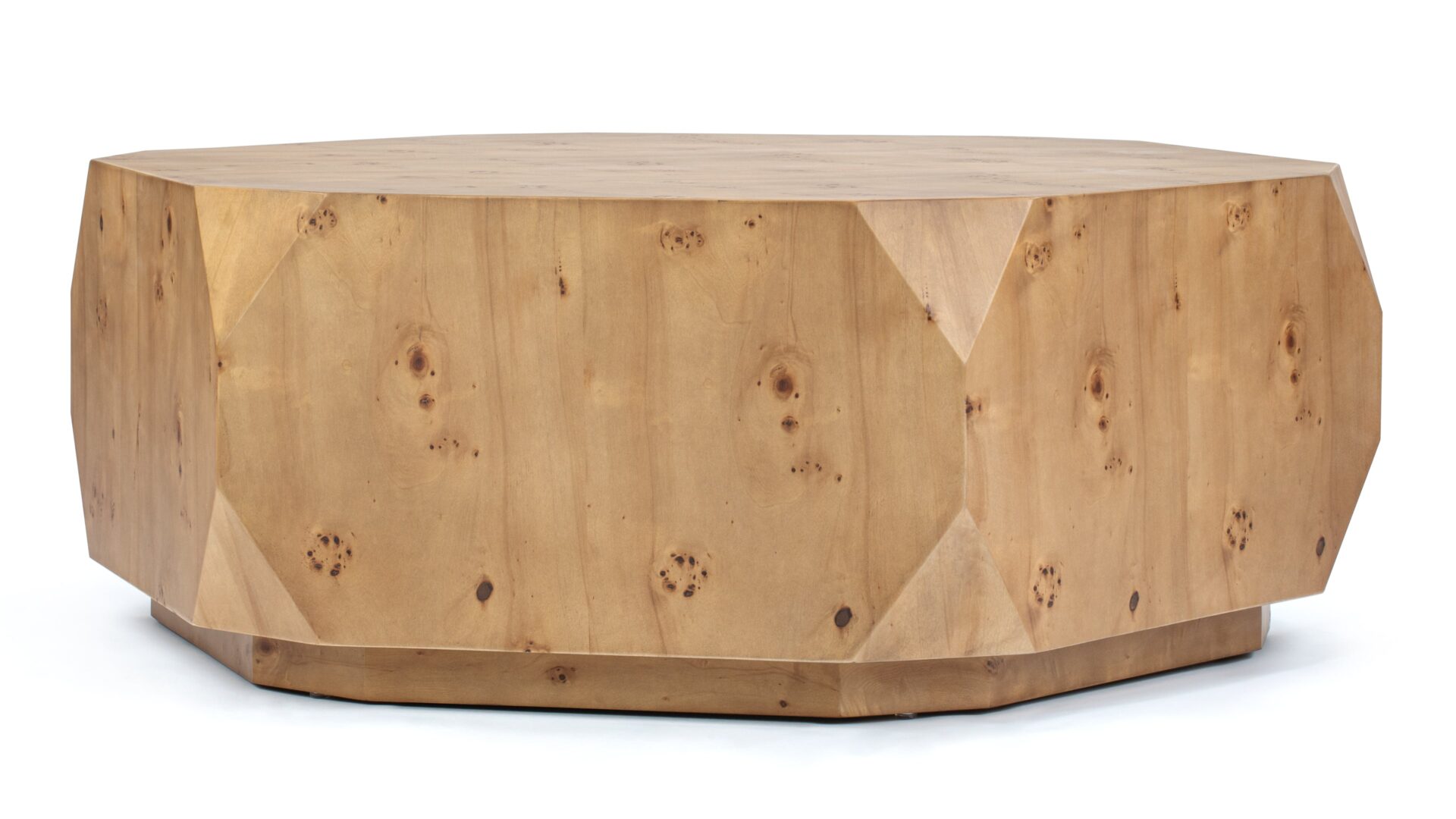 At the core of the Callie Coffee Table is its captivating faceted geometric shape. Each angle and facet has been intricately sculpted to form a visually striking silhouette that captures attention from every view. Whether positioned at the center of a room or nestled beside a sofa, the table's sleek lines and defined edges deliver a powerful statement, infusing a hint of contemporary elegance into any interior decor.