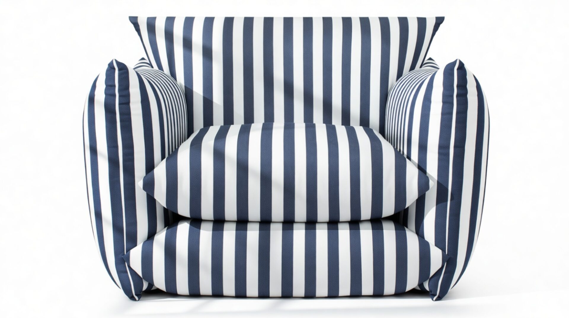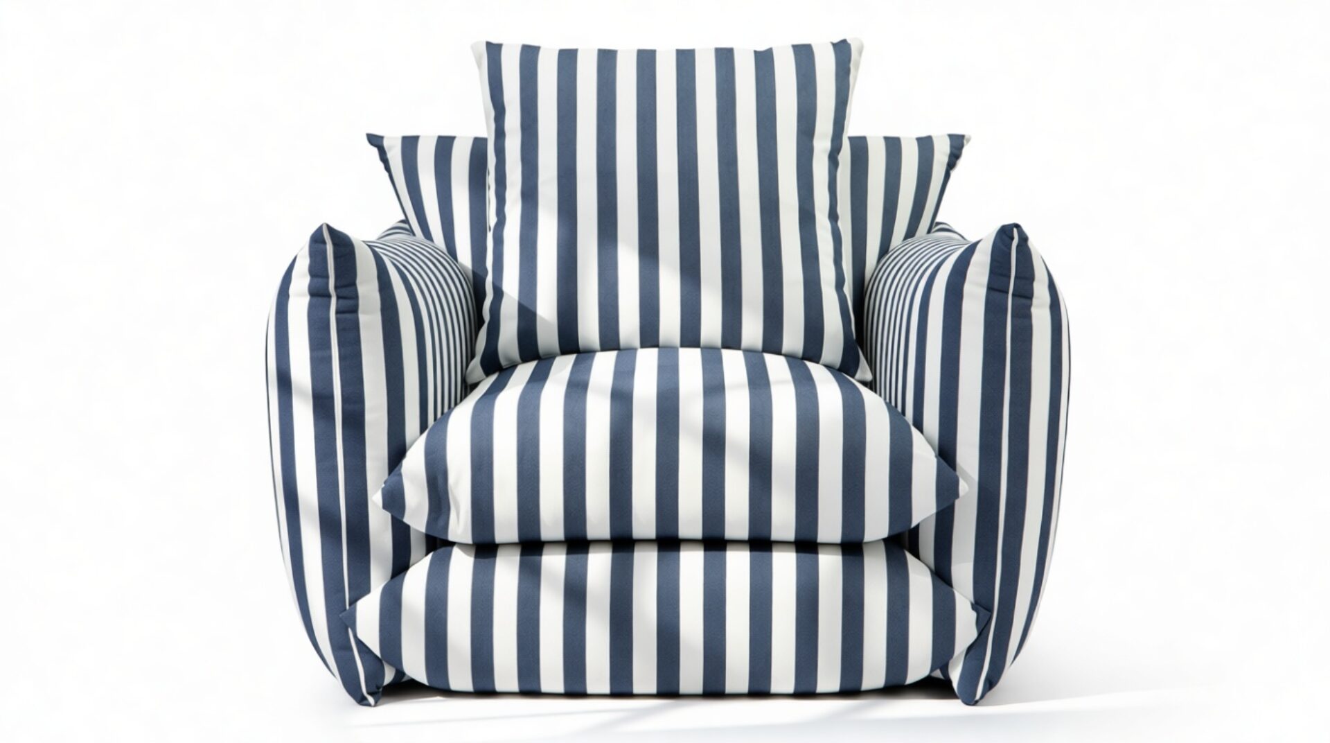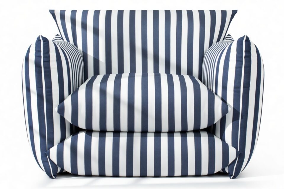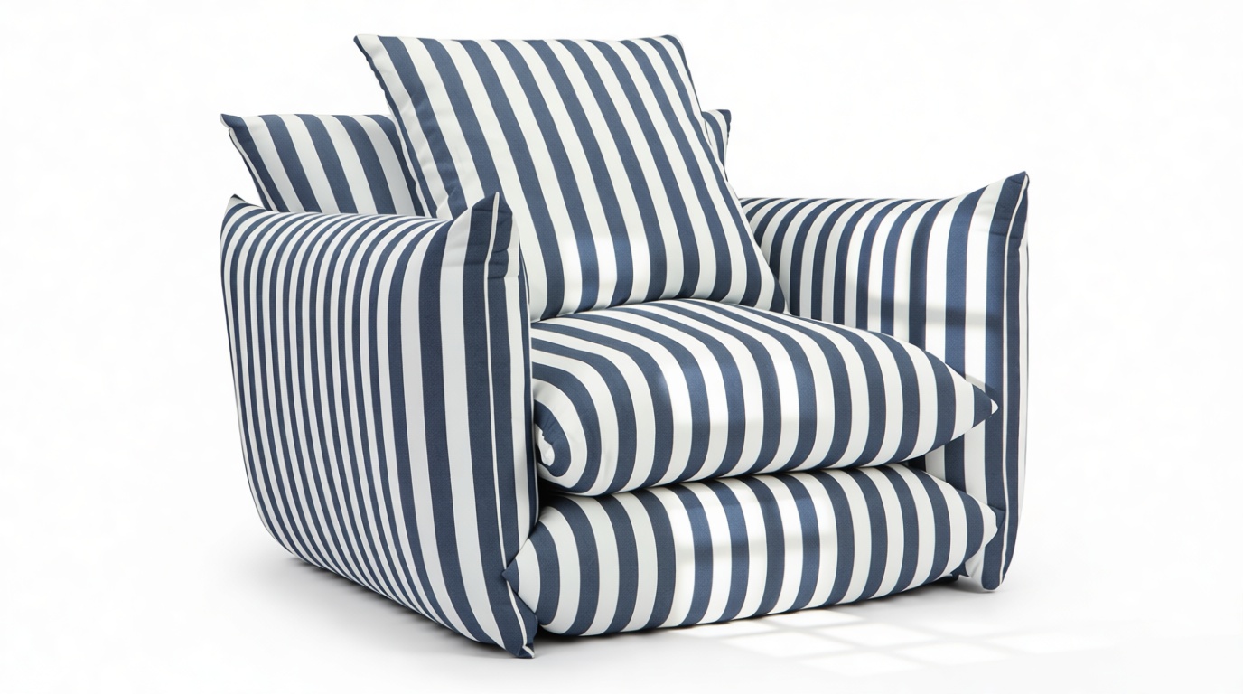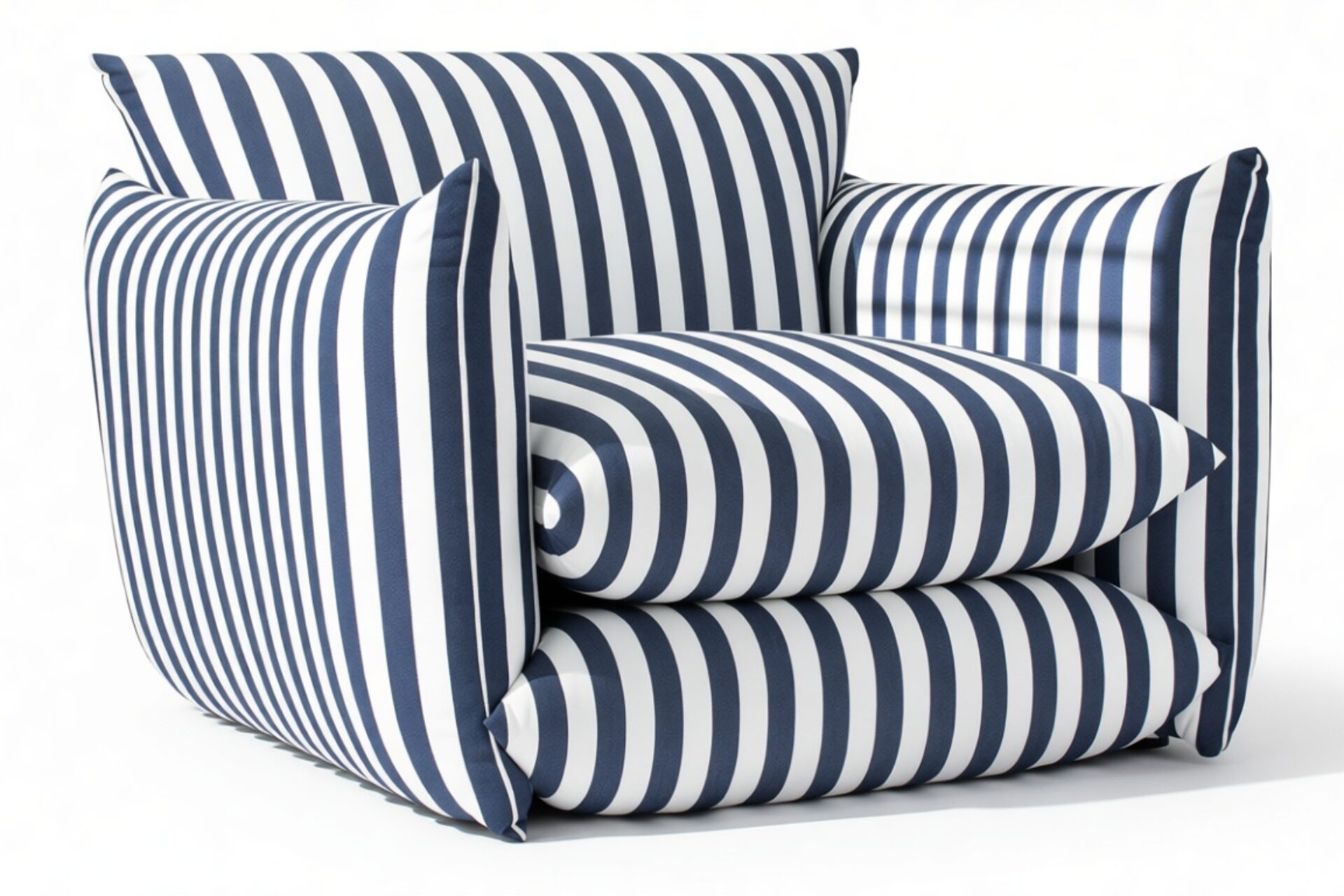 Experience unparalleled comfort and style with the Camden Chair. Featuring oversized, pillow-like cushions complemented by a striking navy and white striped design, this chair offers a visually bold yet irresistibly cozy seating option.