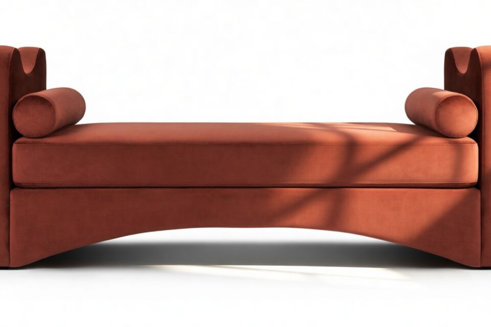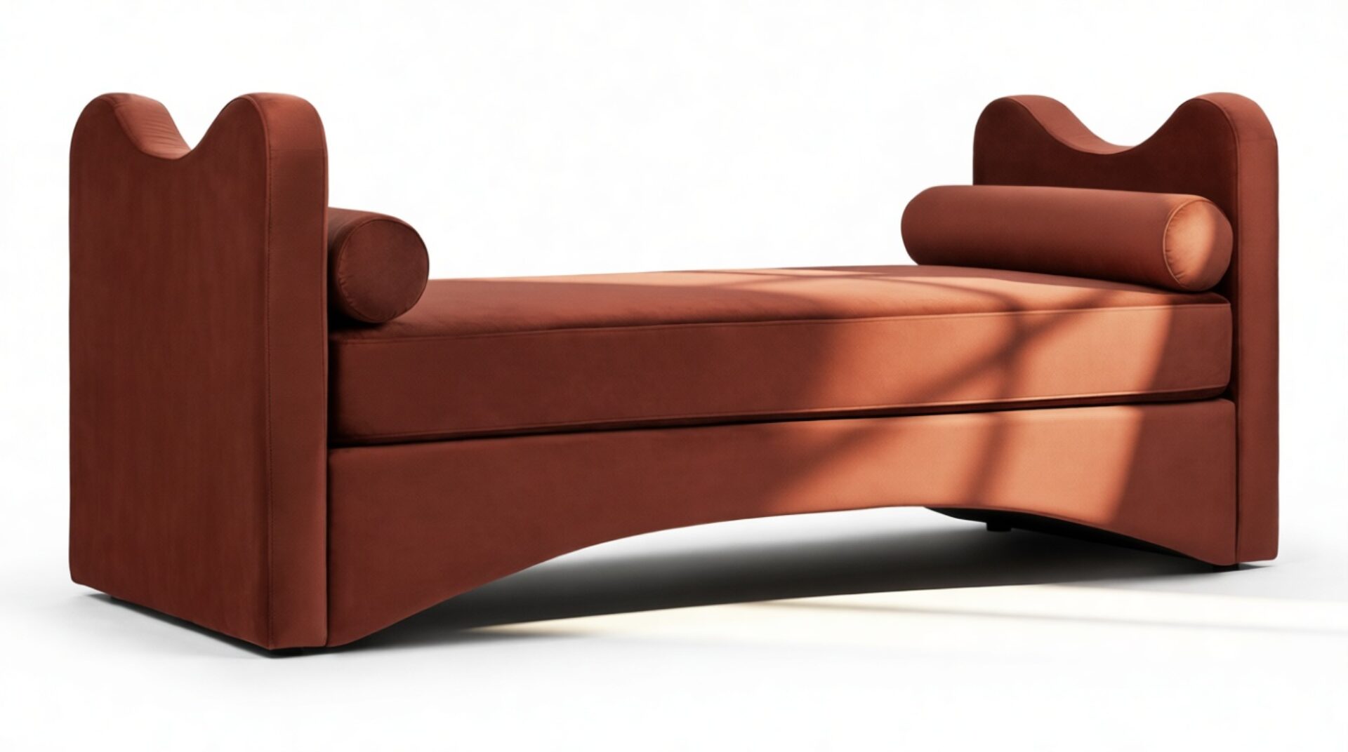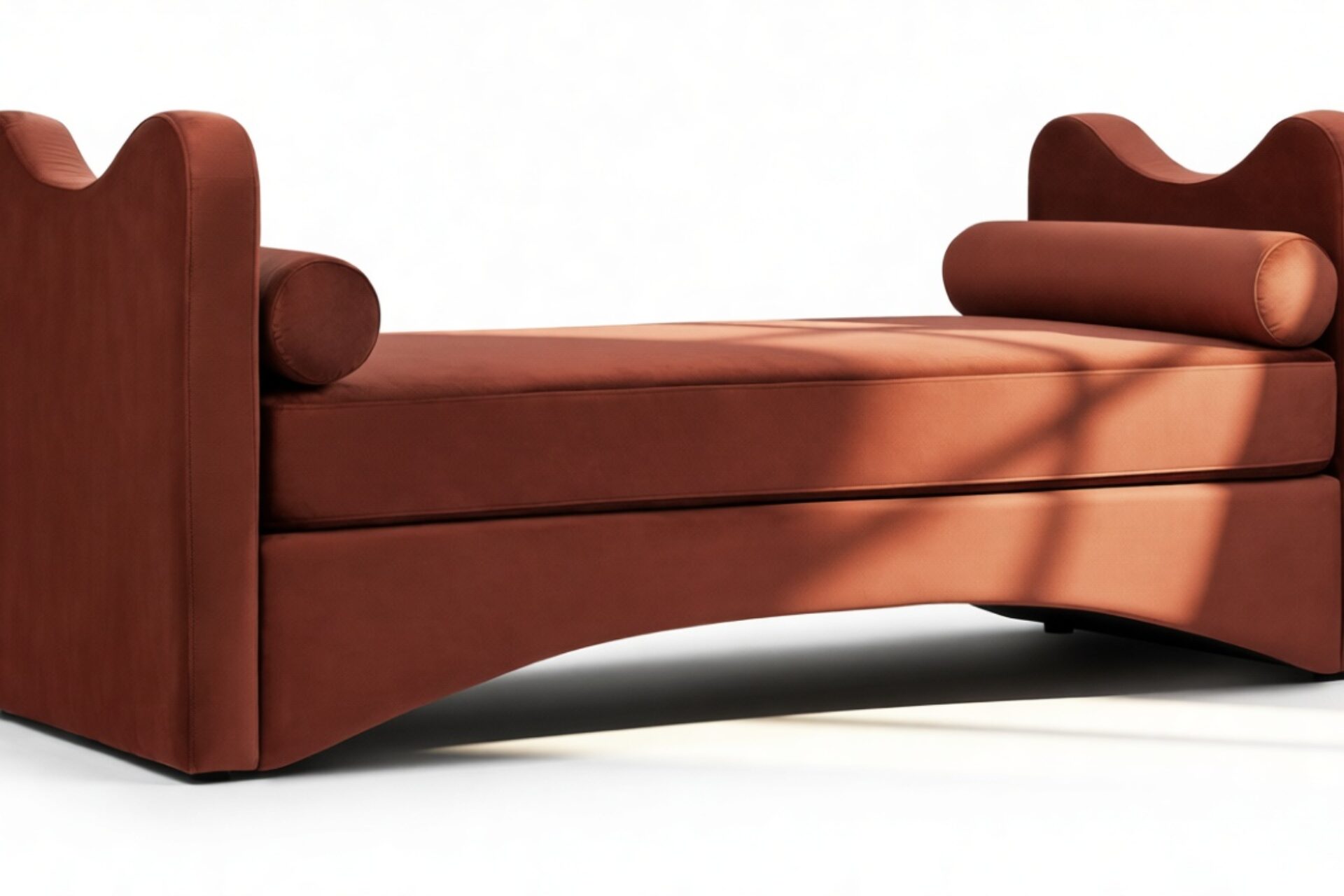 Experience a blend of modern elegance with the Capanna Daybed featuring luxurious burgundy velvet, graceful curves, and minimalist charm. This piece serves as a striking focal point in any space, effortlessly combining sophistication with a hint of artistic flair.