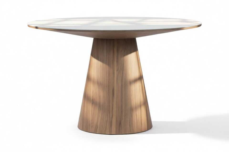 Experience the modern, minimalist allure of the Cellier Dining Table, showcasing a sleek pedestal base and airy tabletop design that seamlessly blend functionality with refined elegance. This table's sleek lines and harmonious dimensions establish it as a standout piece in any contemporary dining area.