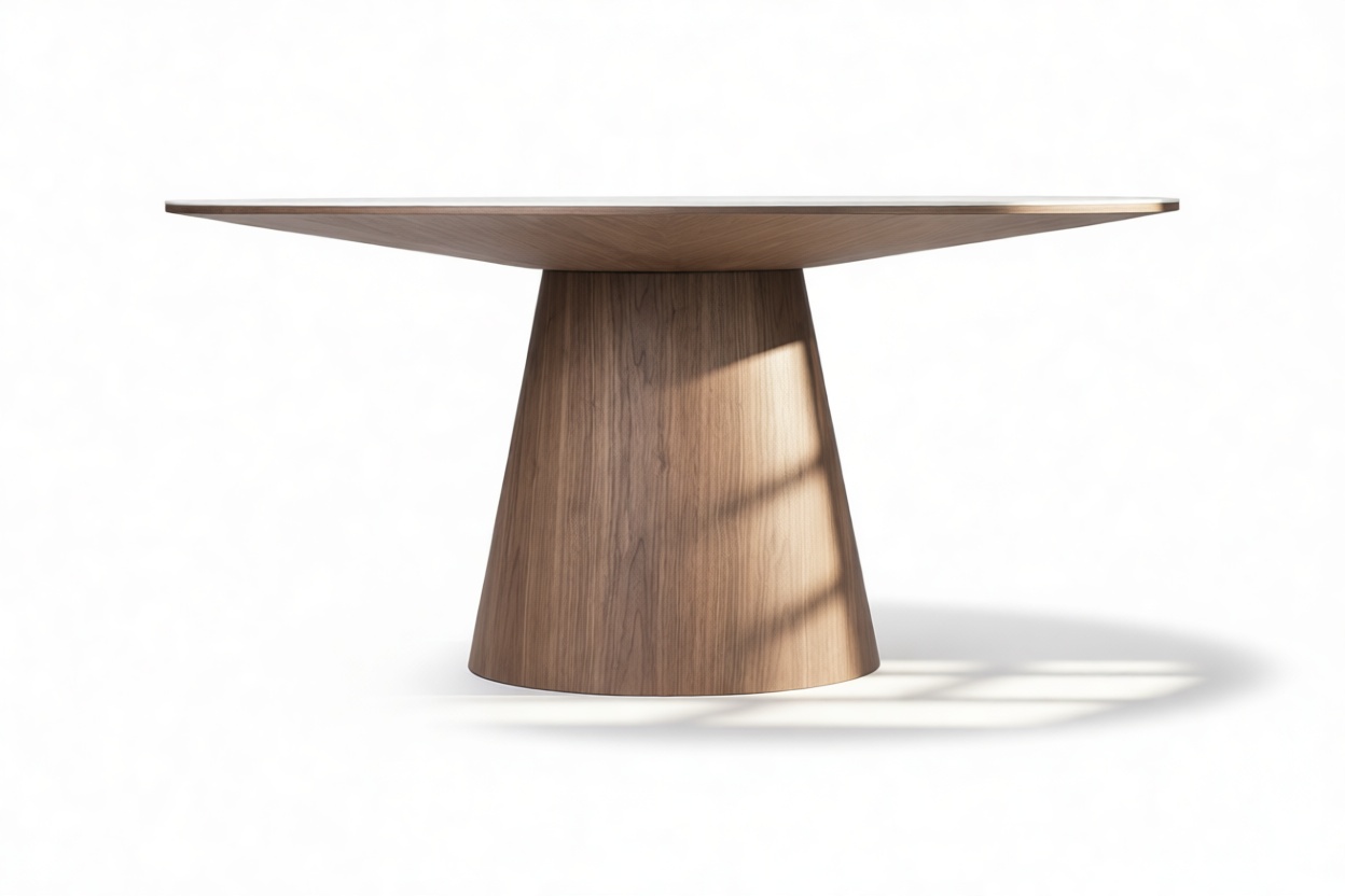 Experience the modern, minimalist allure of the Cellier Dining Table, showcasing a sleek pedestal base and airy tabletop design that seamlessly blend functionality with refined elegance. This table's sleek lines and harmonious dimensions establish it as a standout piece in any contemporary dining area.