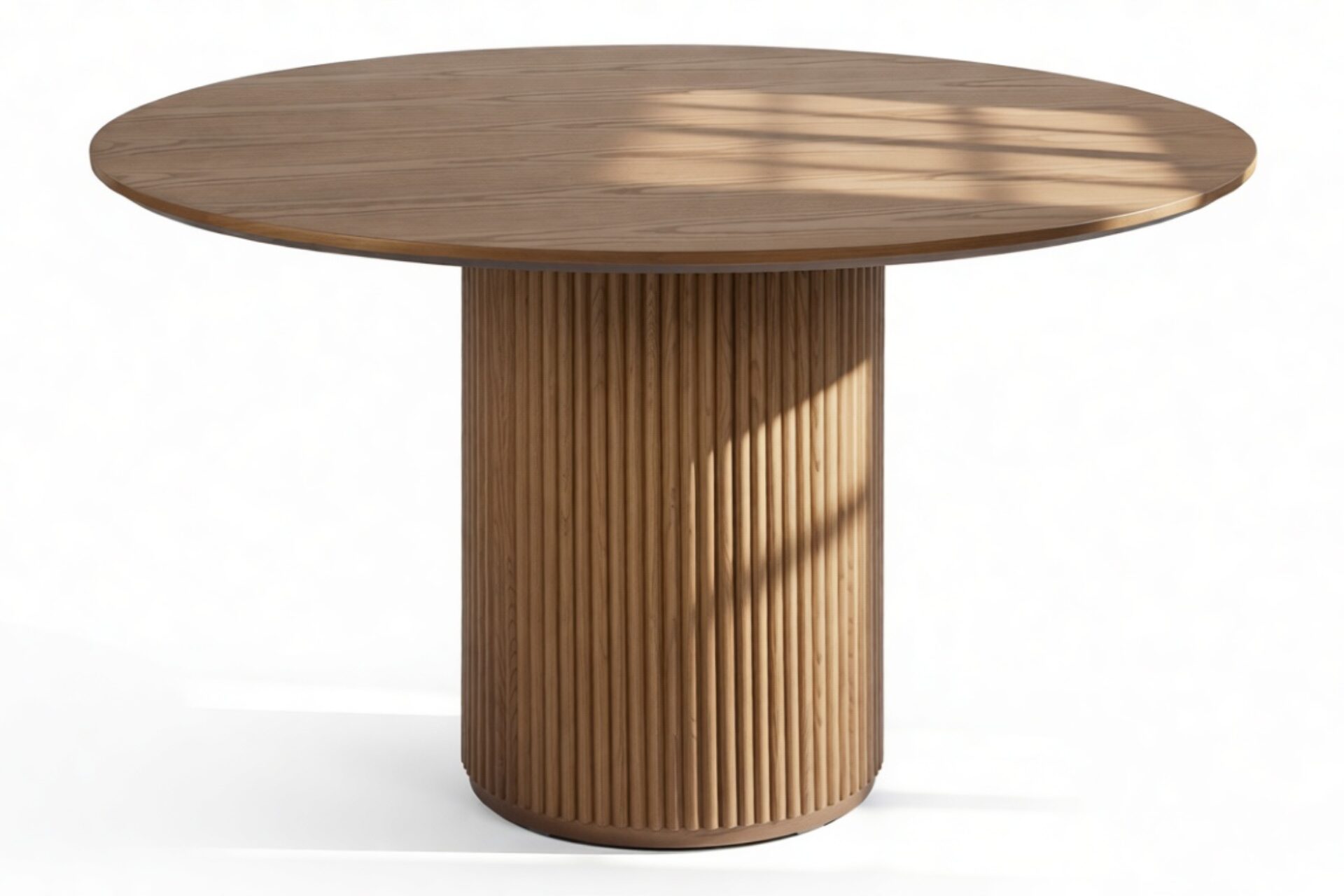 Introducing the Cellule dining table, created to occupy the space between sculptural and minimalist design, blending modern and traditional aesthetics. Its substantial reeded base harmonizes flawlessly with the airy, circular top, offering a versatile dining solution for compact as well as spacious open-plan dining areas.