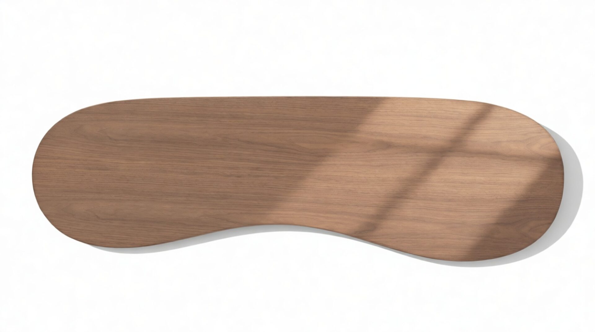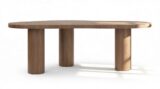 Handcrafted from walnut veneer, this table radiates coziness with its luxurious grain and natural kidney-shaped top, complemented by striking cylindrical legs that elevate its modern, simplistic charm.