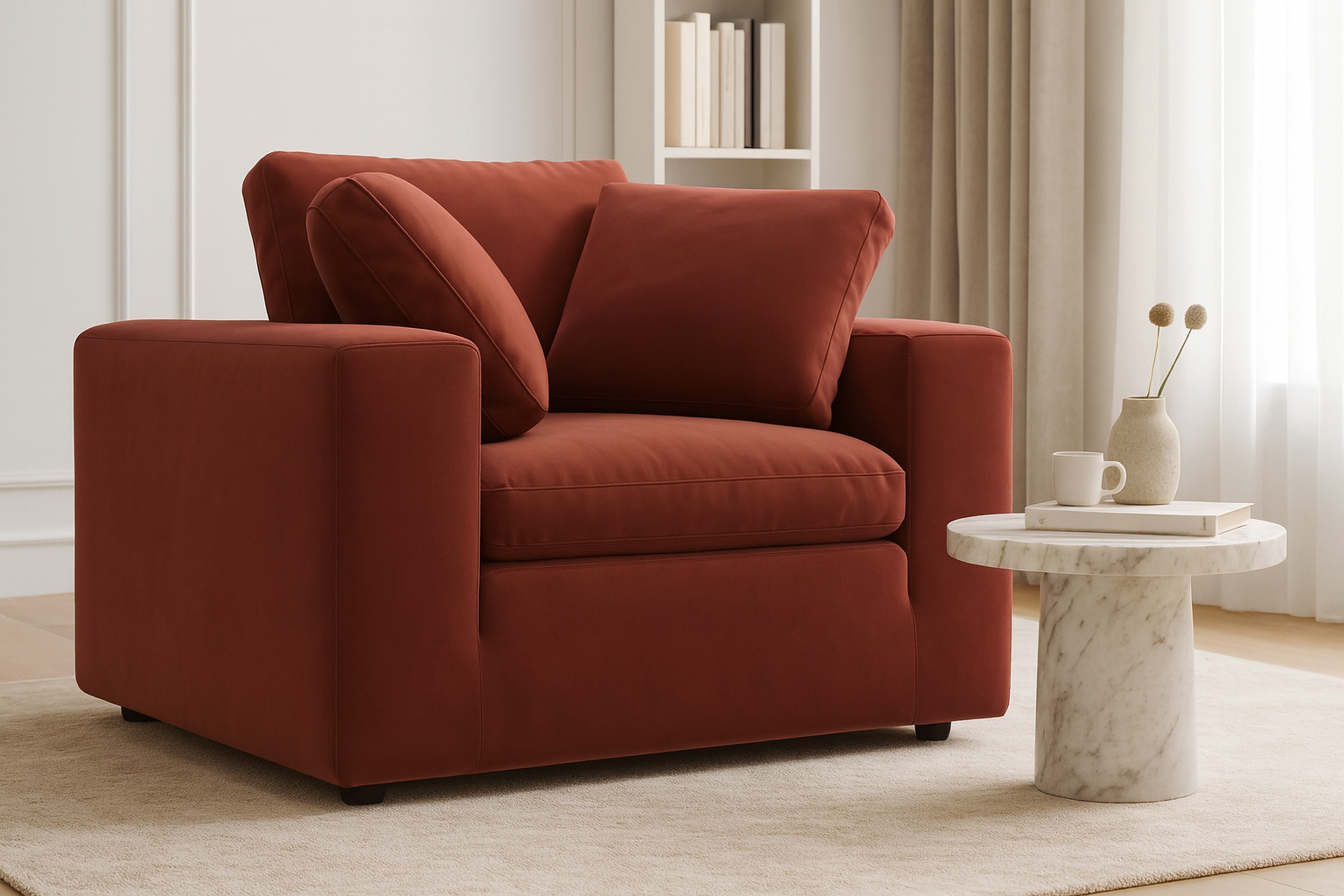 Introducing the luxurious Ciel Armchair, a masterpiece of comfort and sophistication upholstered in sumptuous Cinnamon Velvet. This armchair seamlessly blends modern allure with timeless grace, offering a tailored seating experience enriched by sumptuous cushions for unparalleled relaxation. Elevate your space with customized elegance as the neutral palette allows for personalized styling, ensuring a unique and sophisticated aesthetic.