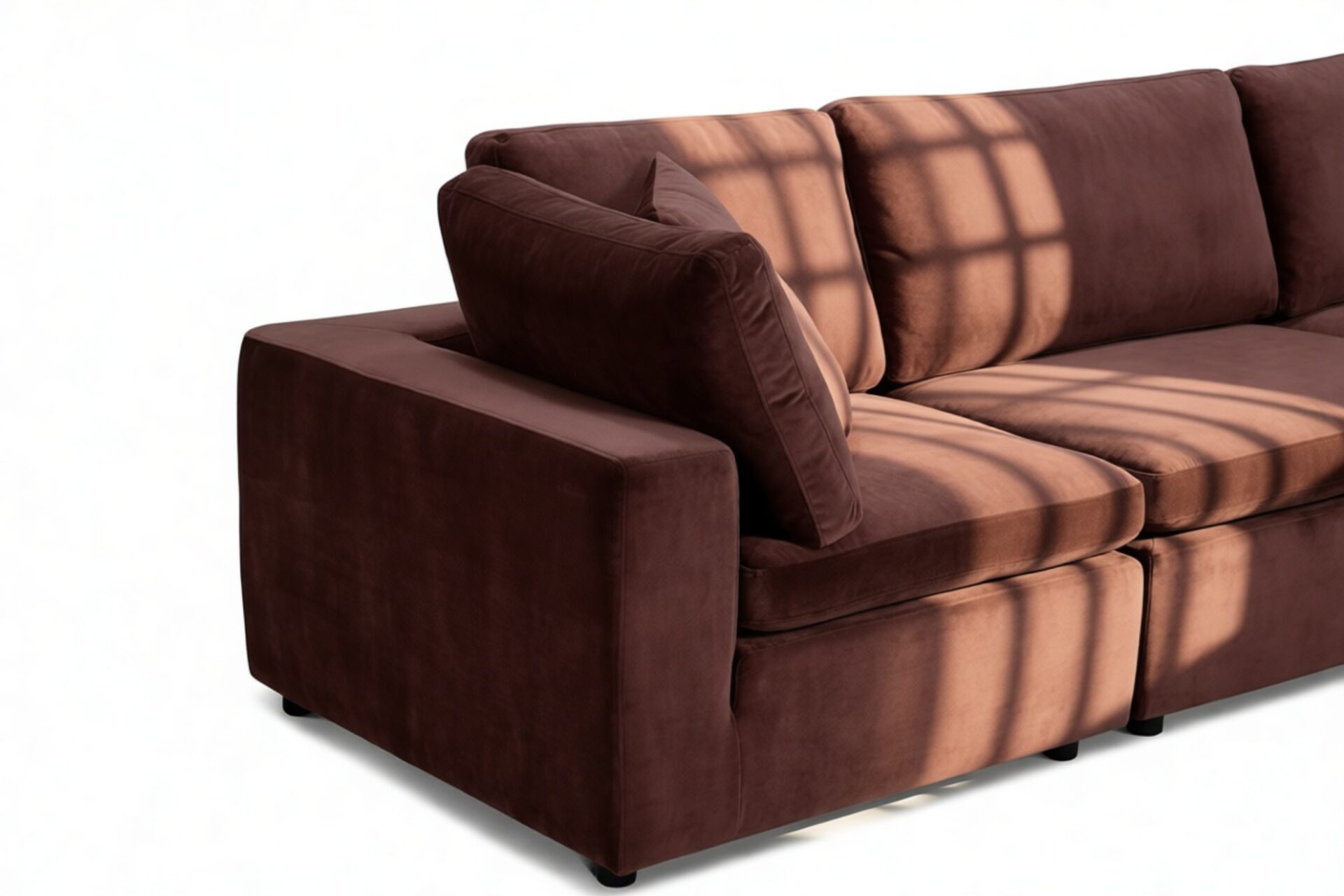 Introducing the luxurious Ciel Sofa in Cinnamon Velvet - a pinnacle of versatile luxury. Upholstered in premium fabrics, this sofa exudes sophistication while offering unparalleled comfort. Its modular design allows for personalized seating configurations, effortlessly adjusting to your evolving needs. Enhance your living area with this extraordinary sofa to revolutionize your home's relaxation and style.
