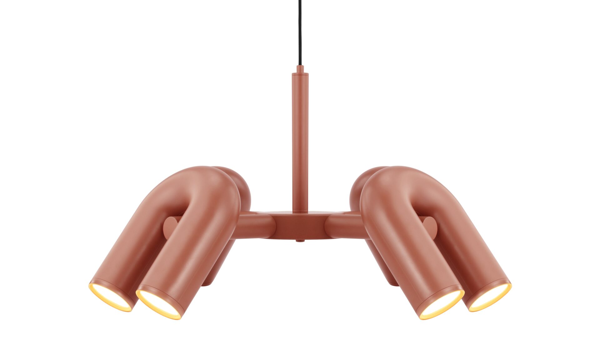 Introducing the Cirkus Ceiling Lamp in a captivating orange hue. This sleekly designed piece offers exceptional functionality with whimsical flair, effortlessly commanding attention as a stylish centerpiece in any space. The U-shape lamps can be rotated to enhance its dynamic design, providing versatility and a playful charm that modernizes your surroundings. Elevate your decor with artistic elegance and add a pop of color with the Cirkus Ceiling Lamp in orange.