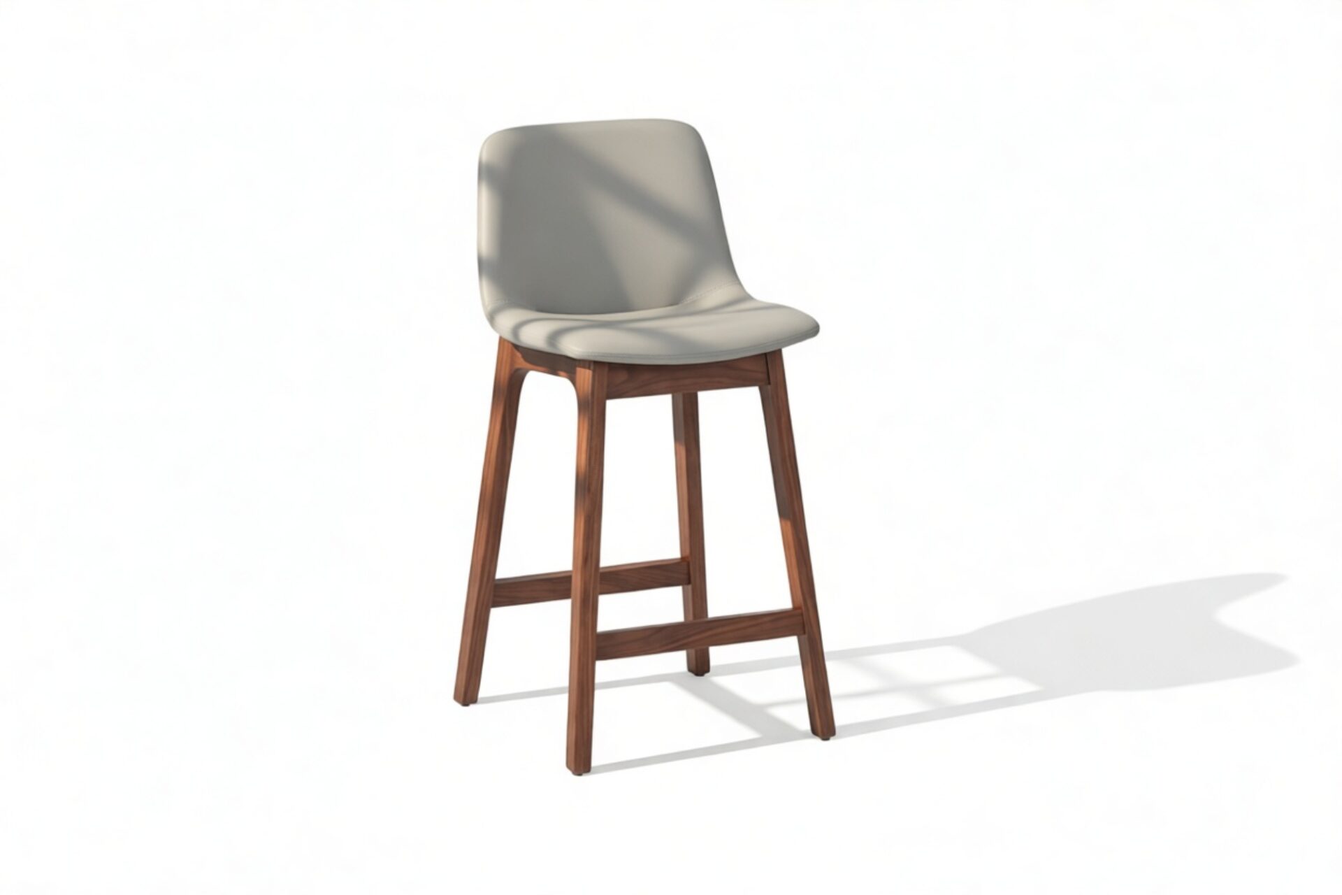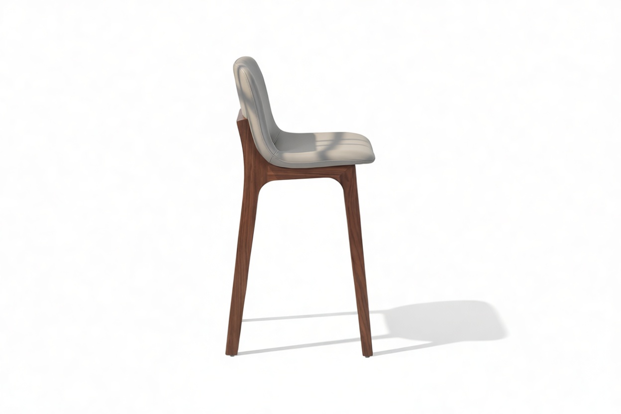 The Clair Counter Stool effortlessly combines sophistication with practicality, showcasing vegan leather upholstery in a choice of three inviting, neutral hues. Its sleek design is enhanced by a sturdy walnut or oak frame, ensuring a seamless fit in modern living spaces. Plush cushioning beneath the upholstery guarantees comfort for extended periods of use, while the chair’s gentle contours offer ergonomic support for both the back and seat.