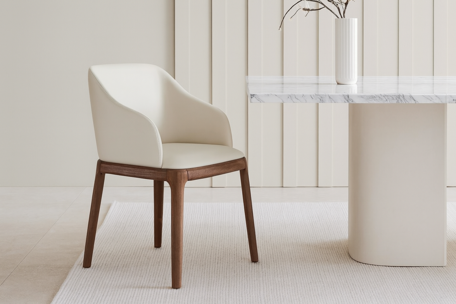 Embodying a minimalist and elegant design, the Clair collection features smooth curves and neutral tones. Ideal for elevating the ambiance of modern interiors, this clean design is offered in options such as the Clair side chair, armchair, counter stool, and bar stool.