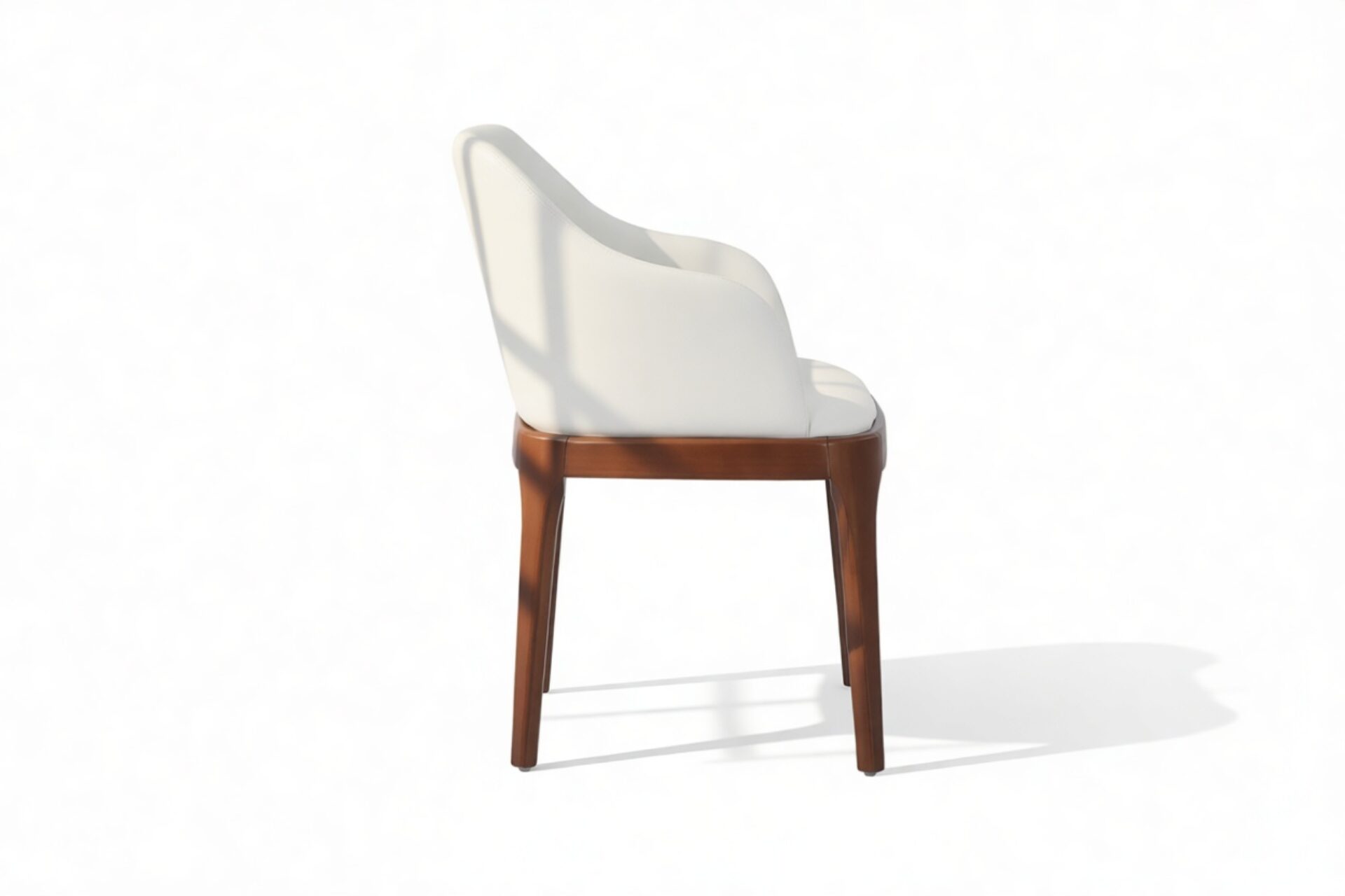 Enhance your space with the Clair Armchair, a harmonious blend of style and practicality. Crafted with leather upholstery in two inviting, neutral shades, this chair boasts a sleek design accented by a choice of walnut or oak frame, ideal for contemporary rooms. Beneath the supple upholstery lies plush cushioning for enduring comfort, while the chair’s ergonomic contours offer the perfect support for extended sitting.