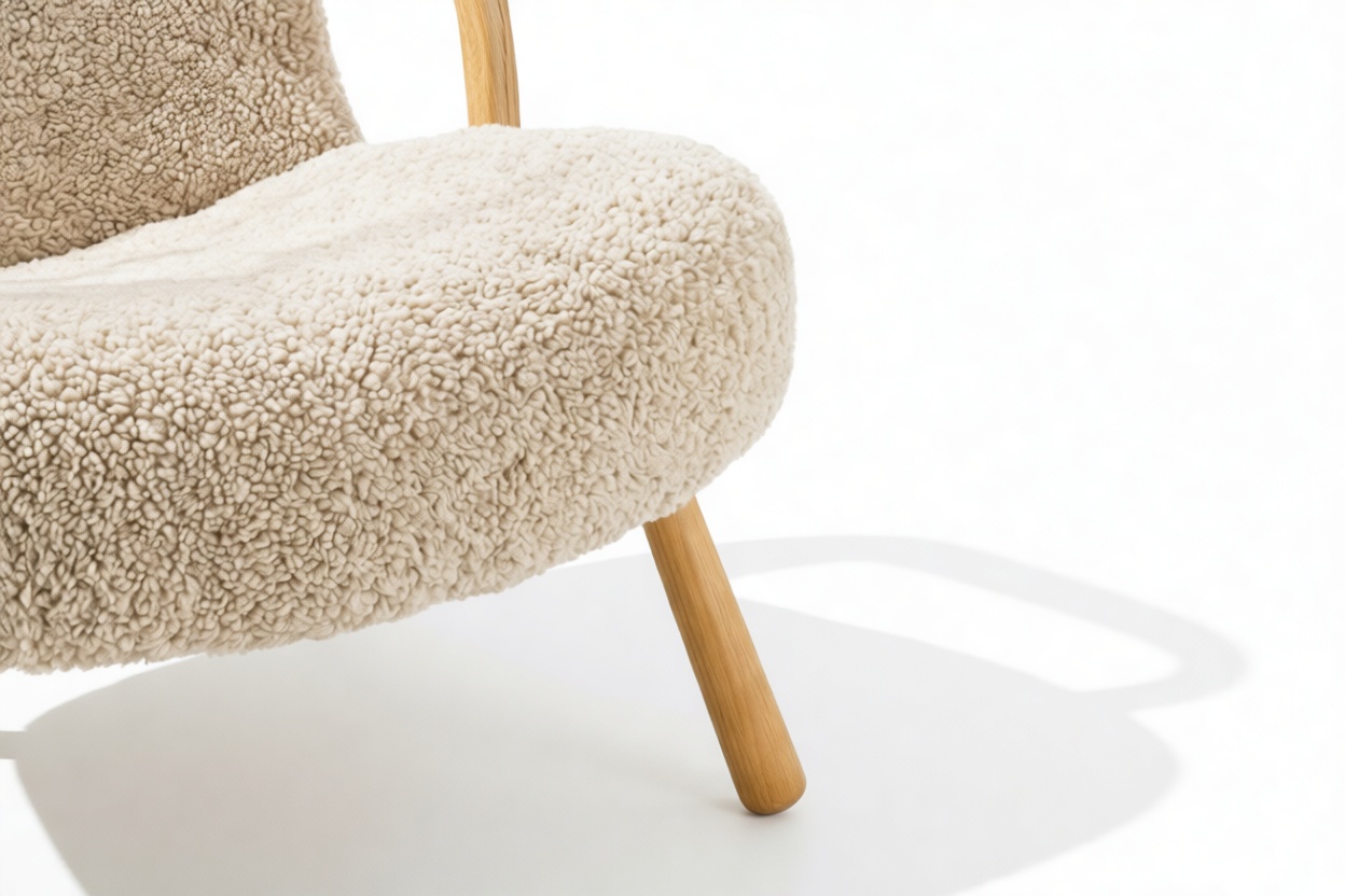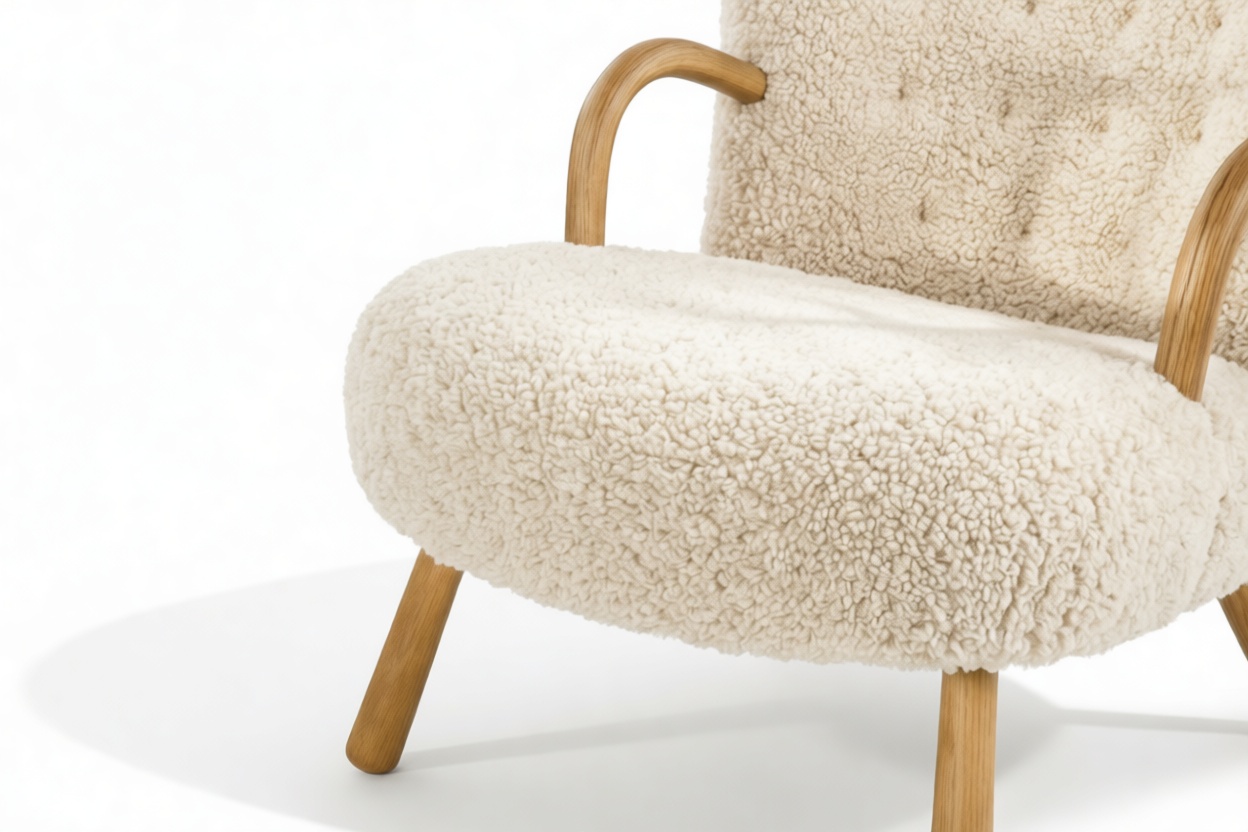 Named for its resemblance to a shell, the Clam chair's charming design pays tribute to Scandinavian style with its sincere and modest use of European hardwood and luxurious upholstery.